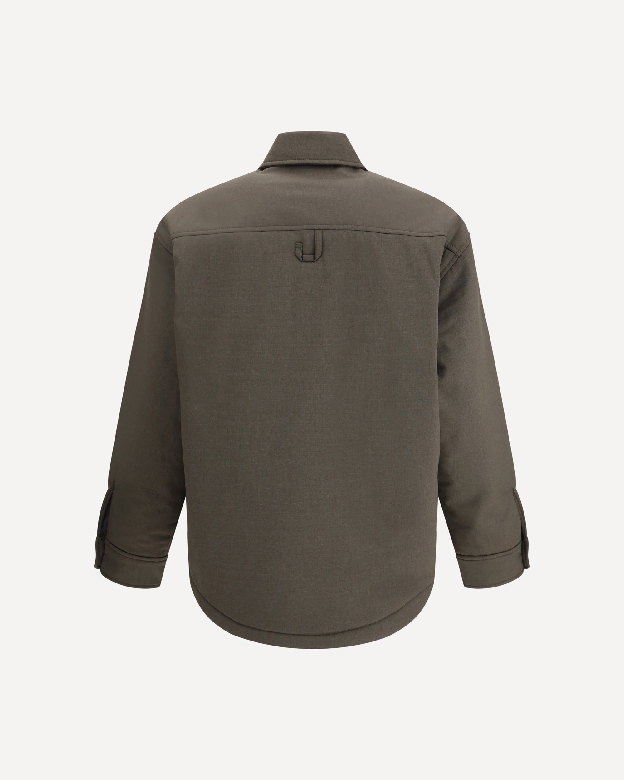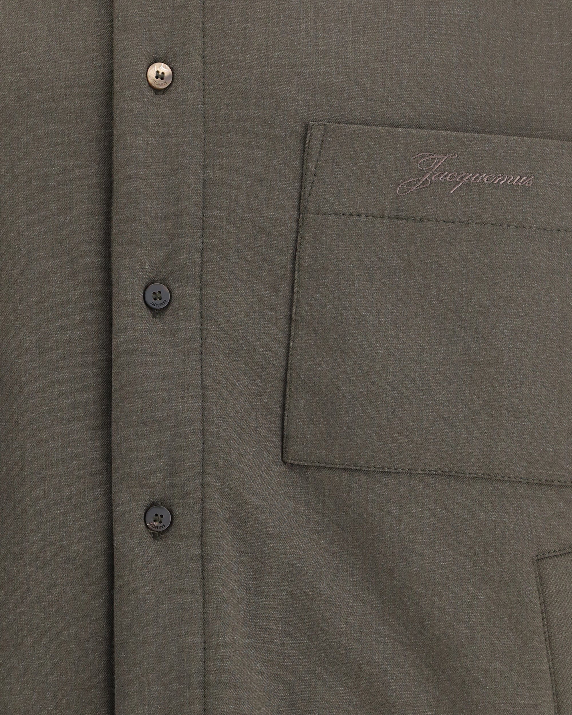 The Boulanger Shirt by Jacquemus blends the elegance of a tailored shirt with the functionality of a padded jacket. Crafted from stretch virgin wool, it features a boxy fit with rounded shoulders, creating a bold, modern silhouette. A pointed collar and squared cuffs emphasize its structured design, while mother-of-pearl buttons provide a refined finishing touch. An embroidered logo on the chest pocket, a back yoke with signature “J” loop, and the fully padded, lined construction make this piece a perfect balance of warmth, comfort, and contemporary sophistication.