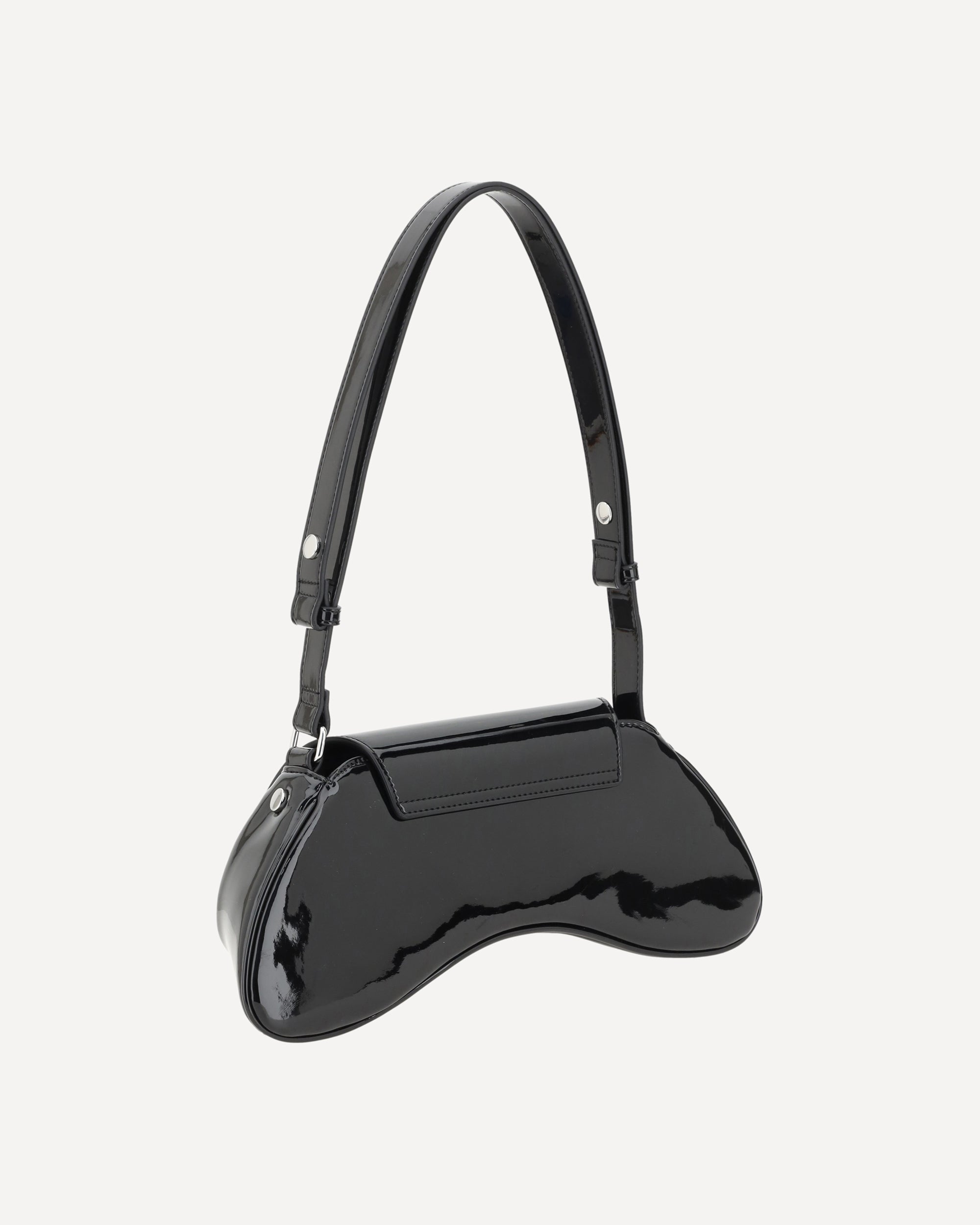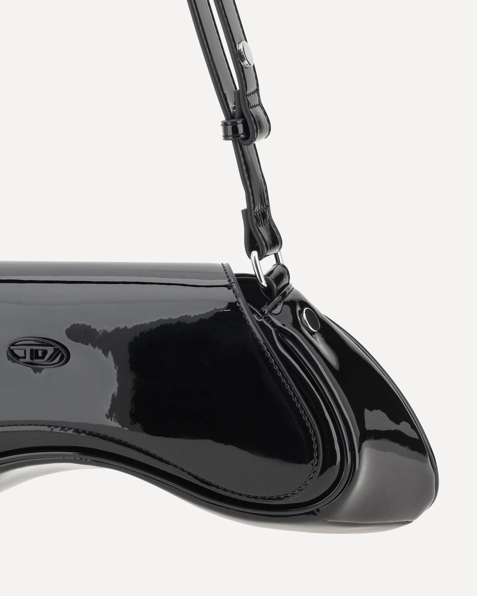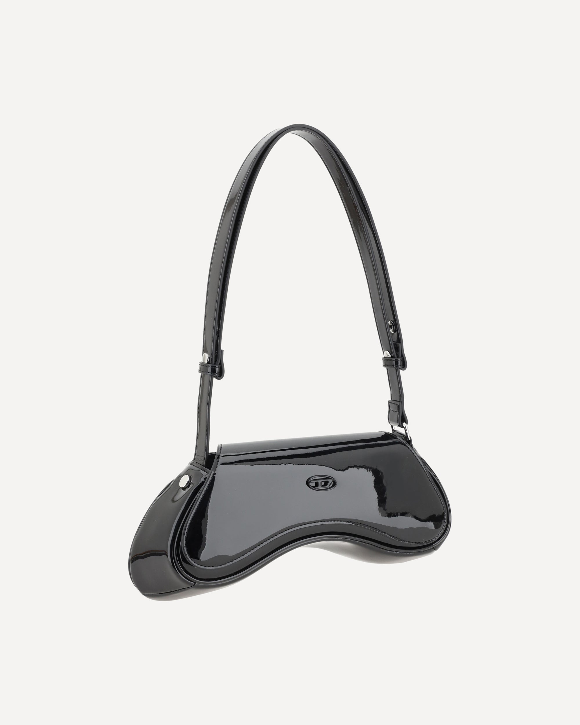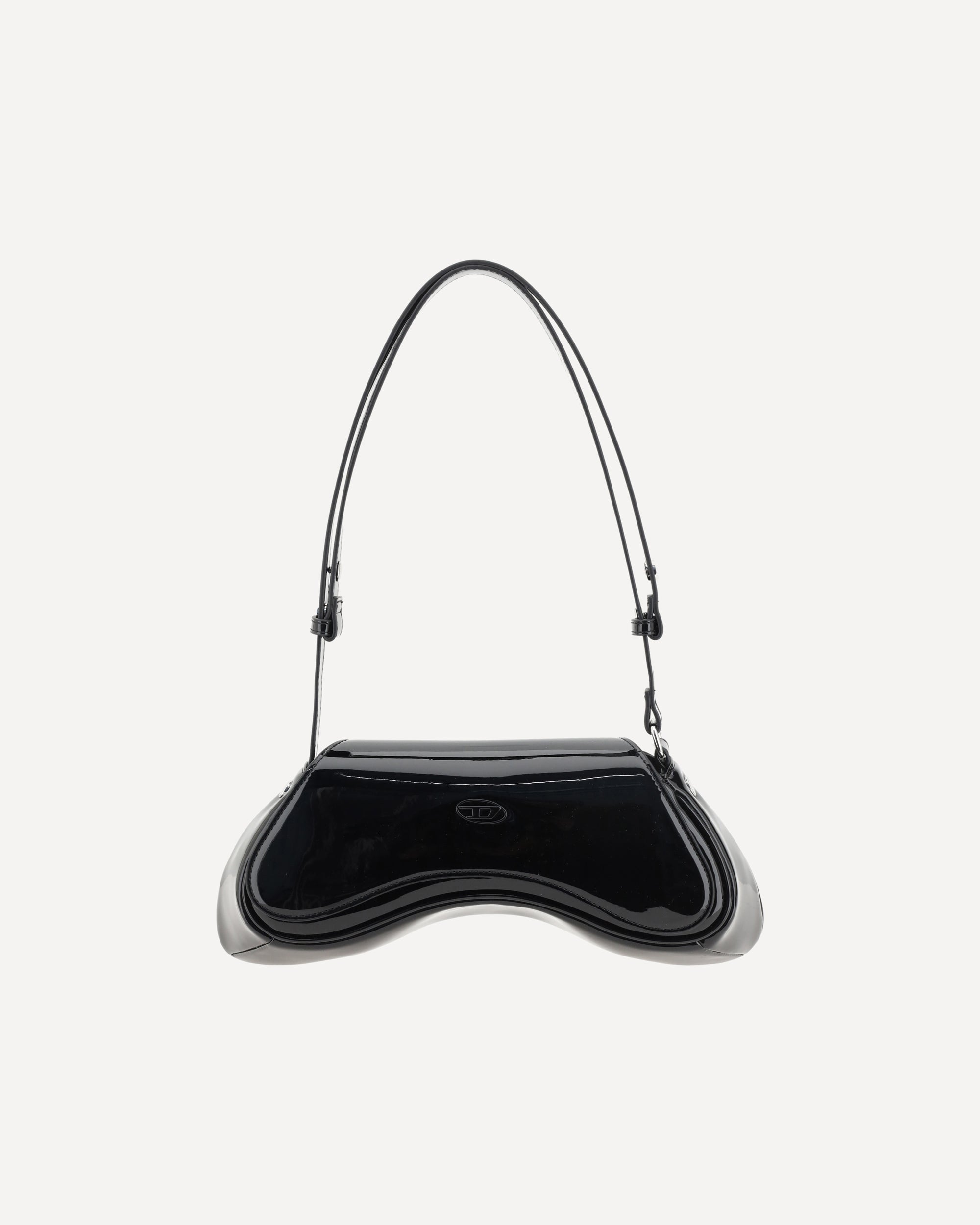 The Play Shoulder Bag by Diesel is a modern and versatile accessory featuring a unique and original design. It has an adjustable shoulder strap, allowing you to easily adjust it to your desired length. The glossy finish gives it a sleek, reflective look, while the front magnetic flap closure provides convenience and security. A distinctive feature of the bag is the iconic Oval D plaque applied to the front flap, which adds a touch of style and recognition to the model. The shape of the bag is structured and asymmetrical, inspired by video game controllers, a detail that makes it even more interesting and contemporary.