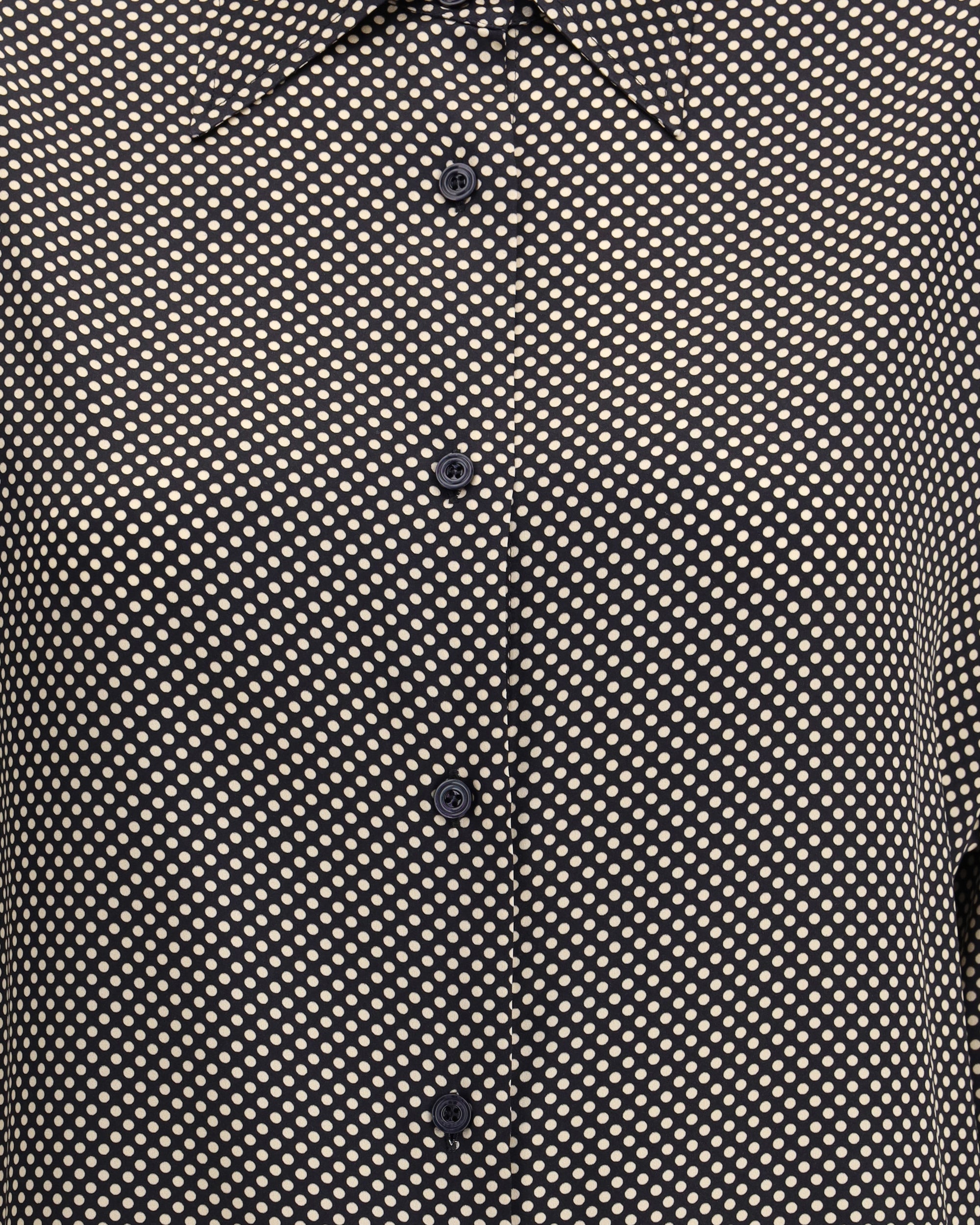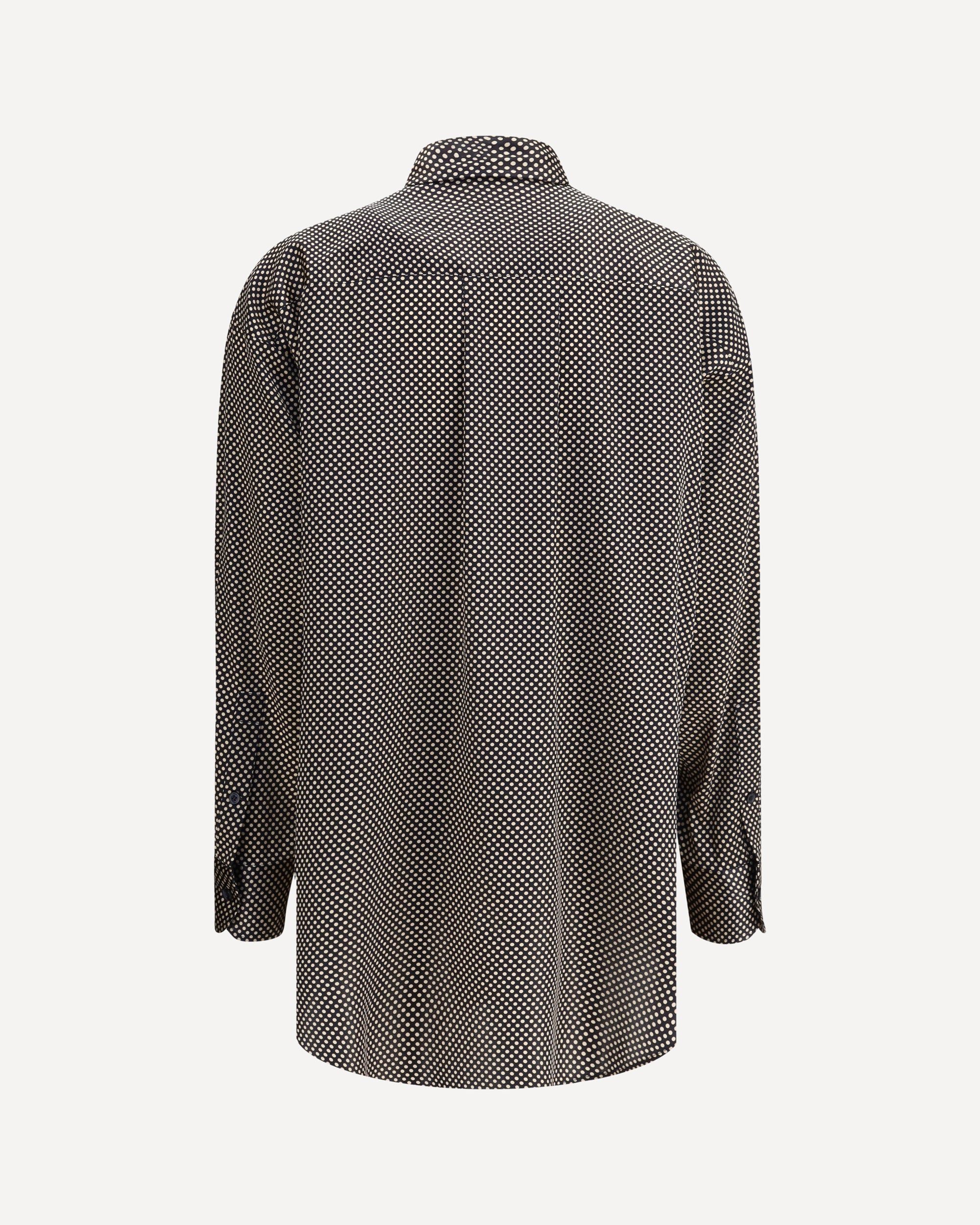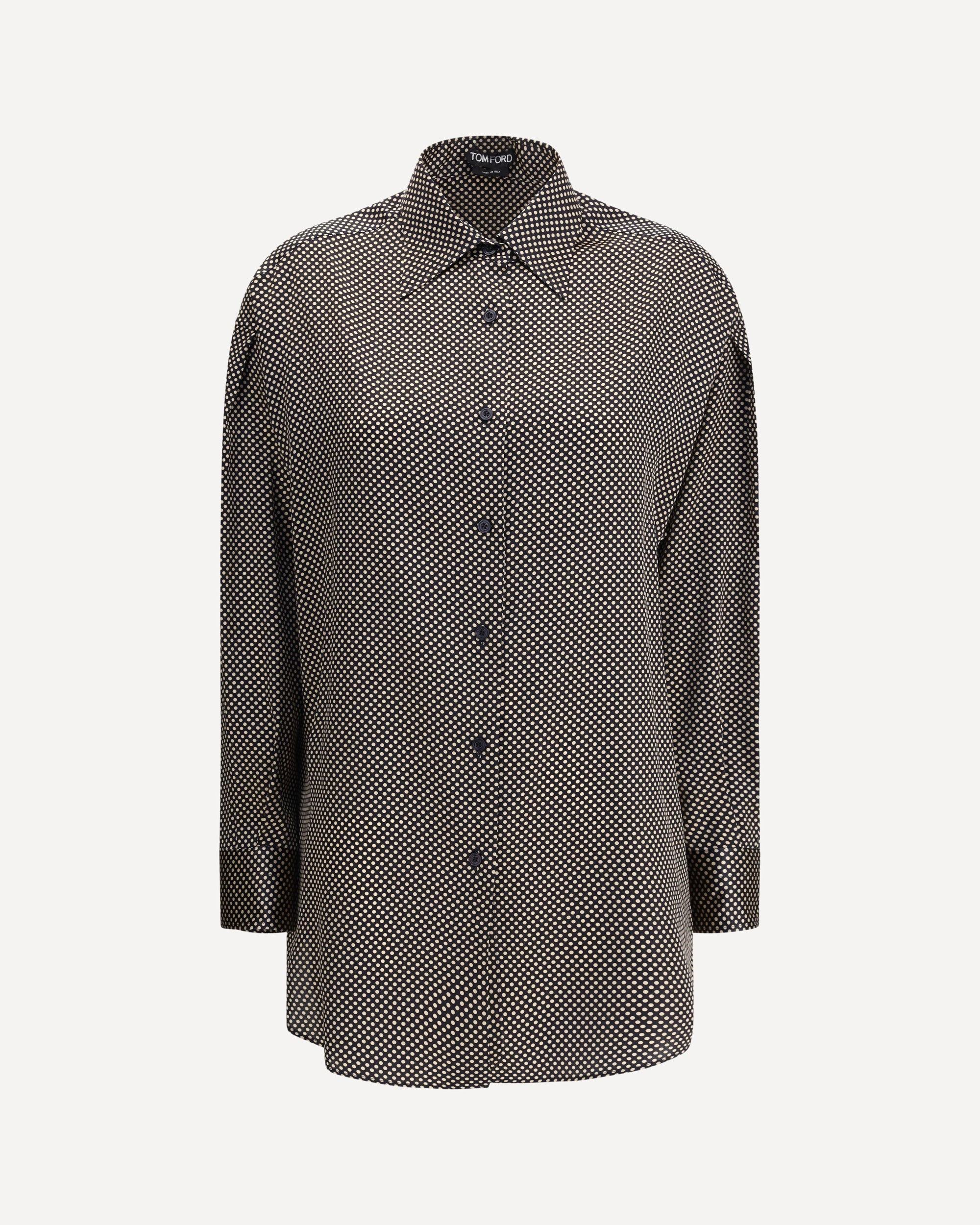 Tom Ford's silk polka Dot Shirt is a sophisticated piece that combines luxury and casual style. Made from fluid silk, it features a pointed collar, an oversized fit and a front button closure. The asymmetric hemline adds a modern touch, making it perfect for elegant yet unconventional looks.