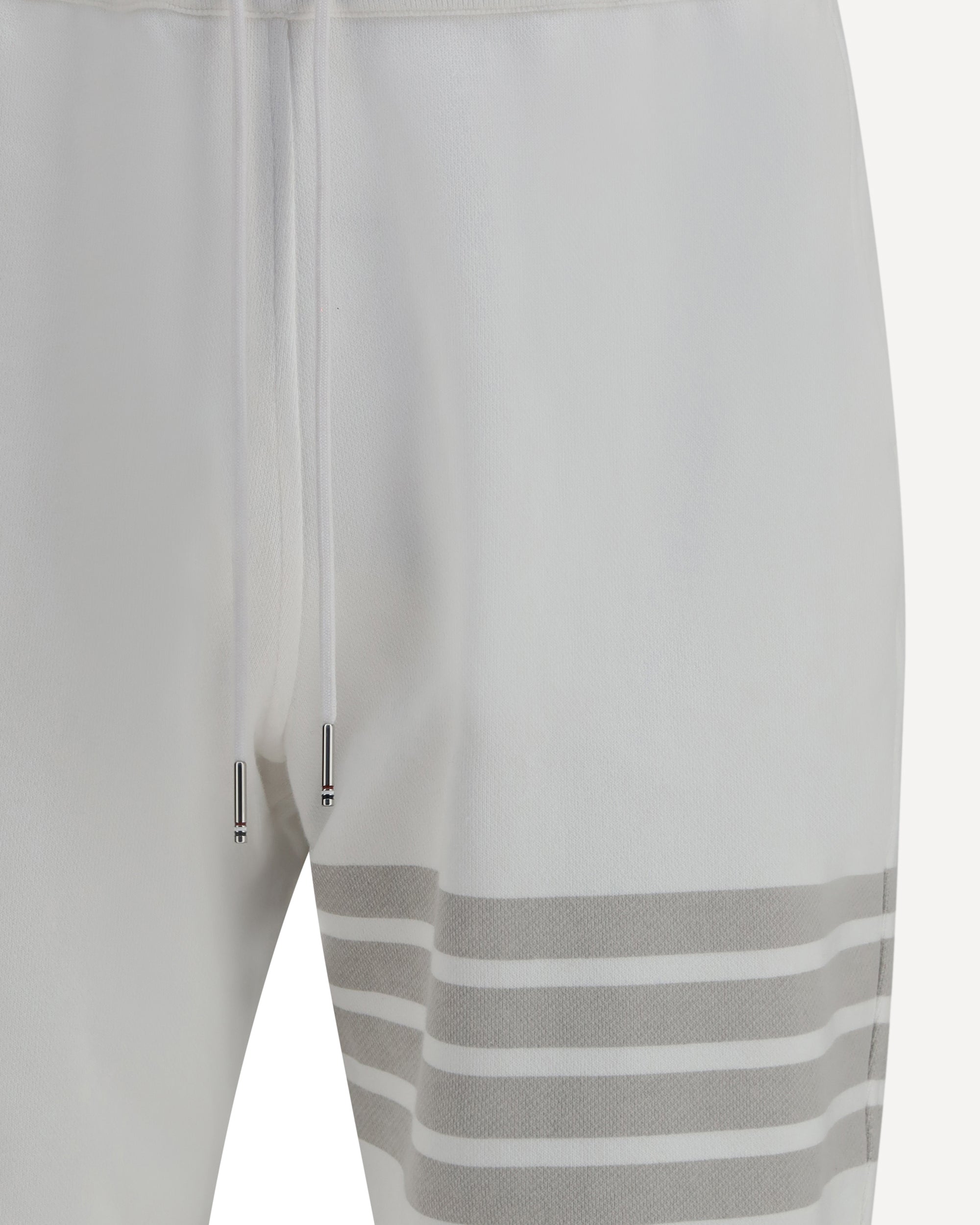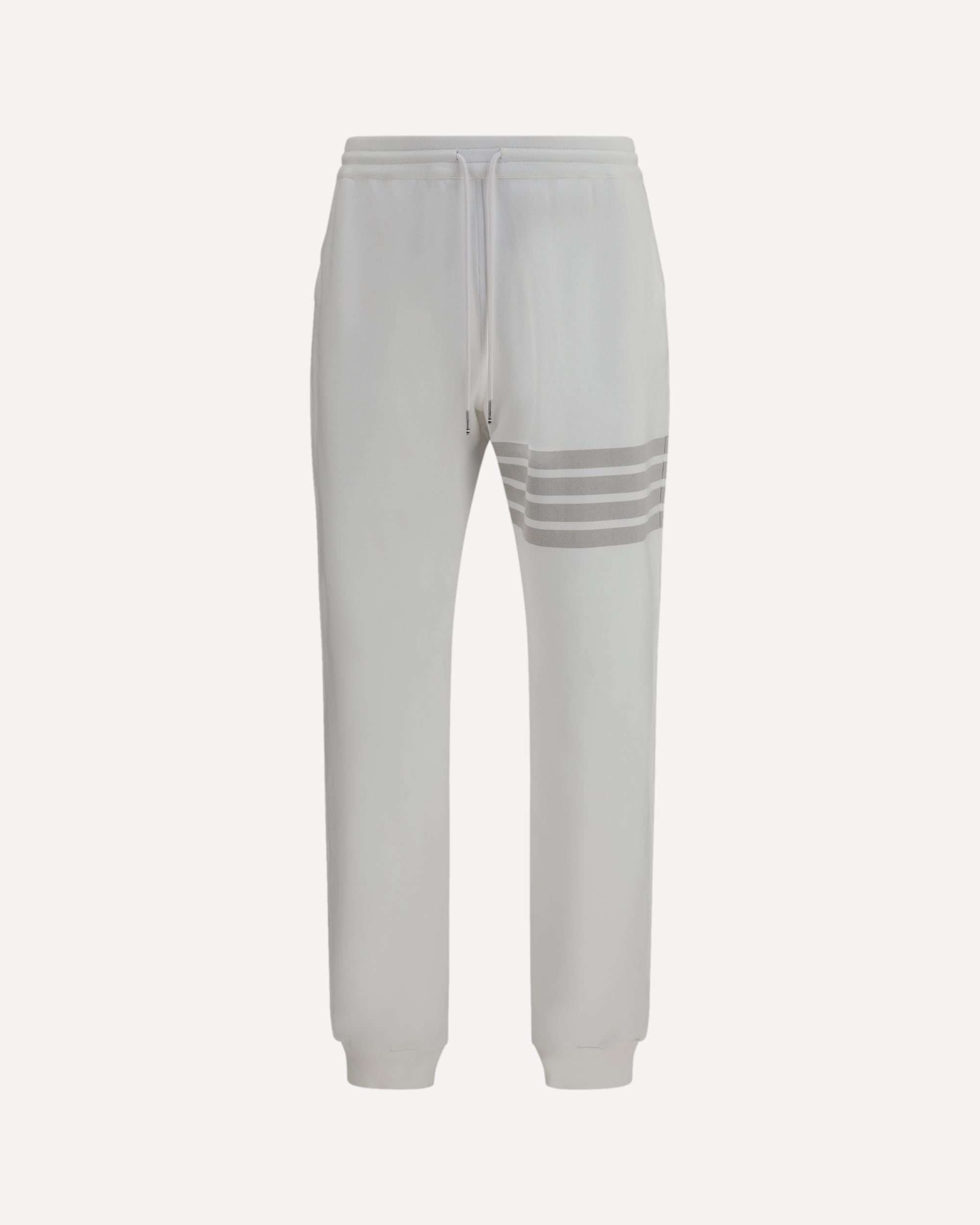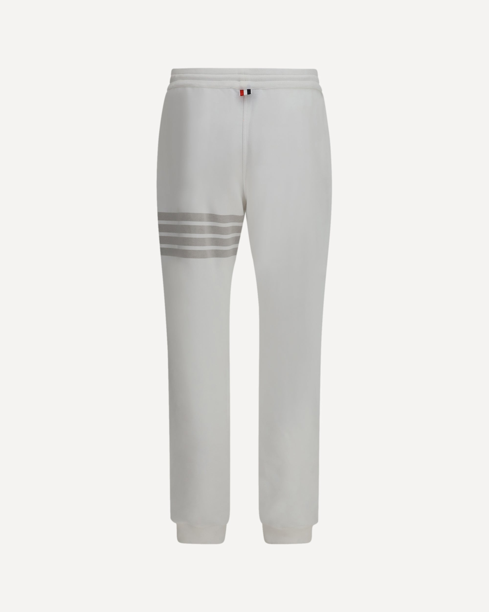 The cotton Sweatpants by Thom Browne combine comfort and style in a modern, functional design. The elasticated waistband with drawstring ensures an adjustable fit, while the three iconic horizontal stripes on the left leg add a distinctive and recognizable touch. Elasticated hems complete the sporty look, while two patch pockets offer practicality.