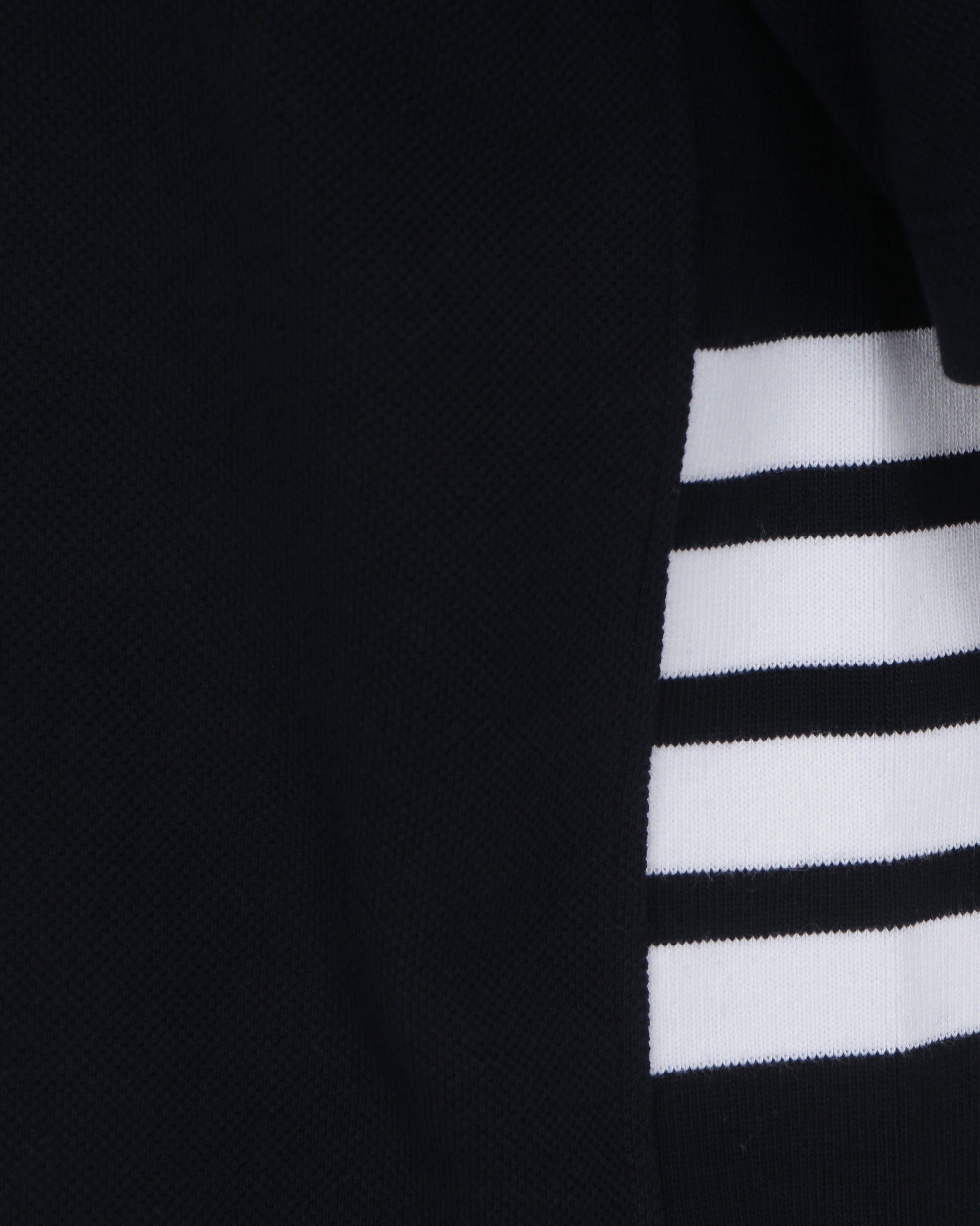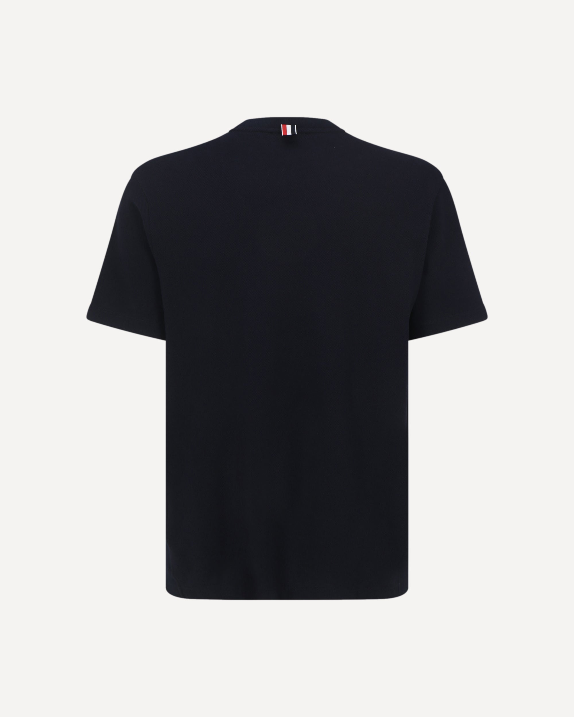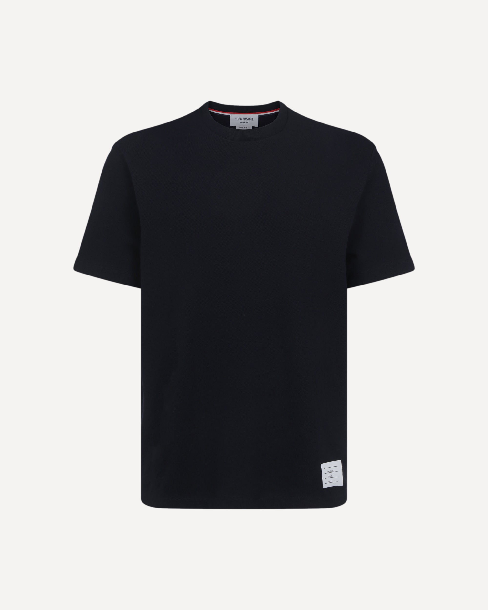 The Cotton T-Shirt by Thom Browne blends simplicity with sartorial precision. The ribbed crew neck and signature side bands outline a clean silhouette, while the front logo patch and tricolour label on the back express the brand’s refined identity. A timeless piece that embodies everyday elegance and meticulous craftsmanship.