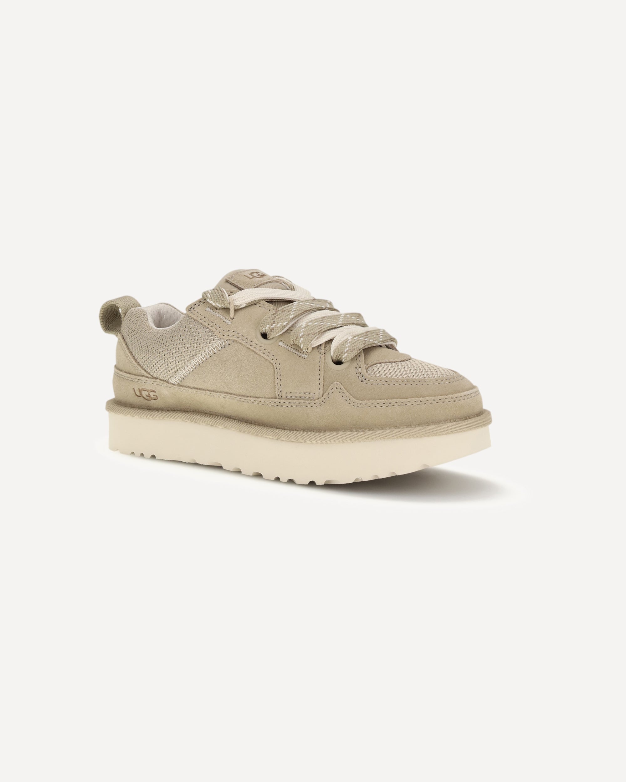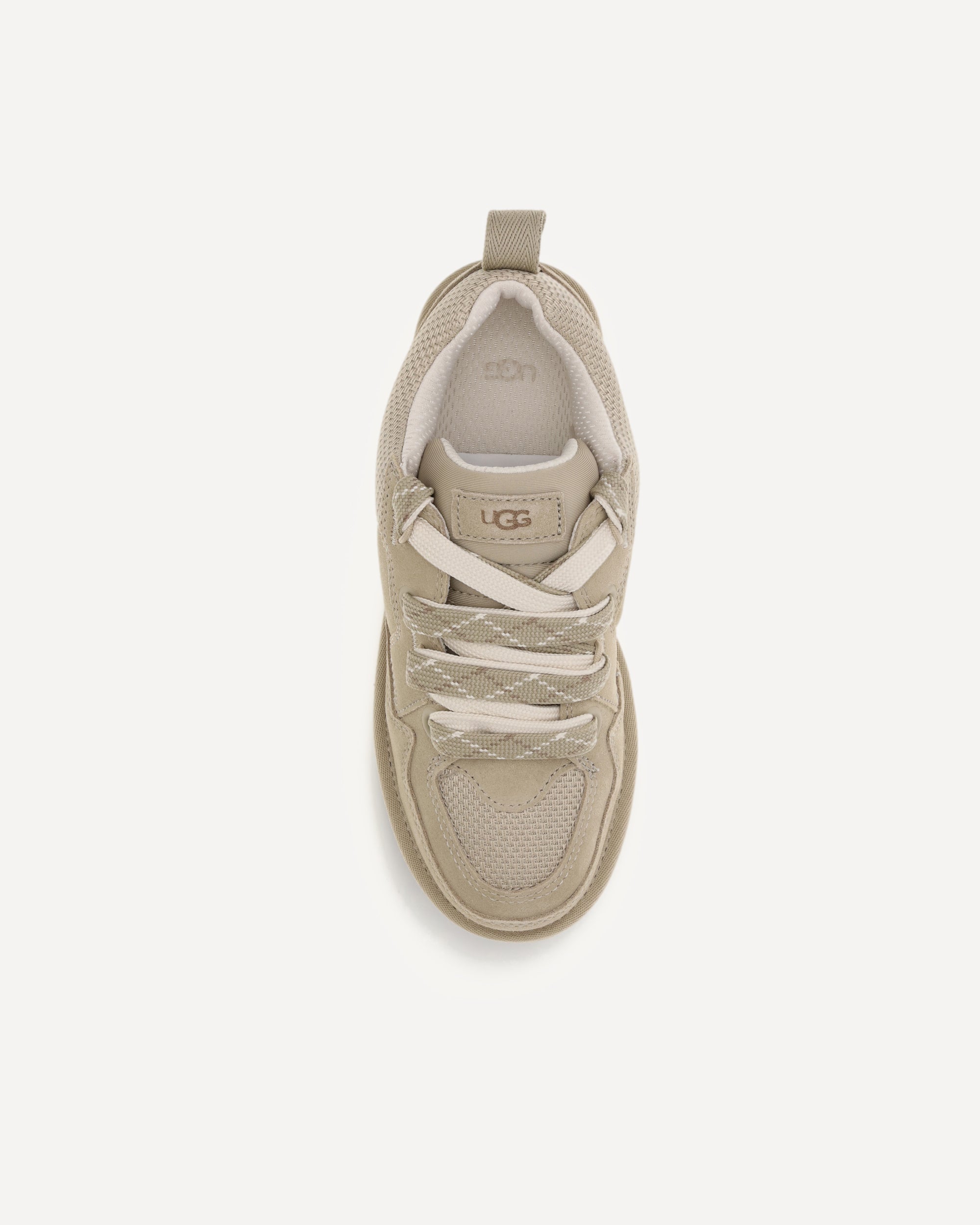 The Lo Lowmel Sneakers by Ugg combine casual style and contemporary comfort in a distinctive design. The upper is made of suede combined with recycled woven canvas mesh for a modern, material-conscious look. The durable fabric heel strap and UGG® logo appliqué add functionality and recognizability, while the oversized padded tongue ensures a comfortable fit. The two-tone flat lace and double lacing system complete the model, ensuring practicality and stability during everyday use.
