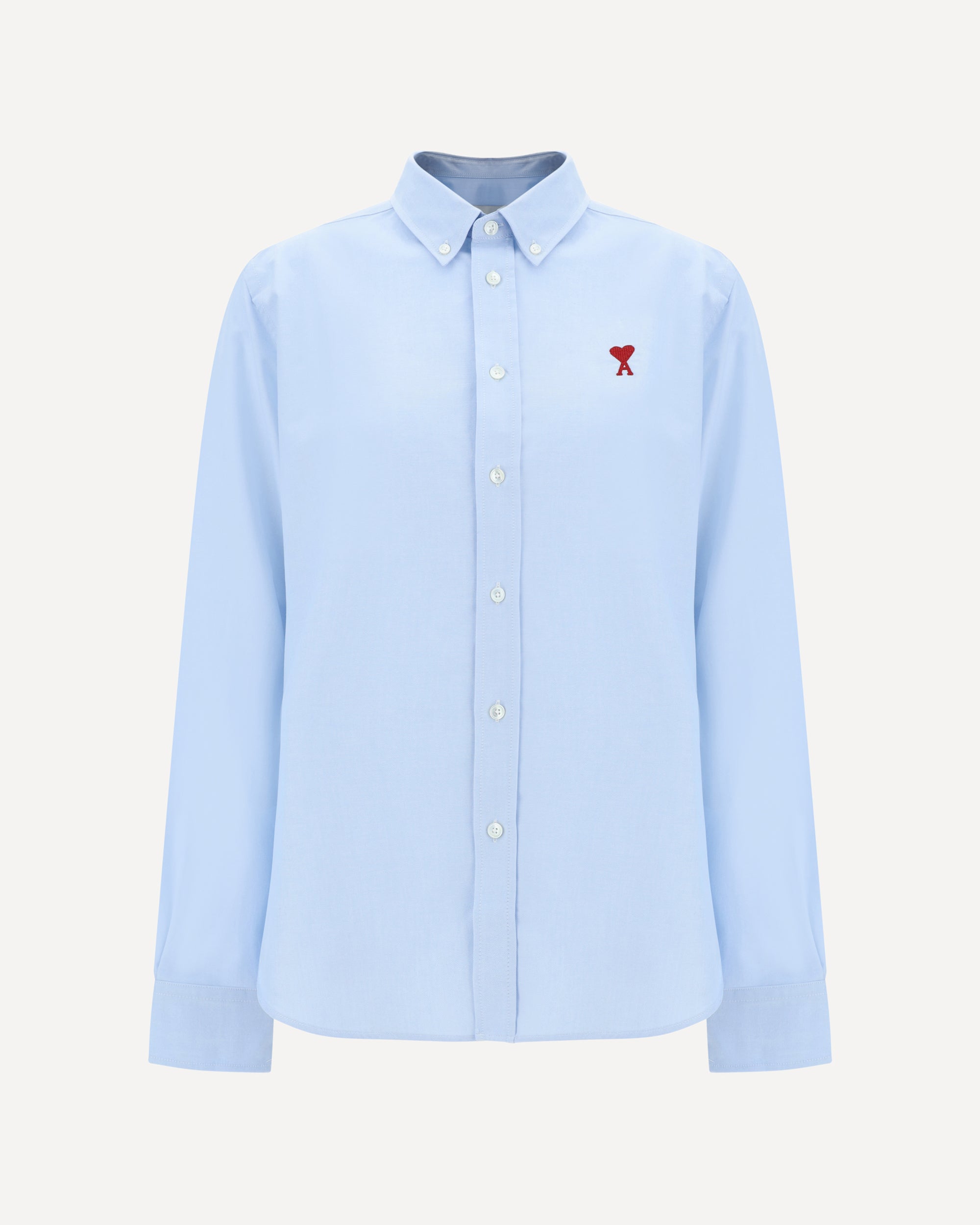 Cotton Adc Shirt by Ami Paris, classic collar, front button closure, iconic contrasting embroidered brand logo on front, adjustable button cuffs, monochrome pattern, regular fit.