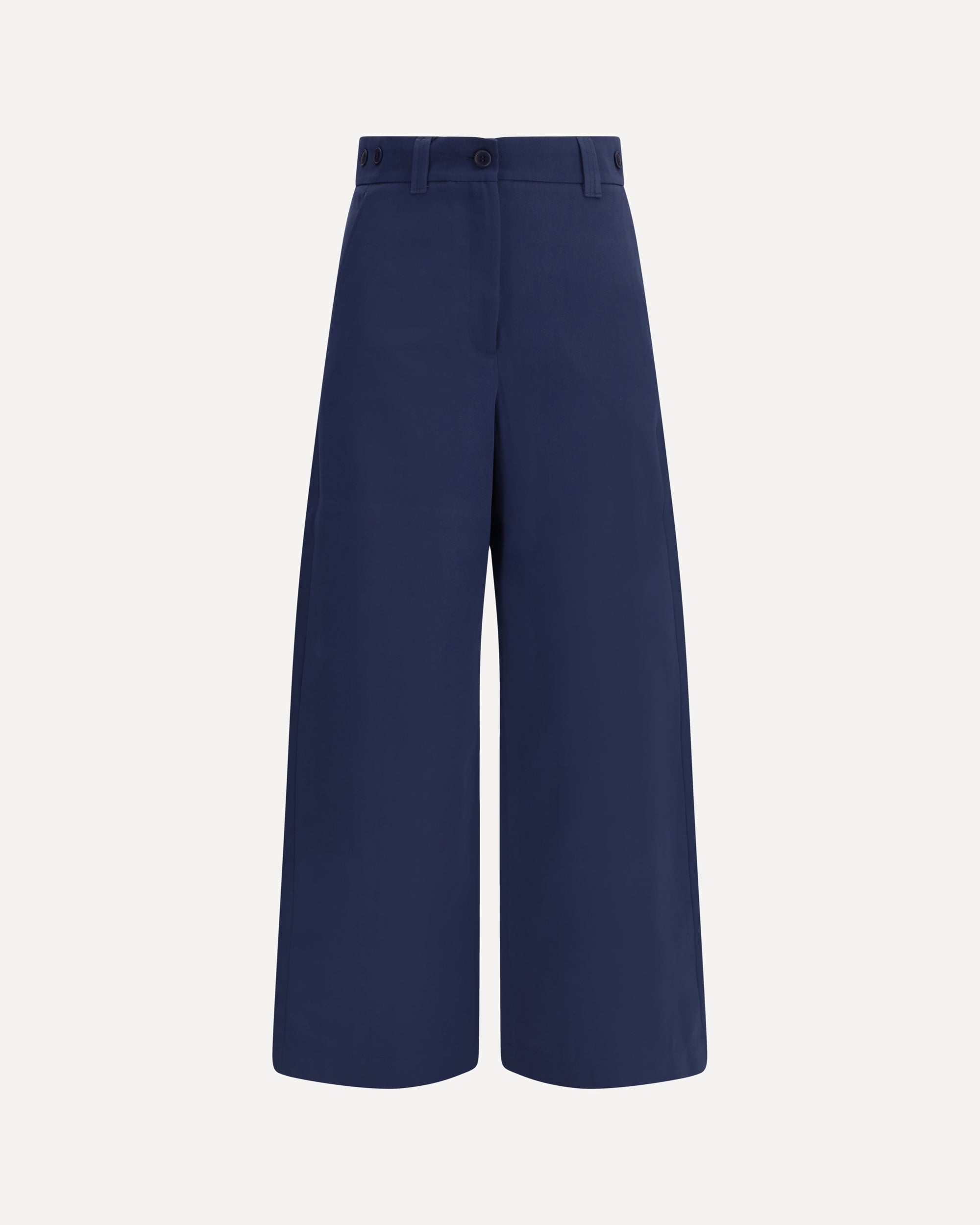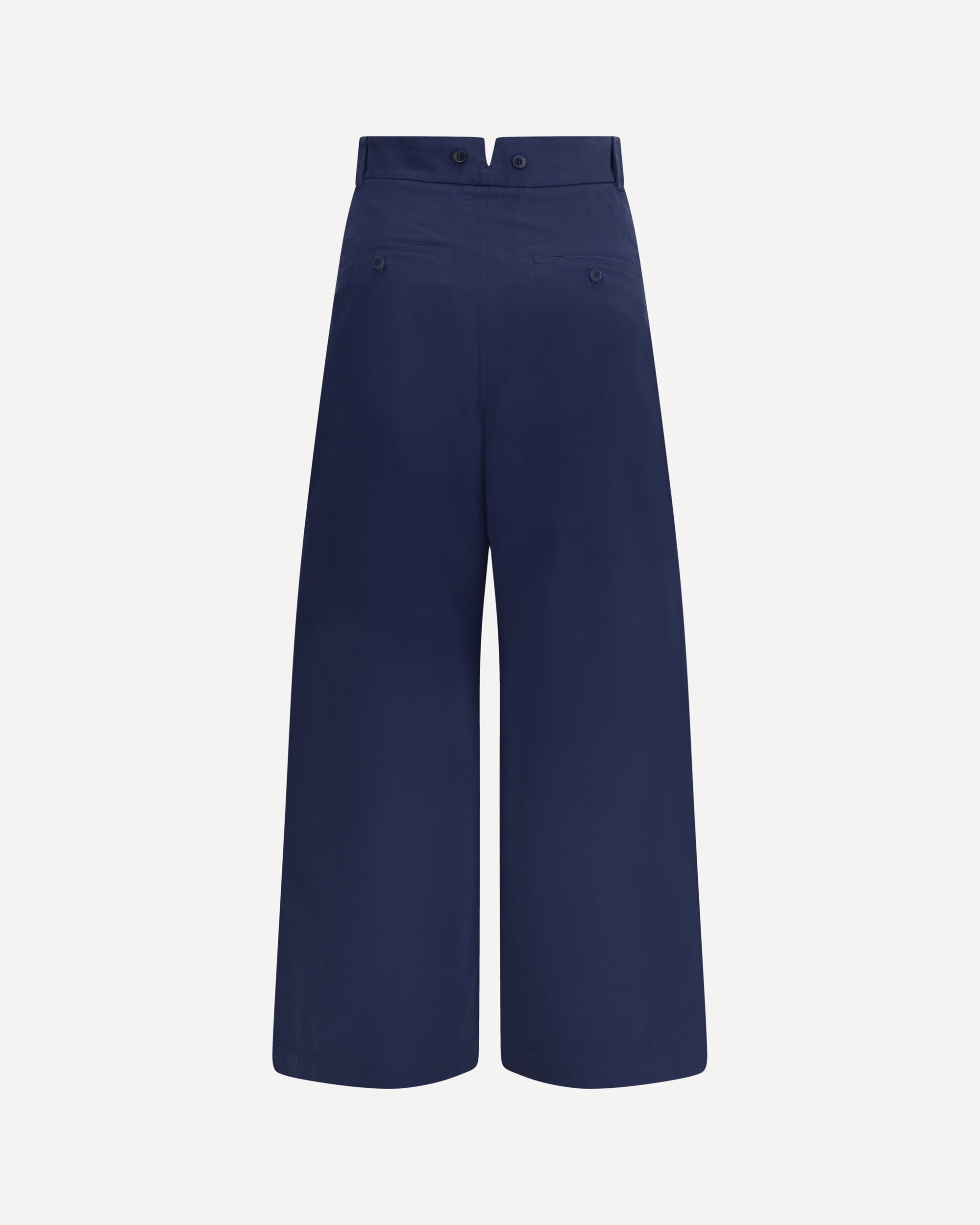 The Alfeo trousers in pure cotton gabardine feature a comfortable wide-leg fit and decorative details such as four-hole buttons at the waist and a small V-shaped cut at the center back. Equipped with a covered zip and button closure, slanted side pockets, and welt pockets with button at the back, they combine practicality and elegance in a versatile piece.