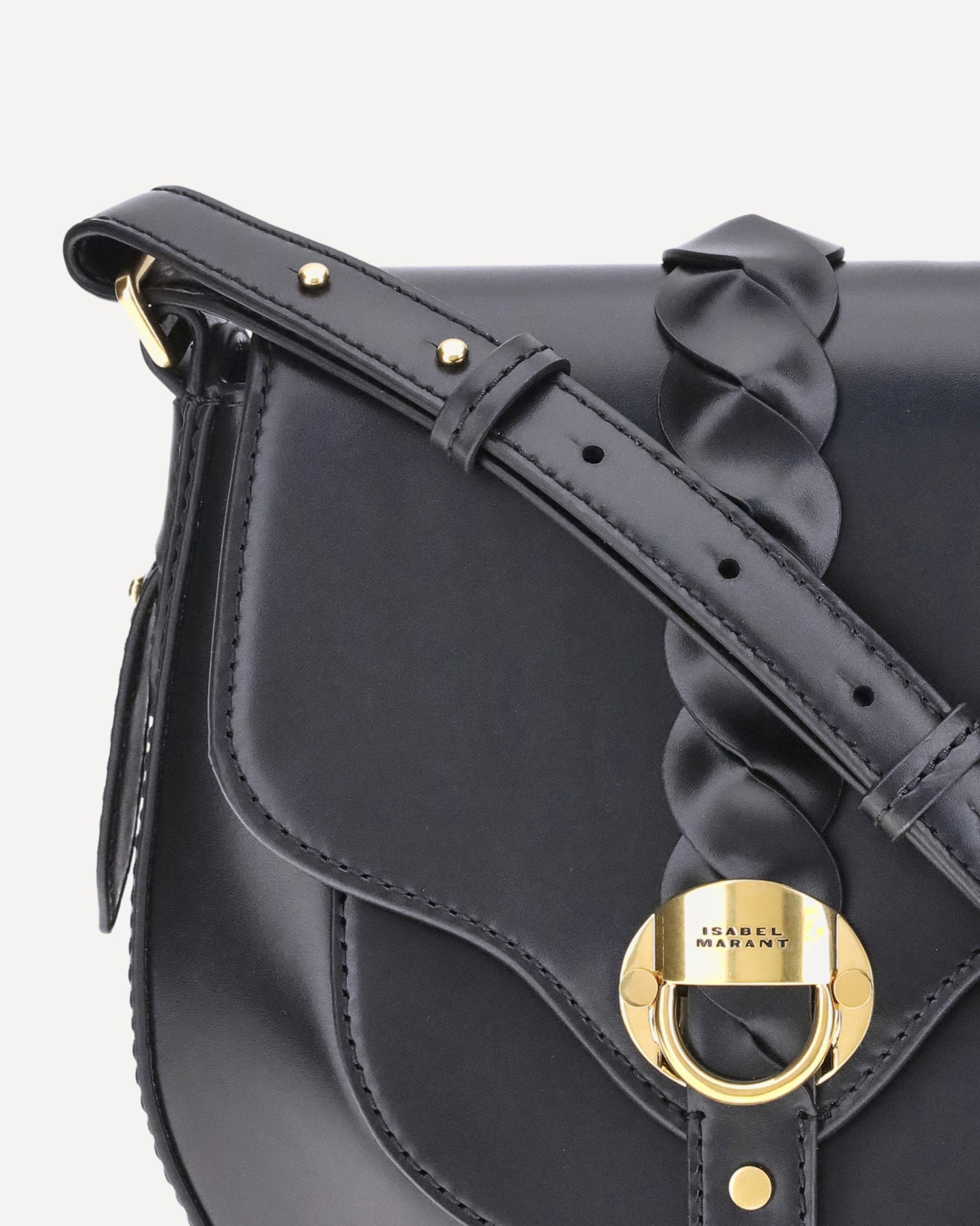 Isabel Marant's smooth leather Altay Shoulder Bag combines style and functionality in a stylish and versatile design. It can be comfortably carried on the shoulder or over the shoulder thanks to the adjustable shoulder strap with stud buttons and loops, allowing it to fit every need.The bag features refined details such as leather flaps and a woven tab on the flap, while the engraved metal "Isabel Marant" closure with magnetic system ensures security and practicality. A patch pocket on the back completes the design for even more functional organization.