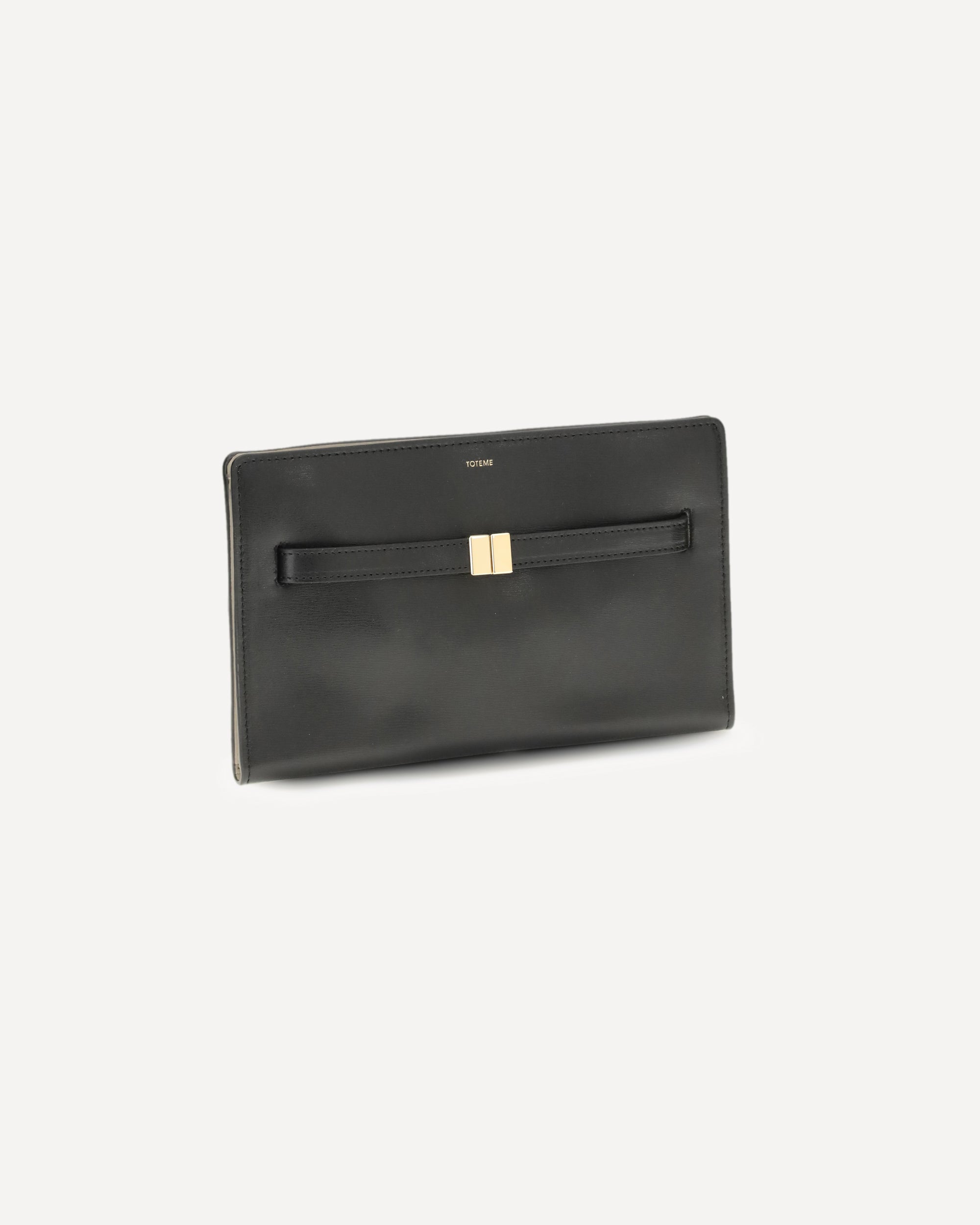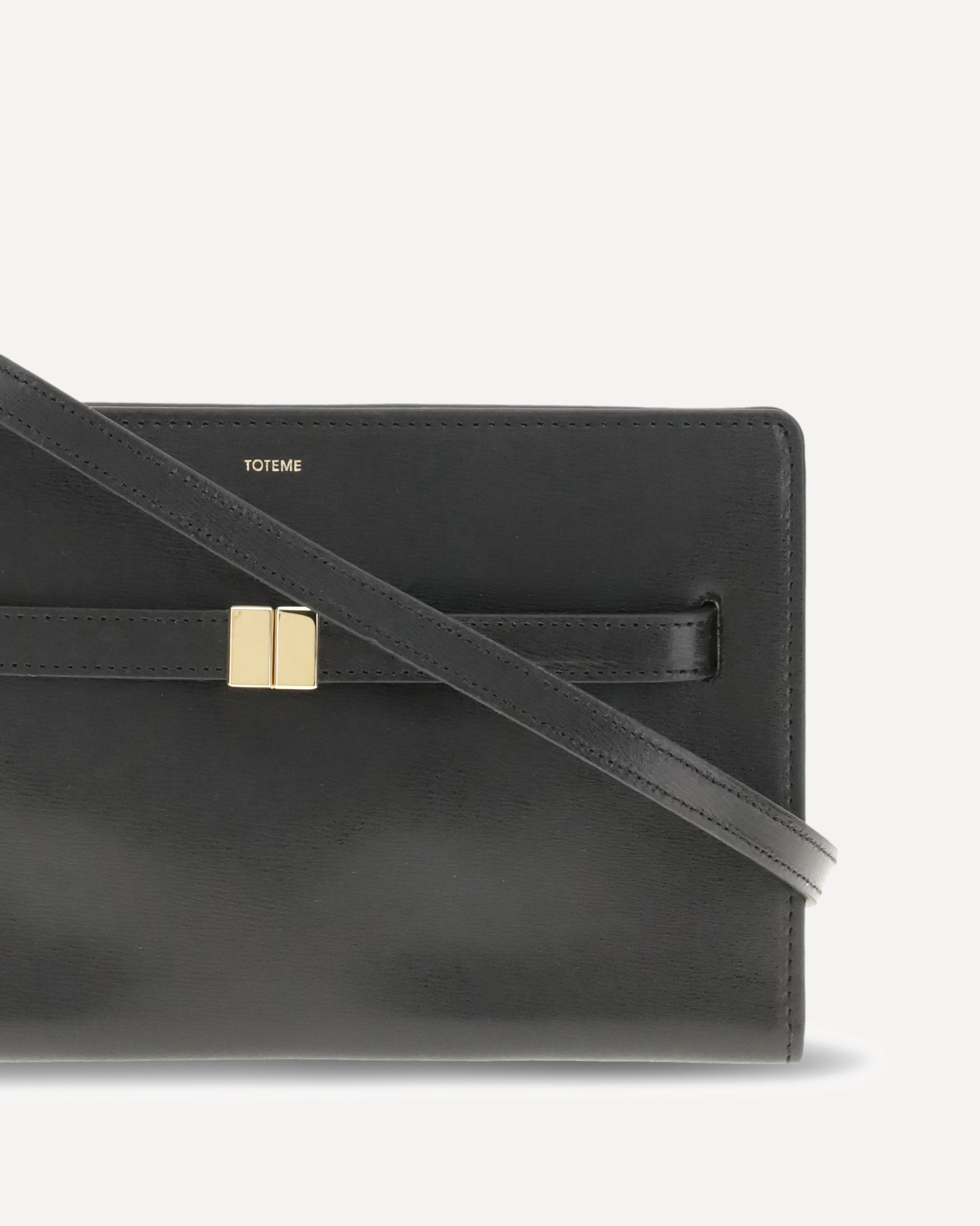 The Belted leather crossbody Bag by Toteme is crafted to sit close to the body, keeping essential belongings within easy reach. Made in Italy from palmellato leather, it features a gold-tone metal slide clasp matching the brand’s Belted bucket bag. The interior is divided into three practical compartments secured with snap buttons. Its adjustable strap allows it to be worn comfortably on the shoulder or across the body.