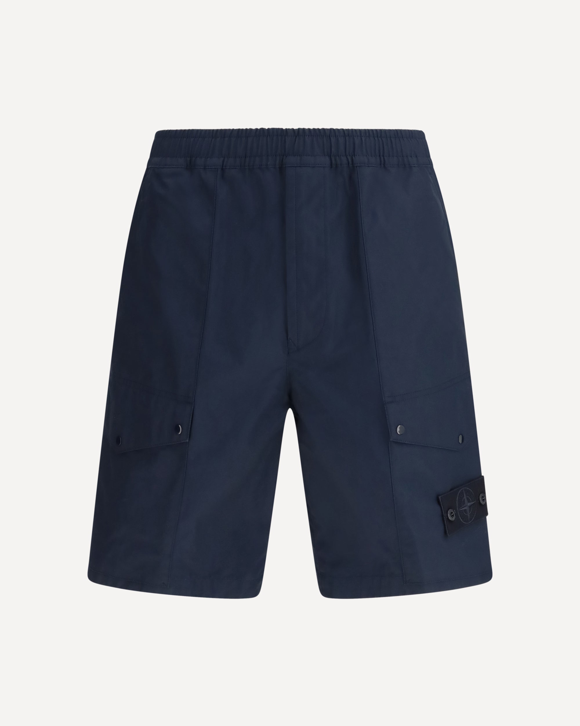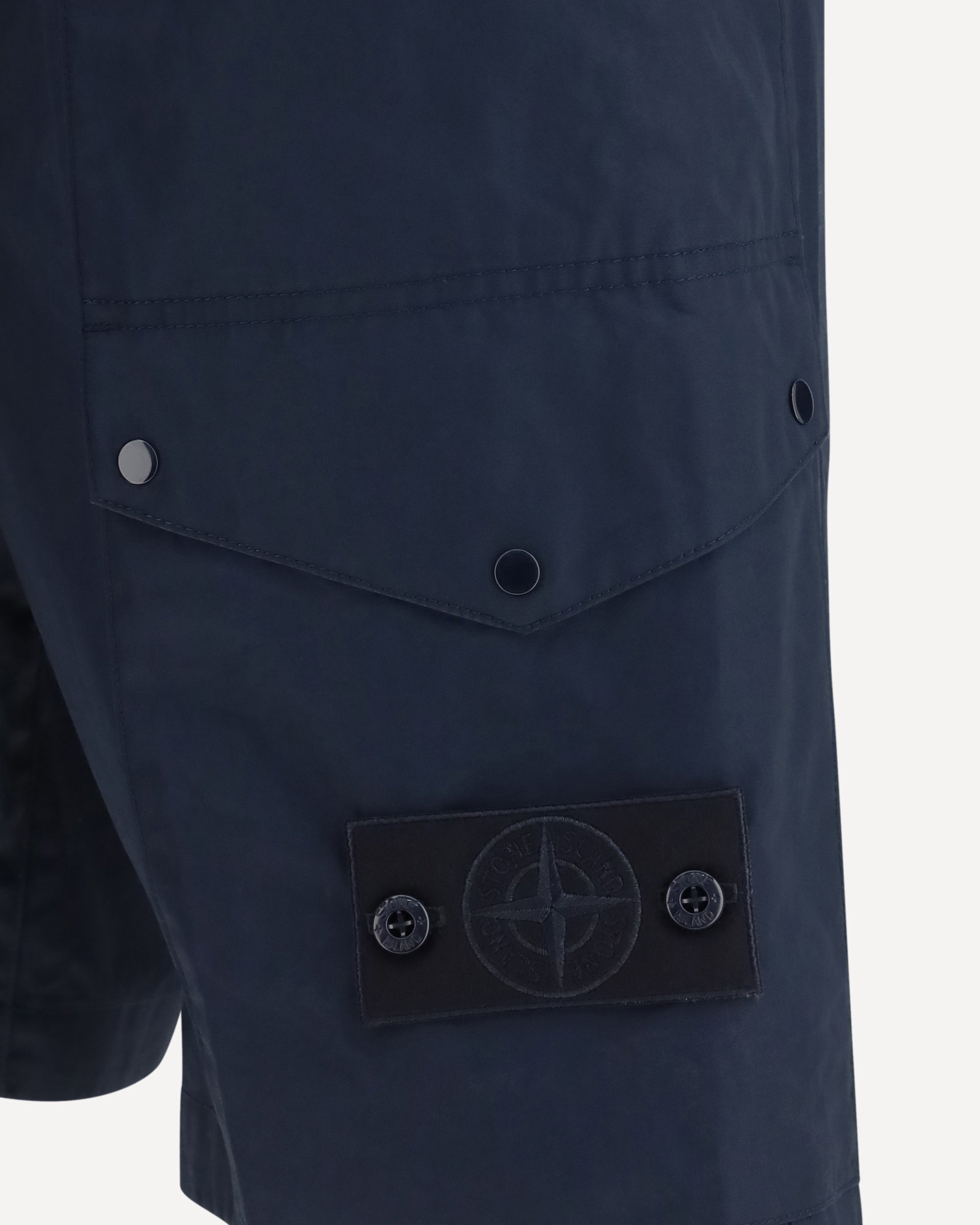 The Bermuda Shorts by Stone Island are crafted from cotton and feature a concealed zip fastening. Designed with an elasticated waistband and adjustable drawstring for a customized fit, they include side and back flap pockets and a logo applied on the left side pocket. The removable signature logo badge completes the design, adding the brand’s distinctive touch.
