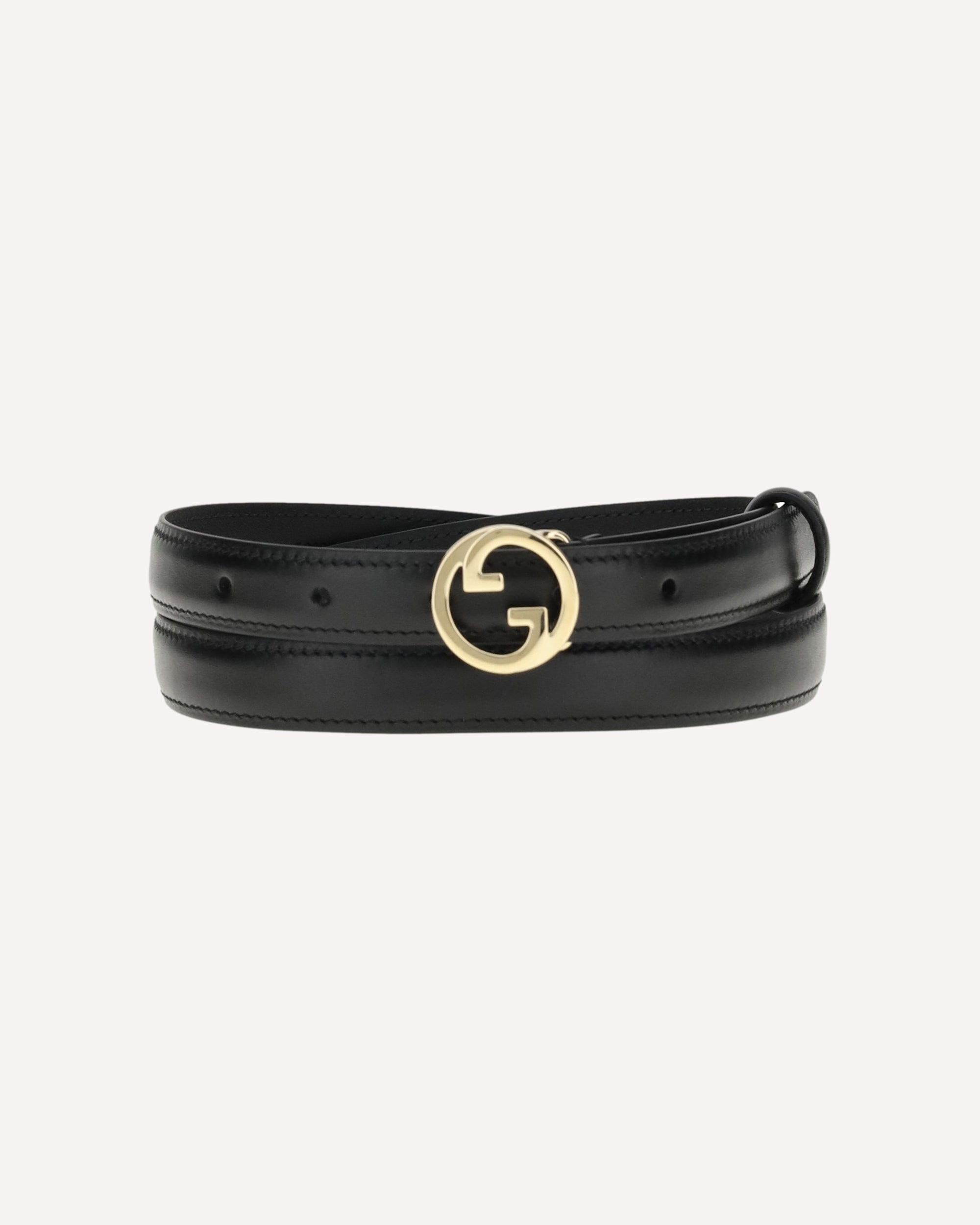 Gucci's Blondie Leather Belt is an elegant and refined accessory made of smooth leather with an essential finish. The design is enhanced by the front buckle with the iconic gold-plated plaque that reproduces the brand's monogram, a symbol of style and recognition. With a thickness of 2 cm, it is perfect for adding a sophisticated touch to formal and casual looks.