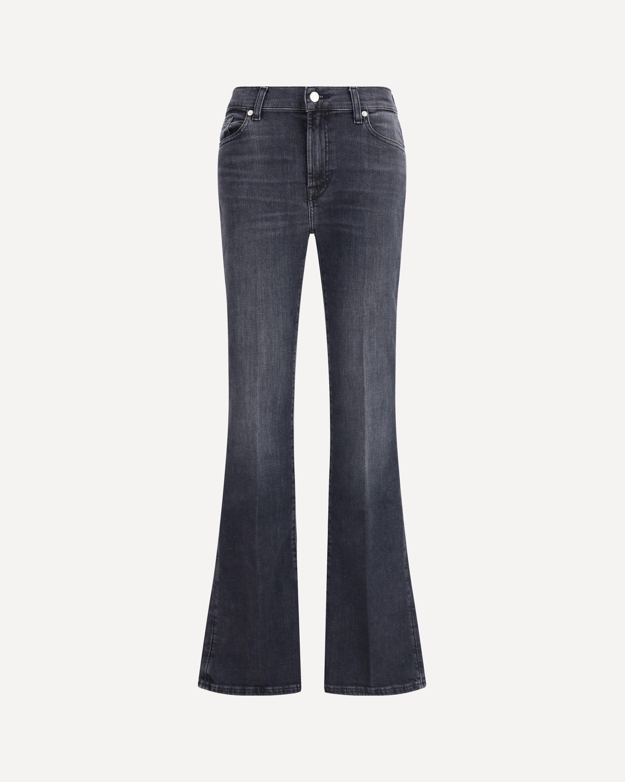 The Slim Illusion bootcut Jeans feature a mid-rise waist that gently hugs the hips and thighs before subtly flaring at the knee, elongating the leg. The zip and button closure ensures practicality, while the clean pocket and tailored details along the sides enhance the refined silhouette. This pair combines comfort with contemporary femininity, ideal for versatile everyday looks.