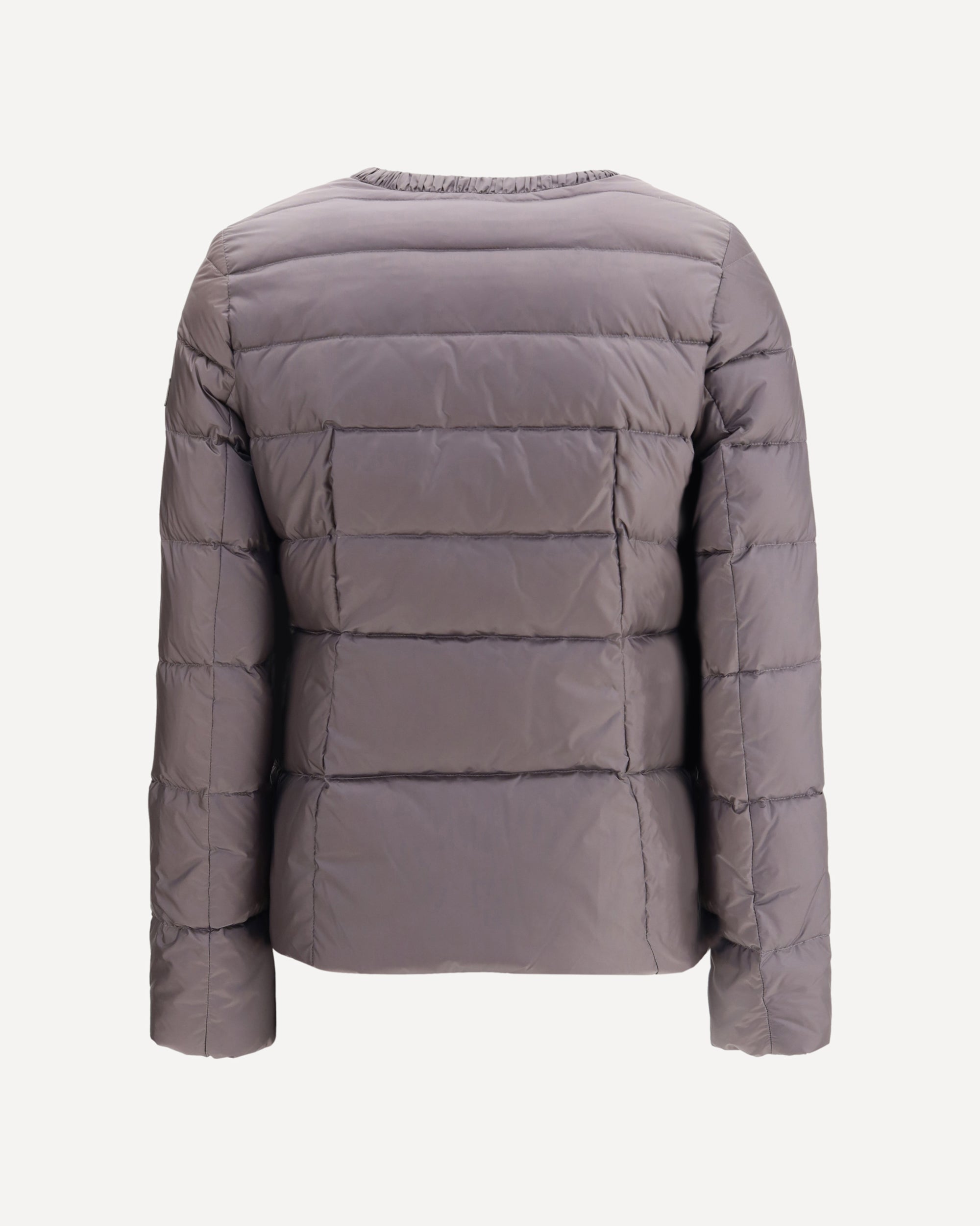 The Breva lightweight Down Jacket by Tatras features a quilted, padded design with a crew neck, front zipper closure and two side welt pockets. The slouchy cut enhances the figure, combining style and practicality in an essential but neat look.