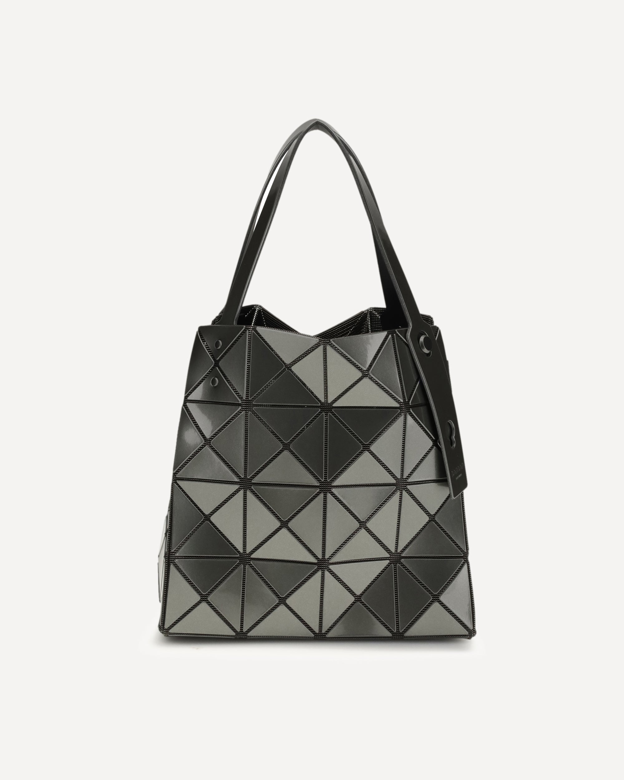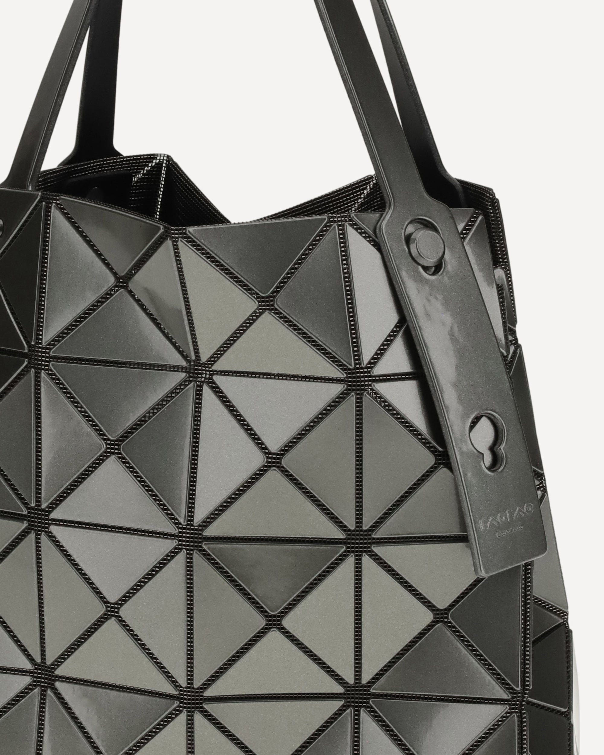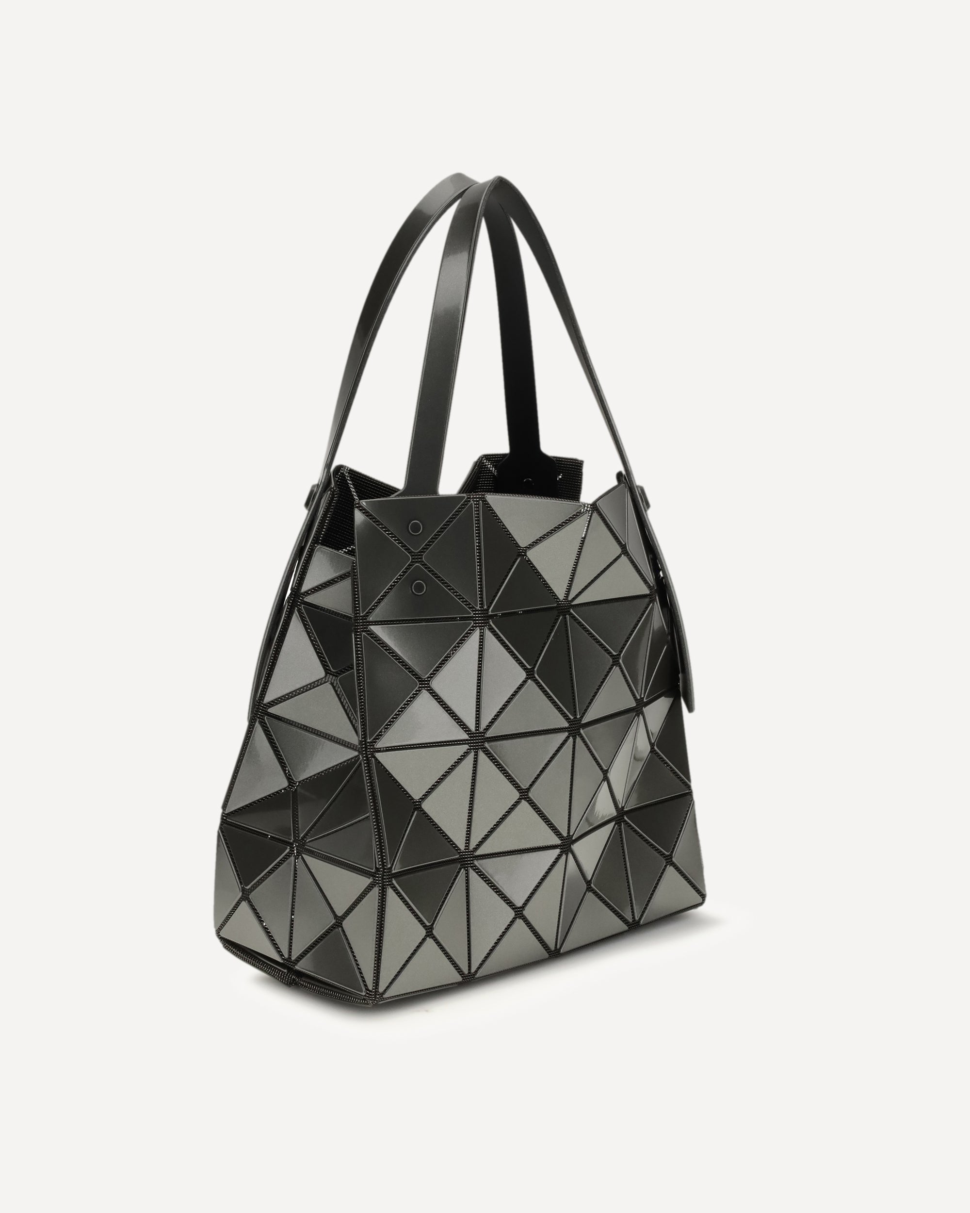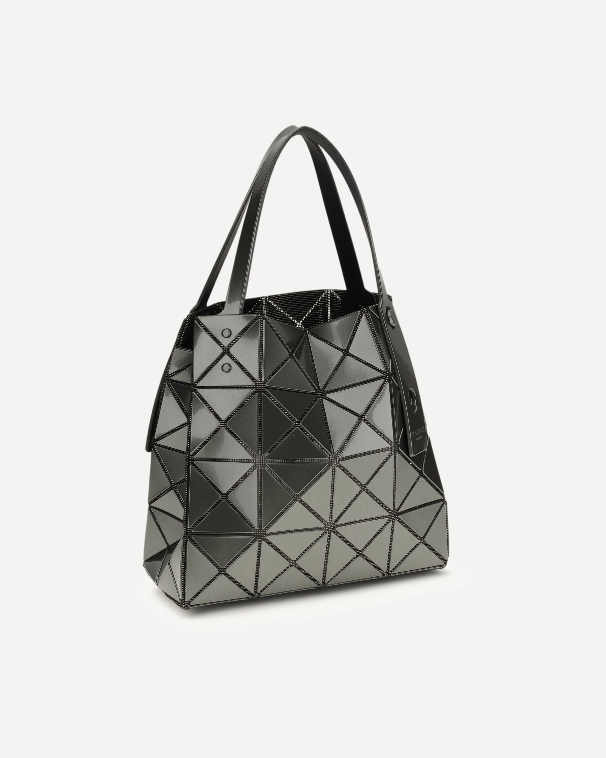 The Carat Handbag by Bao Bao features a distinctive geometric triangle design that creates a modern and dynamic visual effect. Featuring two handles, it is made with a glossy vinyl finish that enhances its shine and texture. An iconic and contemporary accessory, perfect for adding a touch of bold style to any look.