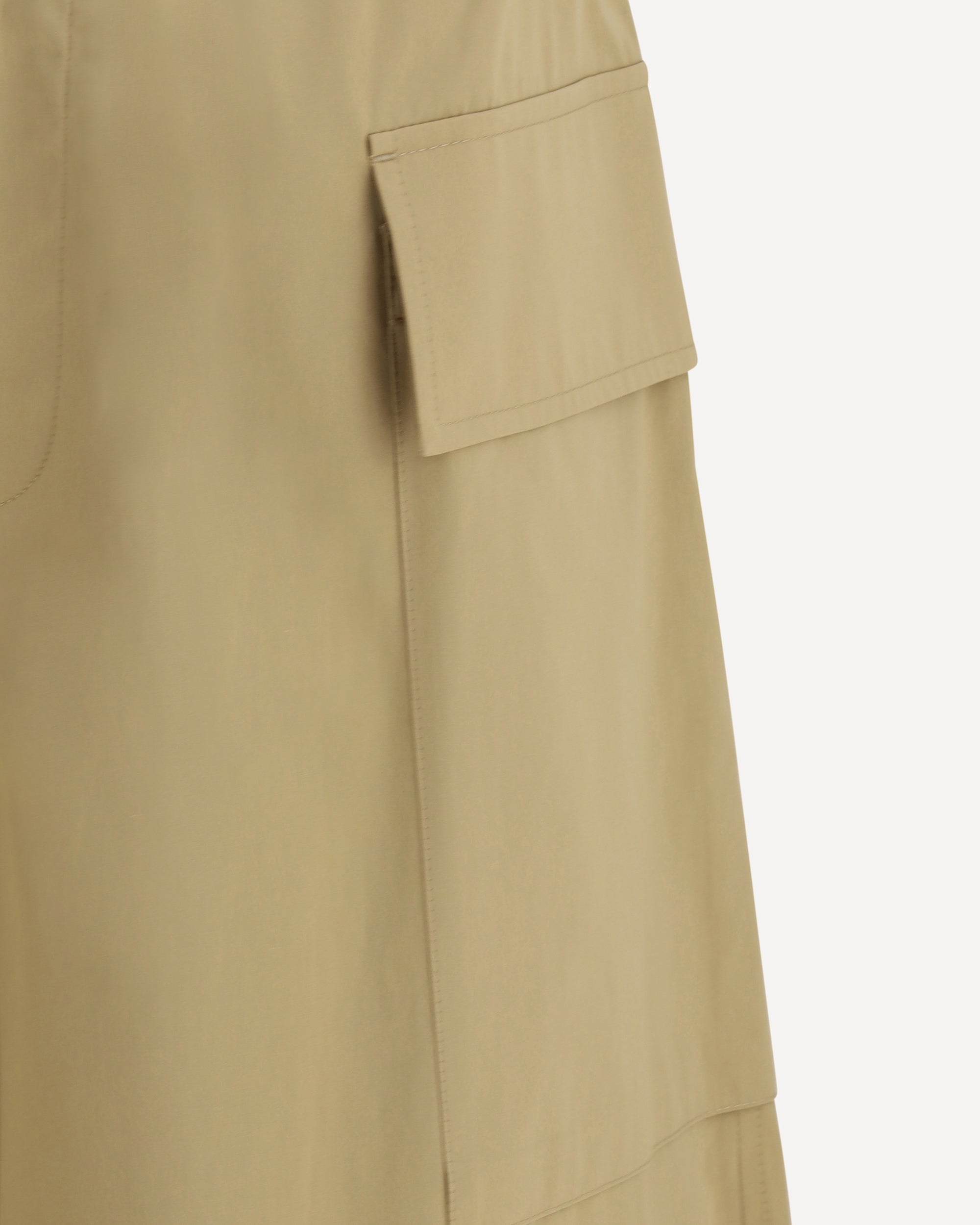 Cotton cargo Pants by Jil Sander feature an elasticated waistband and adjustable drawstring. The front closure is zipper and button, while the cargo pockets applied on the side panels give a strong and functional character. Completing the design is the iconic tone-on-tone embroidered logo on the front for a discreet yet distinctive detail. A garment that combines minimalism and practicality in perfect Jil Sander style.