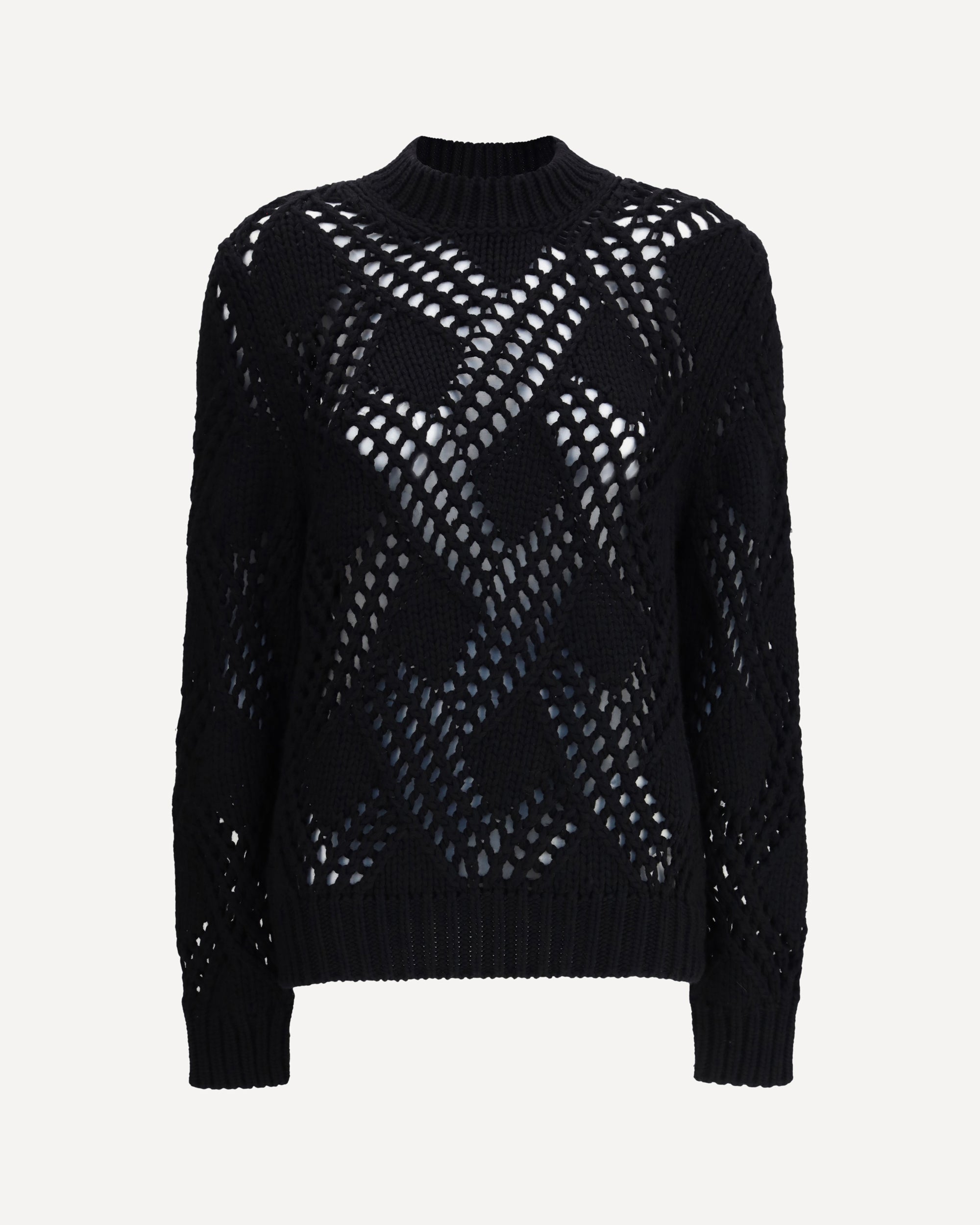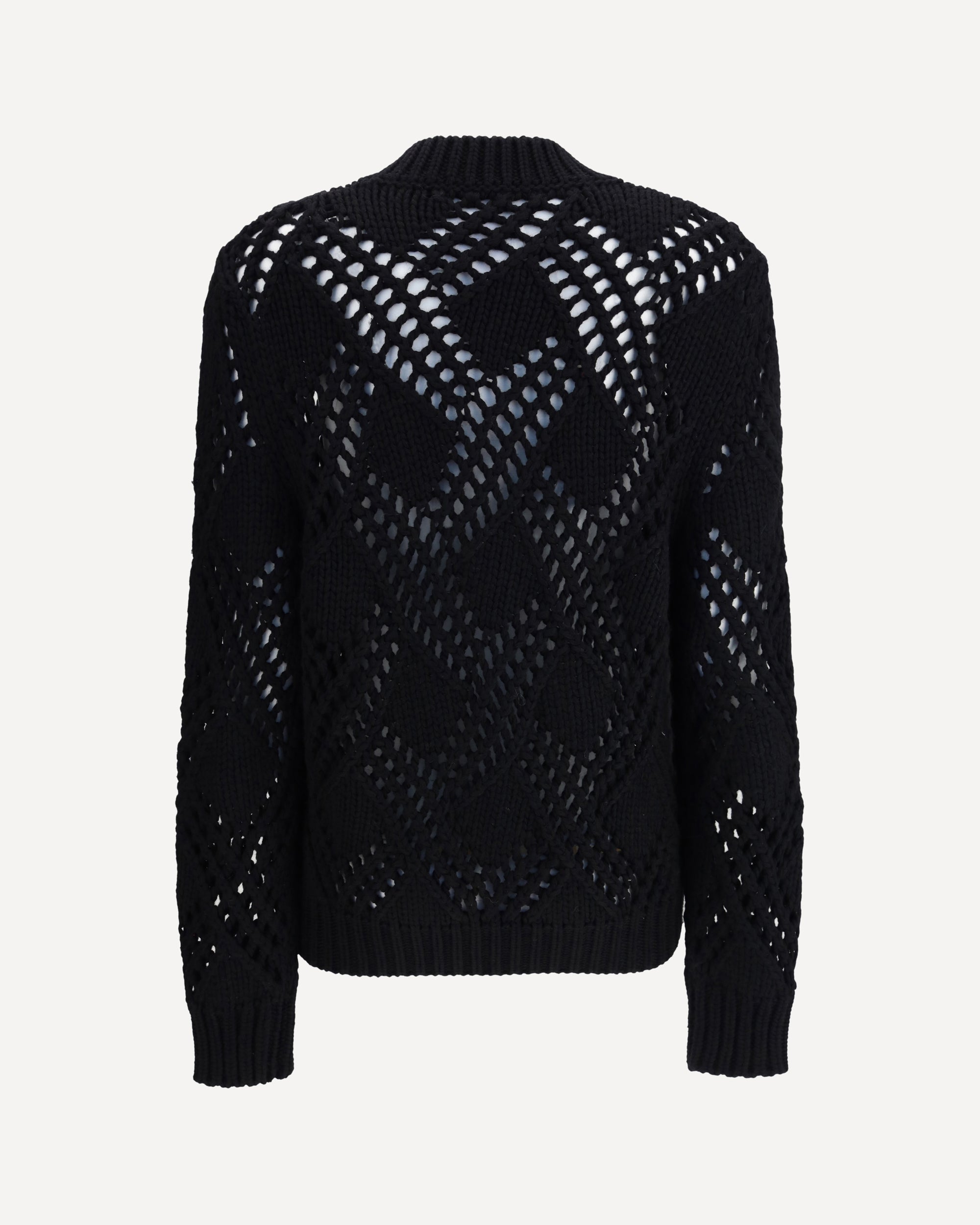 The Geometric Pattern Sweater by Jil Sander is a masterpiece of simplicity and refinement. The intricate, sophisticated geometric pattern is combined with an open-knit design that adds a unique lightness to the piece. The textured relief fabric enhances the wool with a luxurious tactile quality. The crew neckline adds versatility to the design, making it perfect for any occasion. A sweater that stands out without being excessive, ideal for those who appreciate elegance in its purest form.