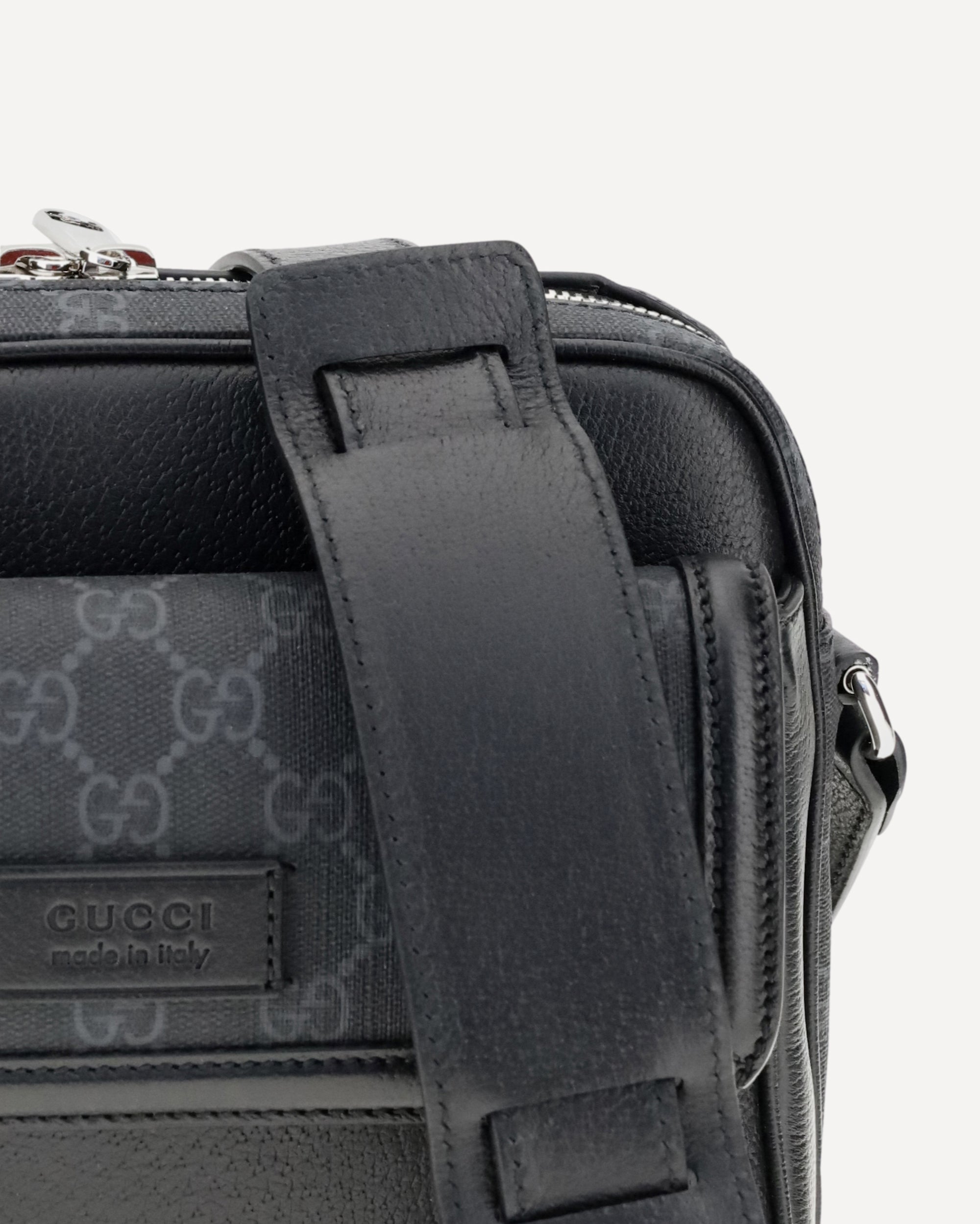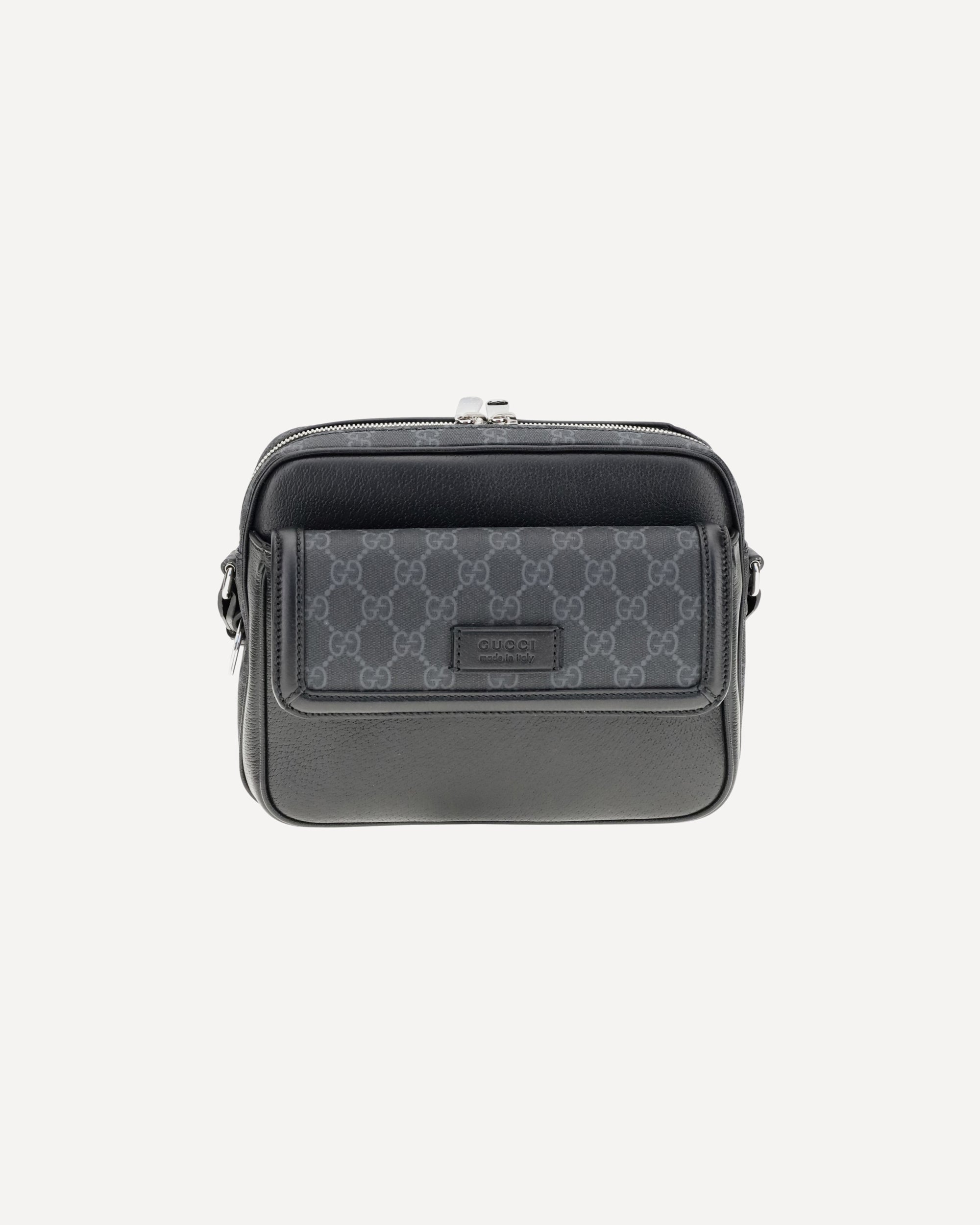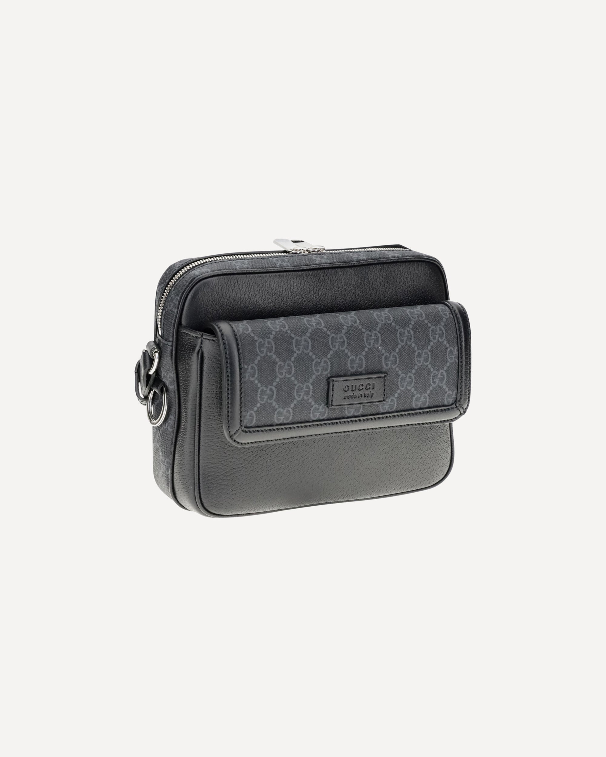 The Small GG Supreme Fabric Shoulder Bag is a compact and functional accessory featuring black GG Supreme fabric trim that accentuates its sophisticated aesthetic. The cotton-linen interior lining ensures lightness and durability, while the leather Gucci logo plaque adds a distinctive touch. It features an interior zippered pocket, a practical front flap pocket and an adjustable and detachable shoulder strap for versatile use. The zippered top closure completes the design with practicality and security.