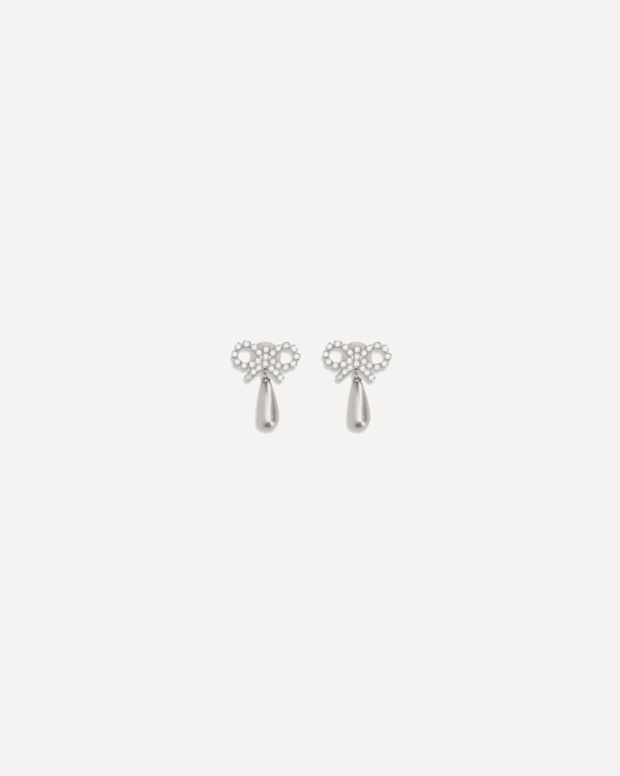 The crystal bow pearl Earrings by Self-Portrait combine elegance and luminosity with refined pearl drops paired with sparkling crystal bows. Equipped with a stud holder, they frame the face with a delicate, sparkling effect, perfect for enhancing both everyday looks and more sophisticated outfits.