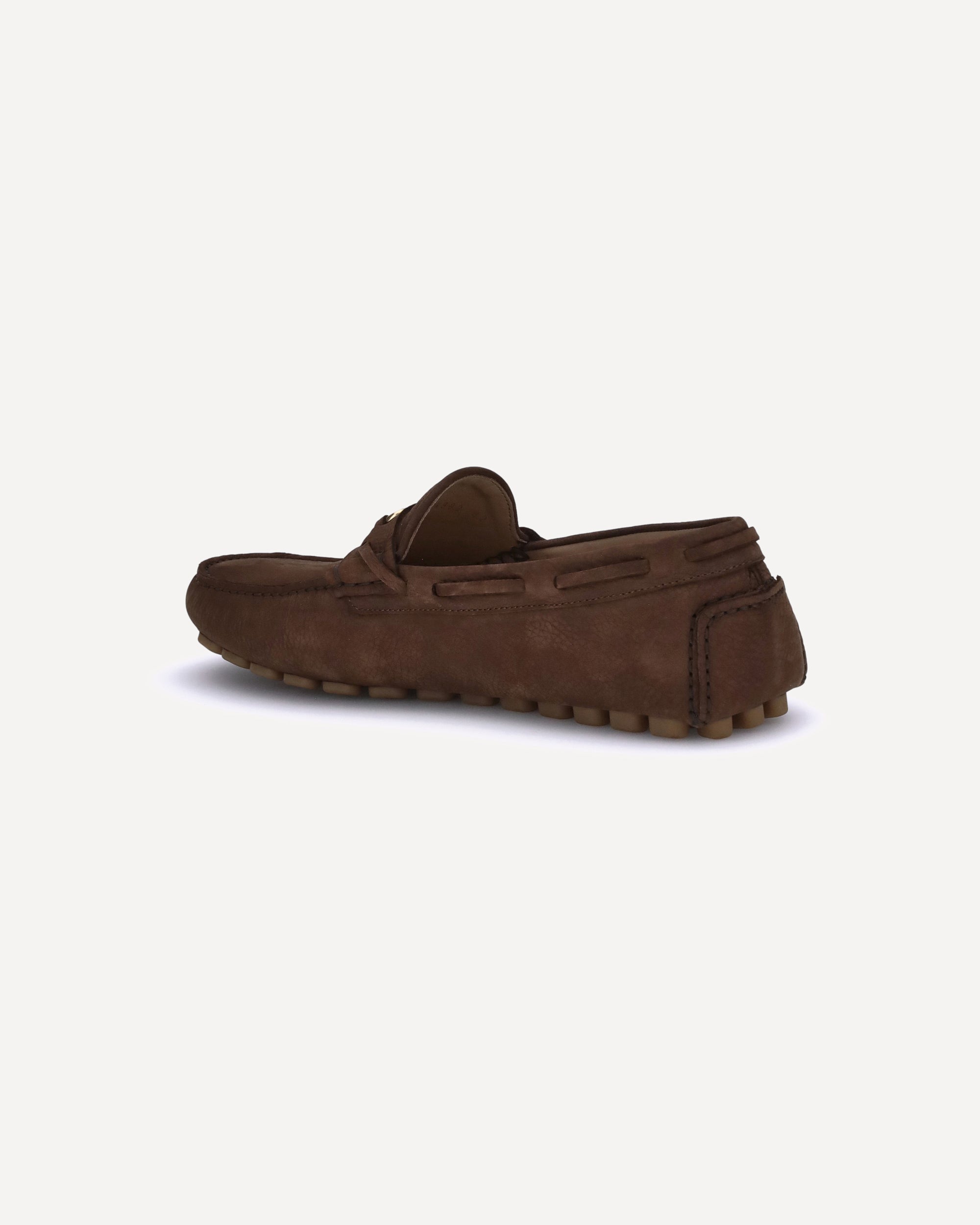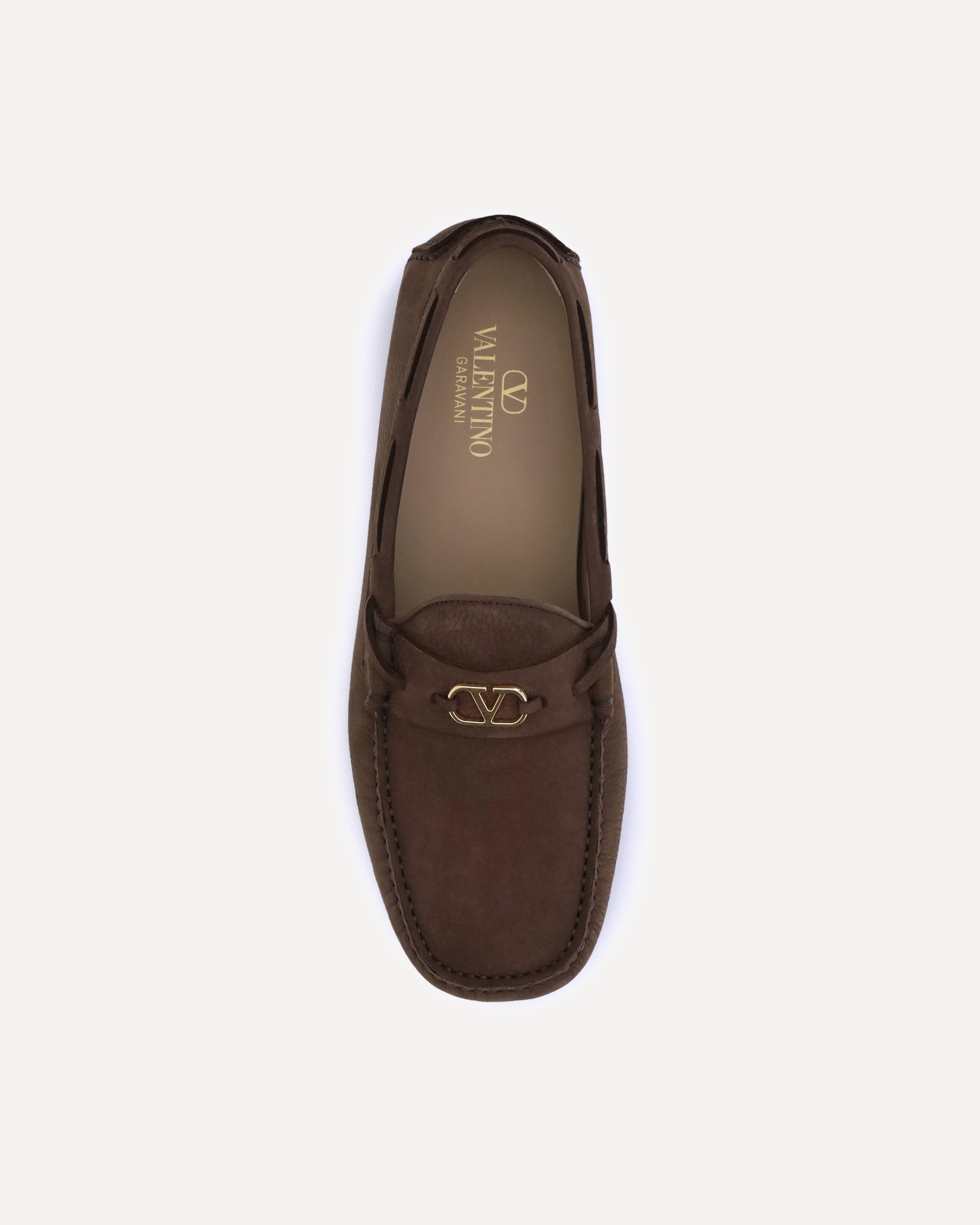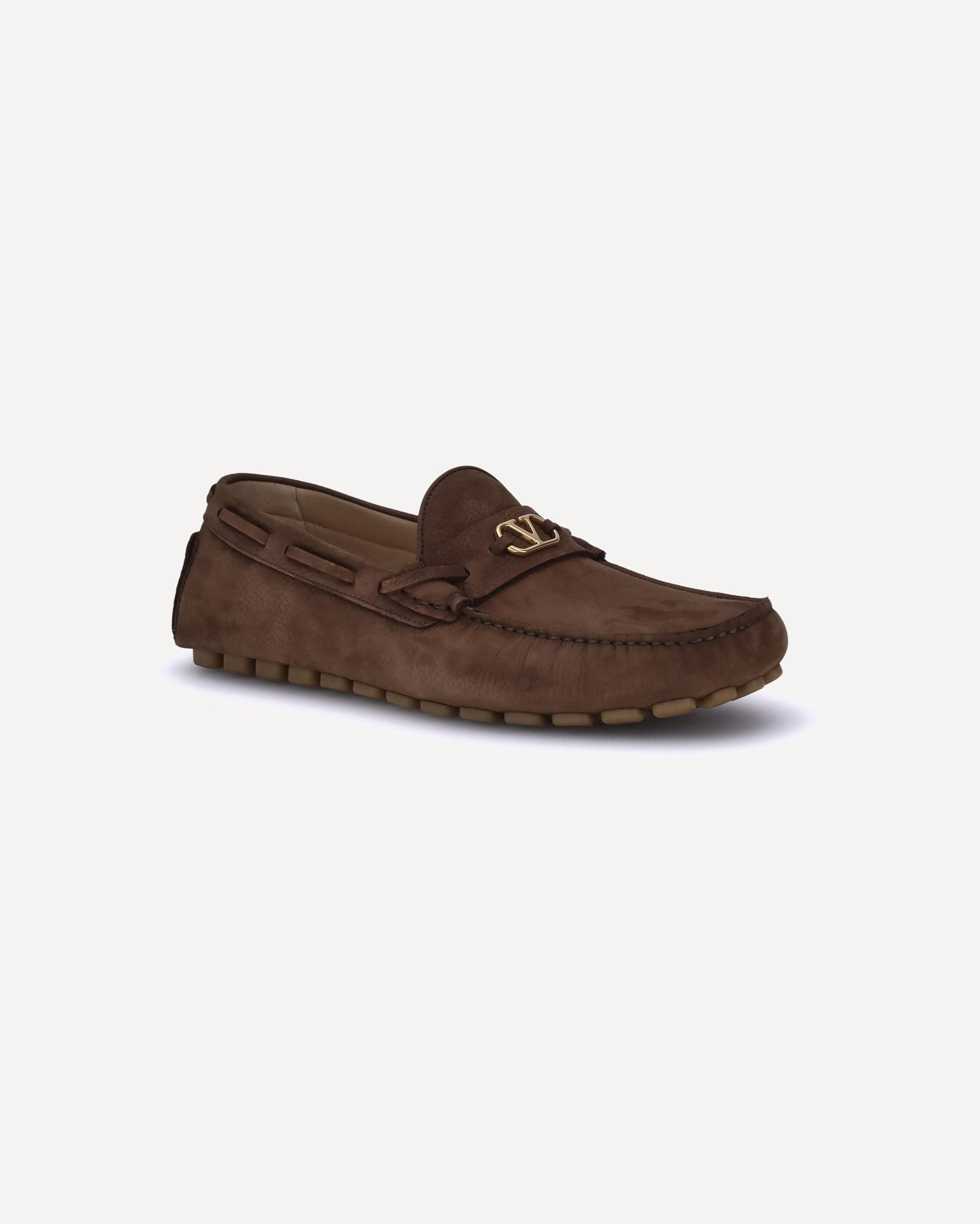 Valentino Garavani's Fastaway Driver Loafers made of soft suede leather have a practical and essential slip-on design. The model is embellished by the three-dimensional plaque with the iconic VLogo applied on the front, which gives a distinctive and elegant touch. The notched rubber sole ensures grip and comfort, while the insole is personalized with the brand's logo. Perfect for a refined and casual style, ideal for any casual-chic occasion.