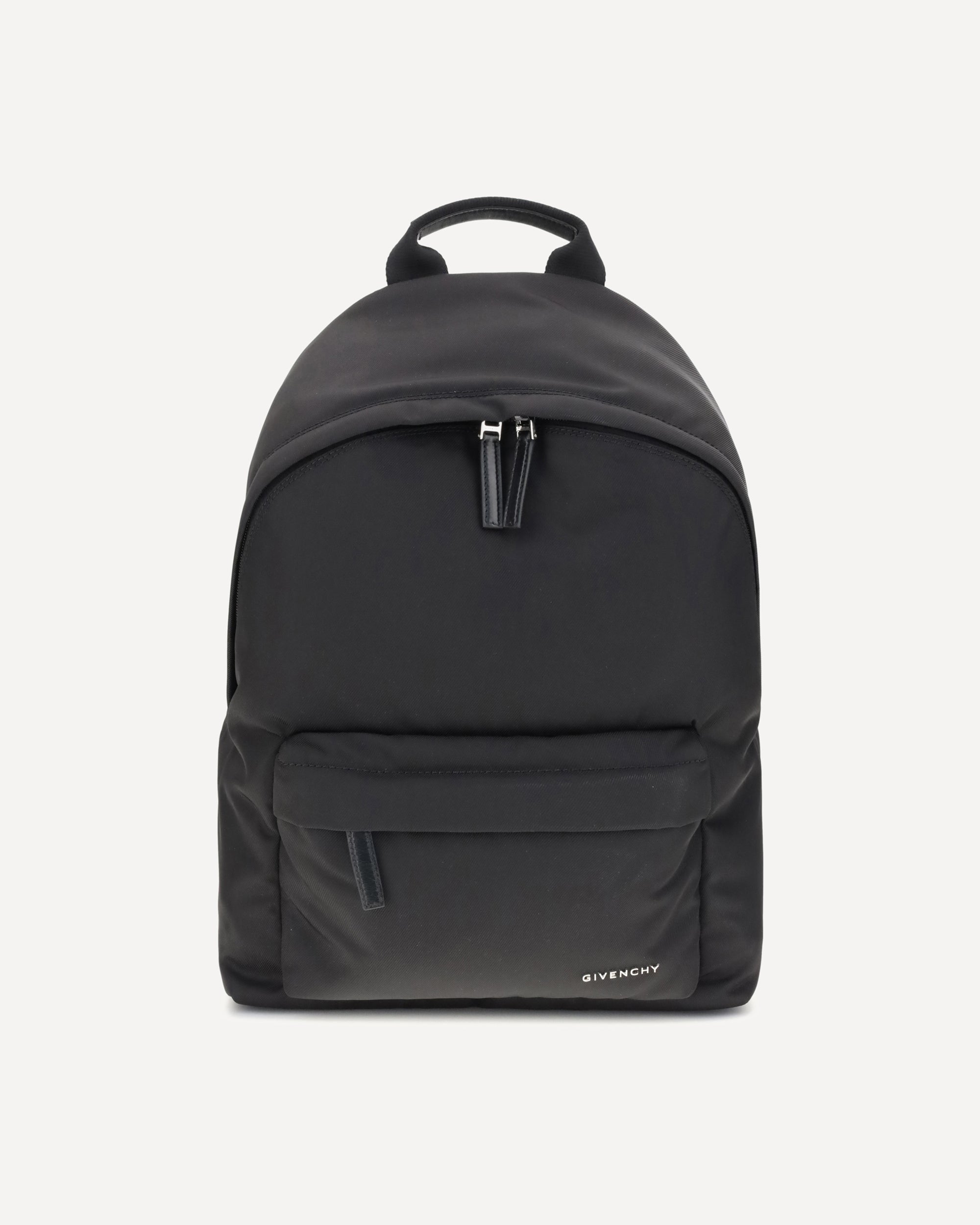 Givenchy's Essential U canvas Backpack combines practicality and modern style. Featuring a double-zip closure with leather pull tabs, it features the GIVENCHY signature in metal on the front for a distinctive touch. Comfortable padded and adjustable shoulder straps provide comfort, while a front zippered pocket and an interior flat pocket offer functional space to better organize items.