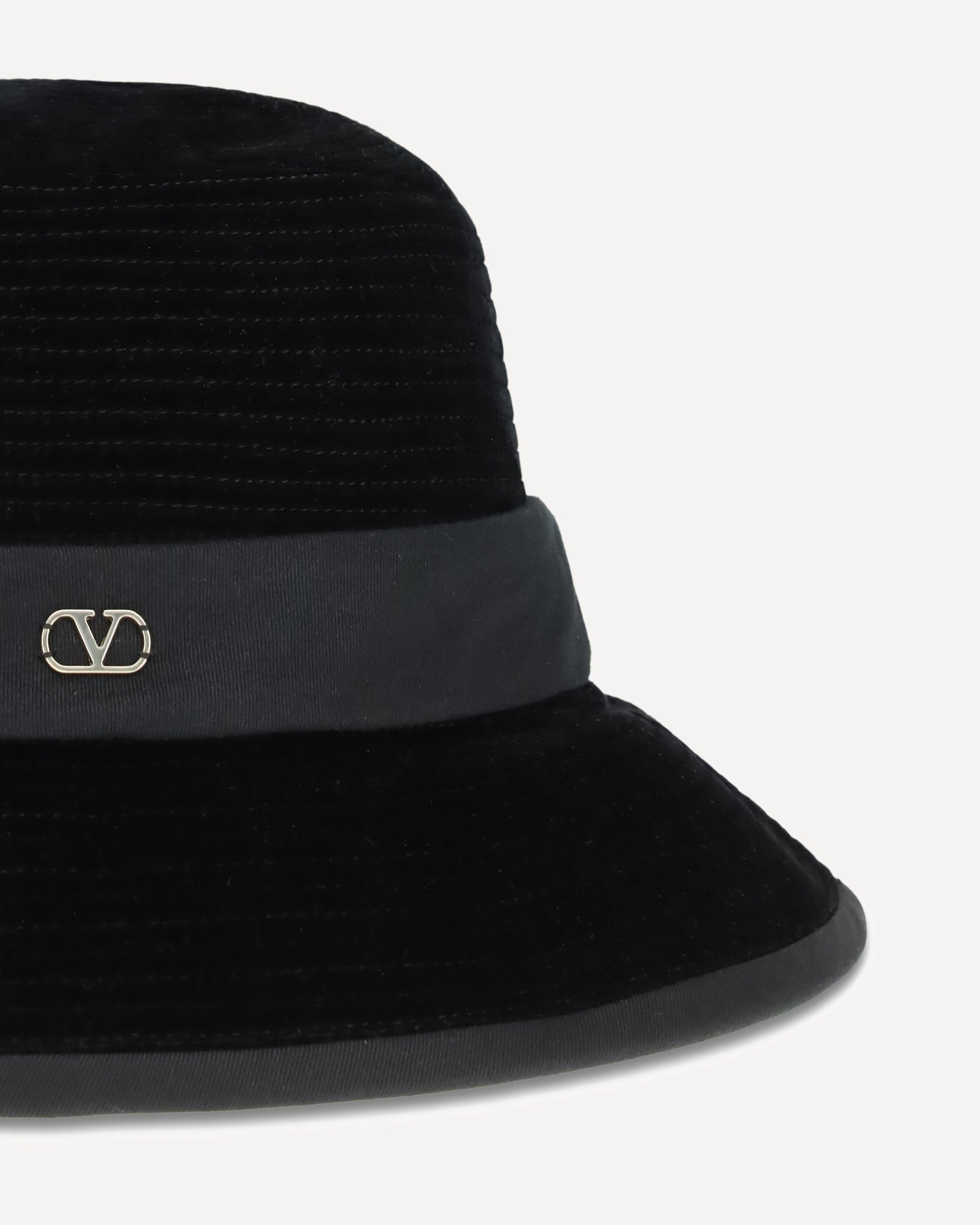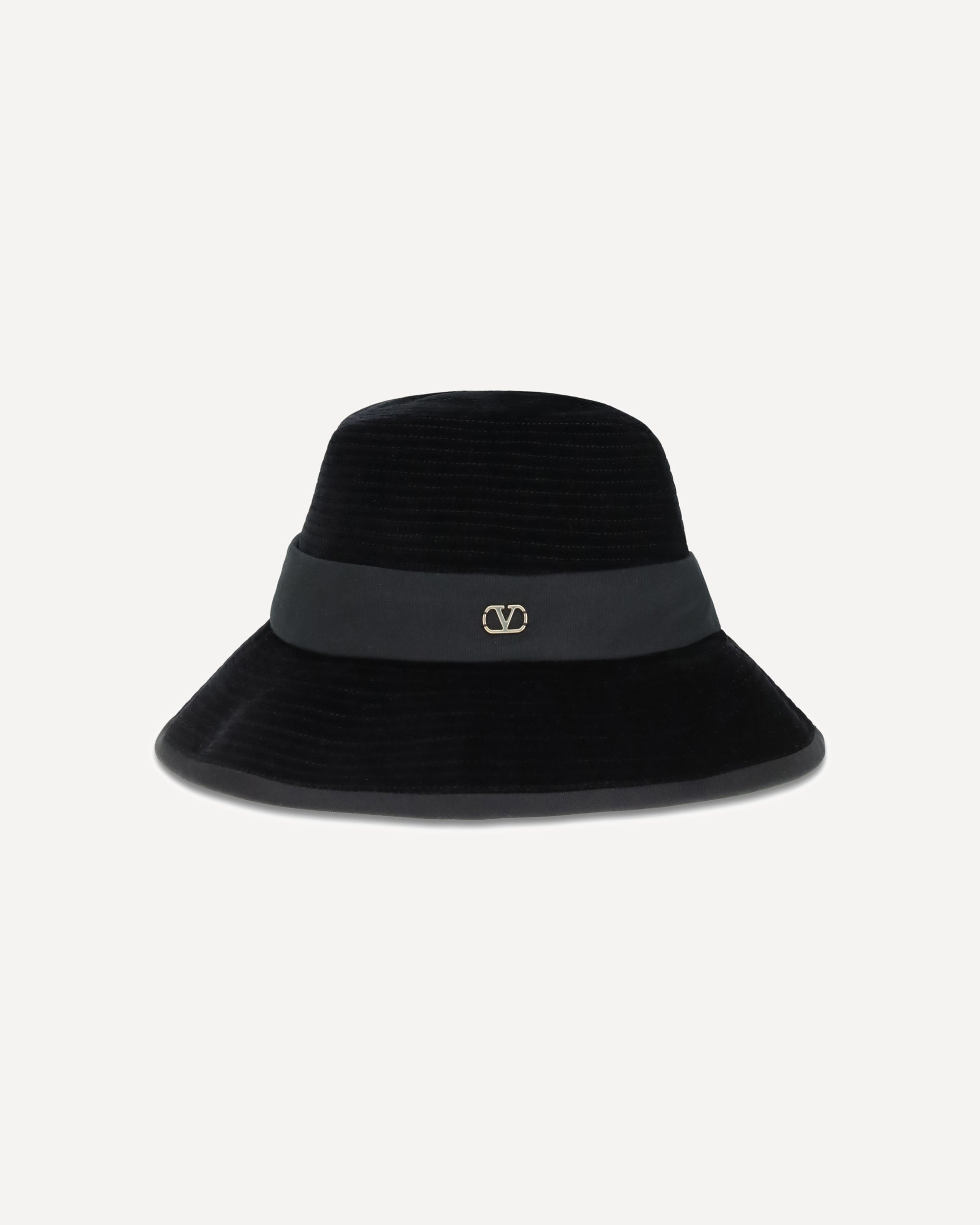 VLogo Fedora Hat by Valentino is made of cotton and embellished with an elegant velvet strap. The front features the Signature VLogo metal detail with an antiqued brass finish for an iconic and sophisticated touch.