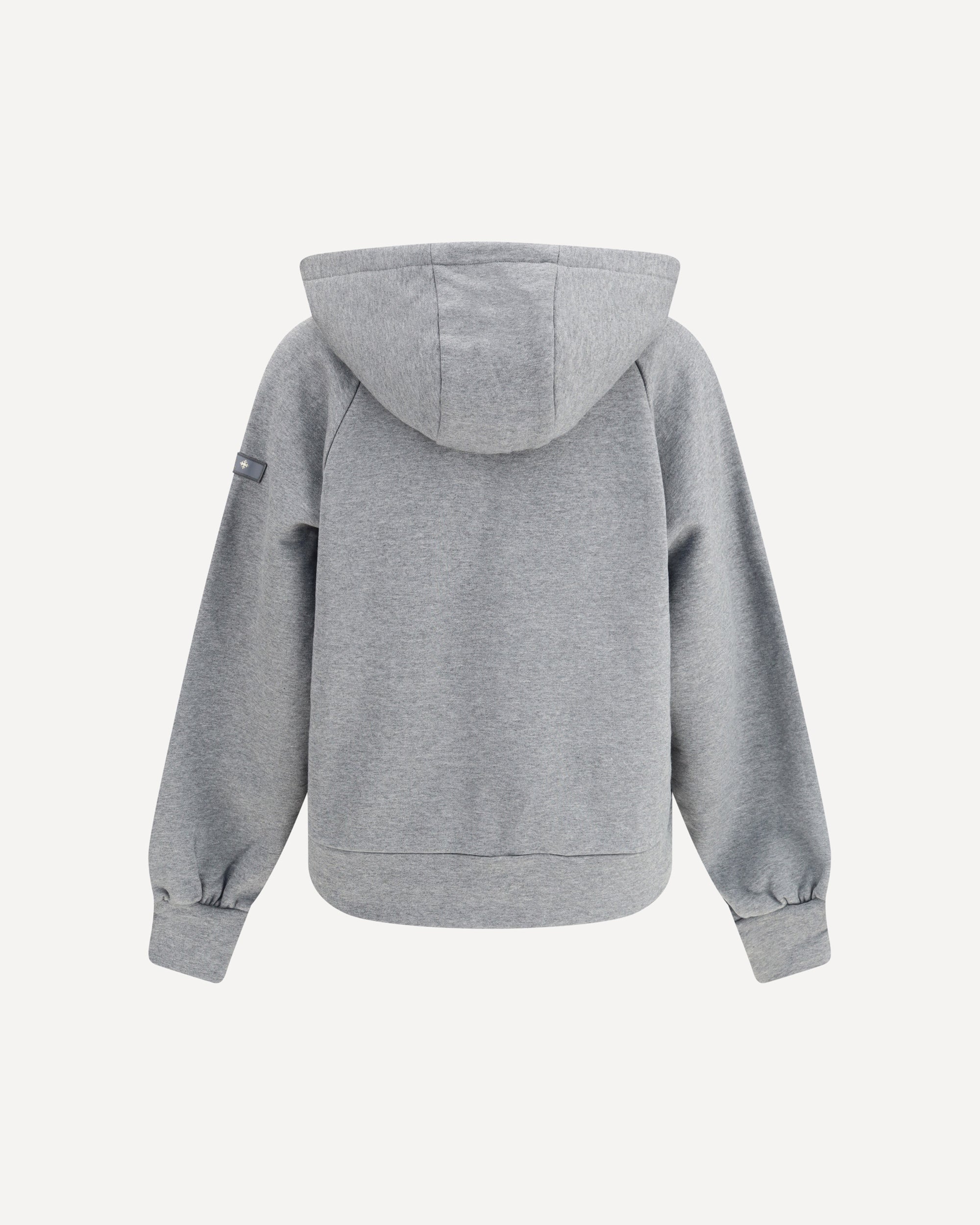 The Filipendula Hoodie by Tatras blends softness and structure in effortless balance. The raglan sleeves follow movement freely, while the high collar and sculpted hood create an elegant, dimensional profile. Concealed zip pockets and gathered cuffs add a dynamic touch to a piece designed to express comfort with refined style.