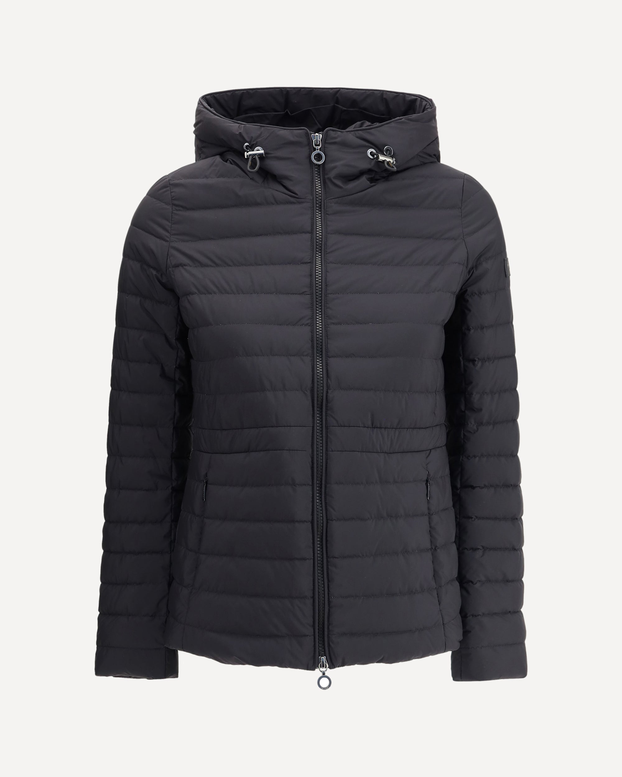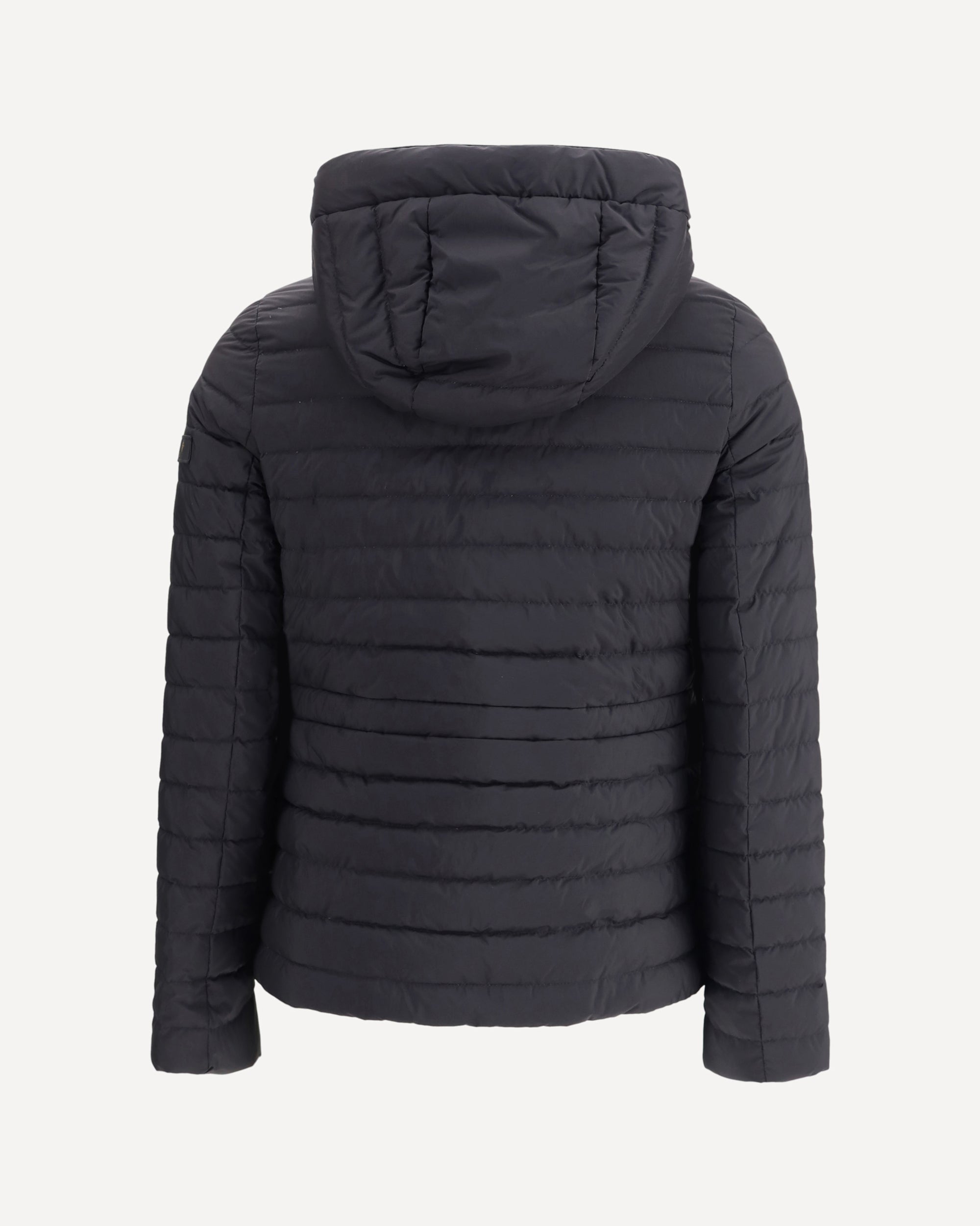 The Haav Down Jacket by Tatras is a quilted, padded design designed to combine functionality and style. Equipped with an adjustable drawstring hood, it features a front zipper closure and two practical zippered welt side pockets, ideal for facing the cold season with comfort and character.