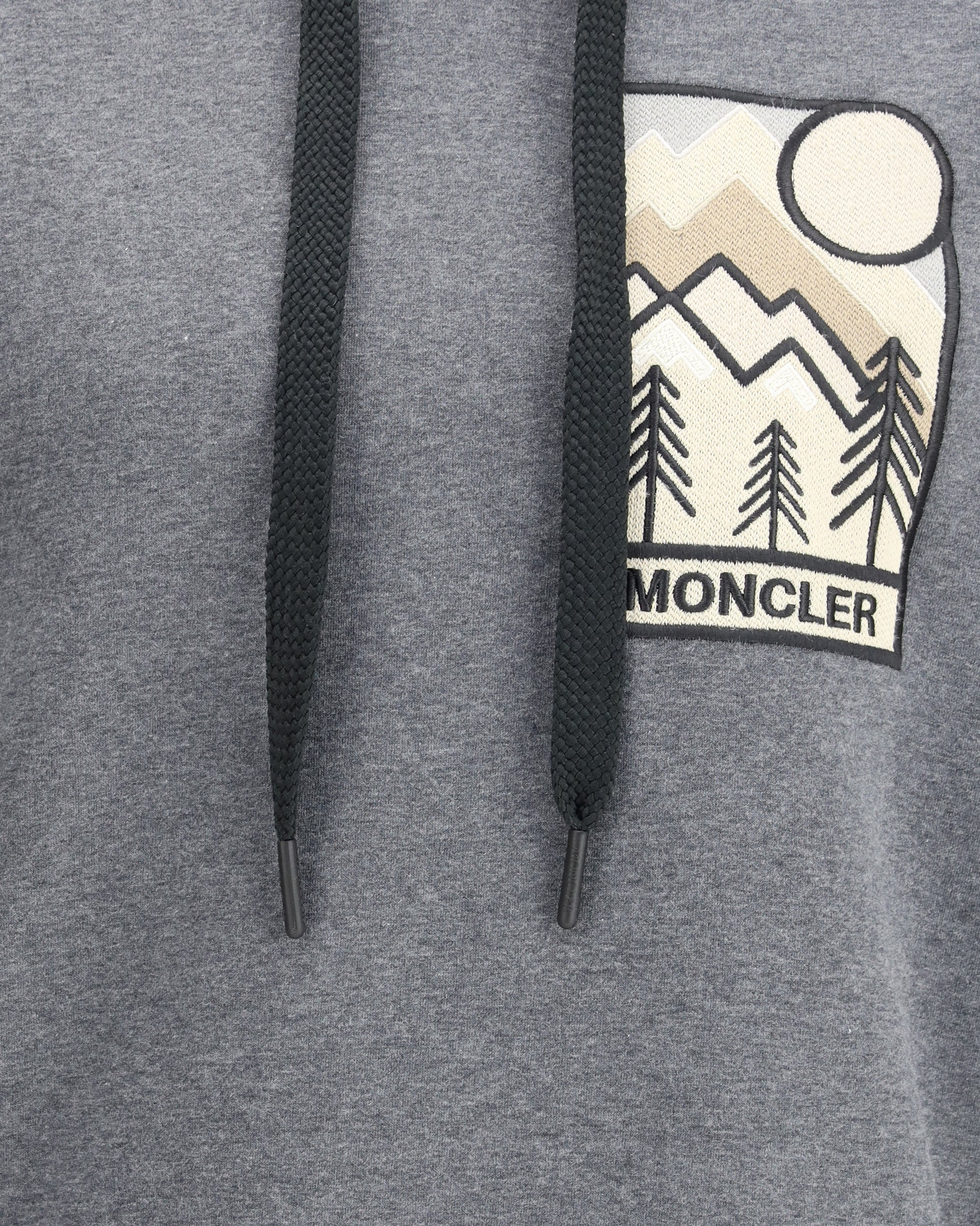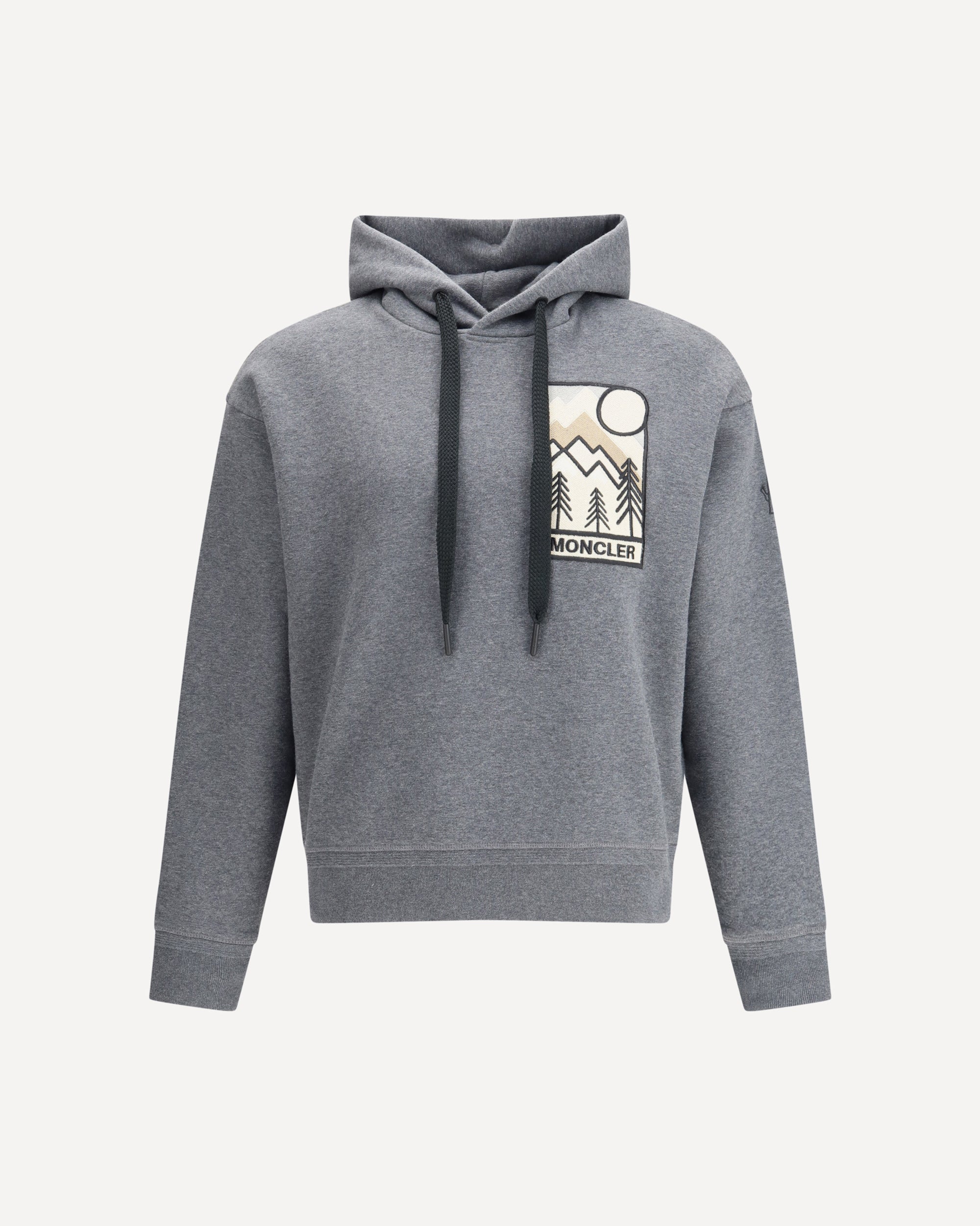 The Moncler Grenoble mountain-logo Hoodie blends functionality with sporty elegance. Crafted from soft cotton-blend fleece, it features a relaxed silhouette, an adjustable hood, and an embroidered logo patch on the chest, evoking the alpine spirit of the Maison.