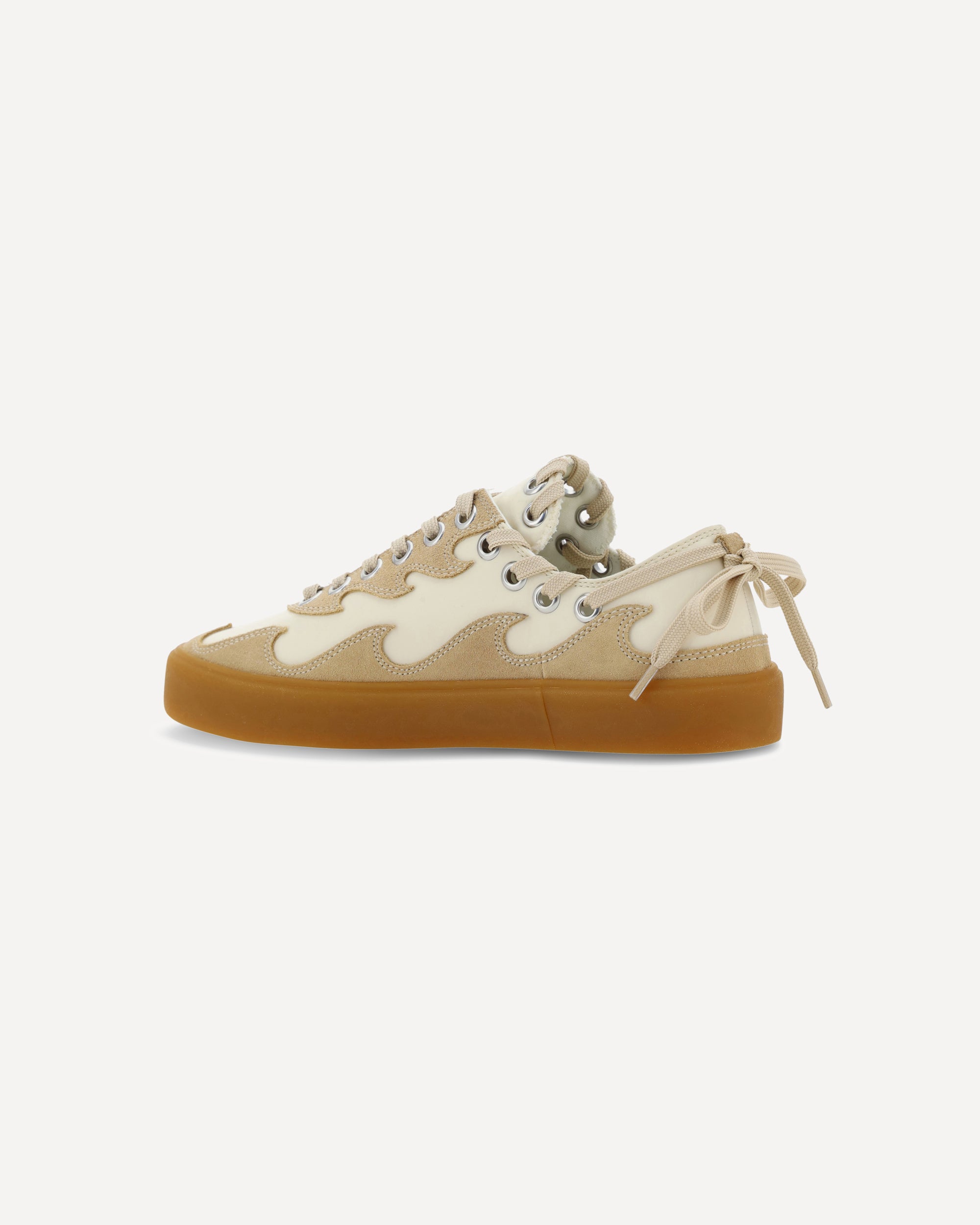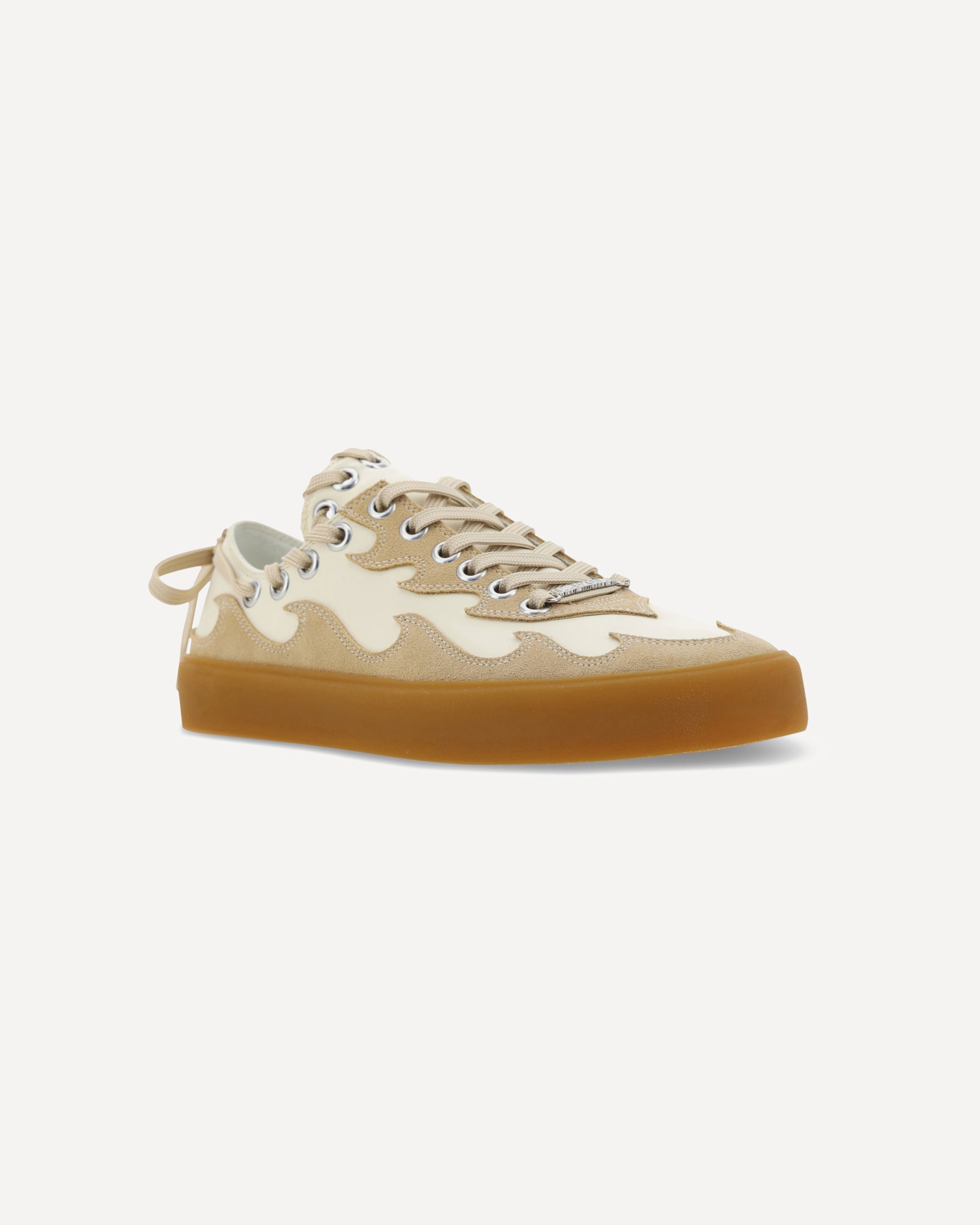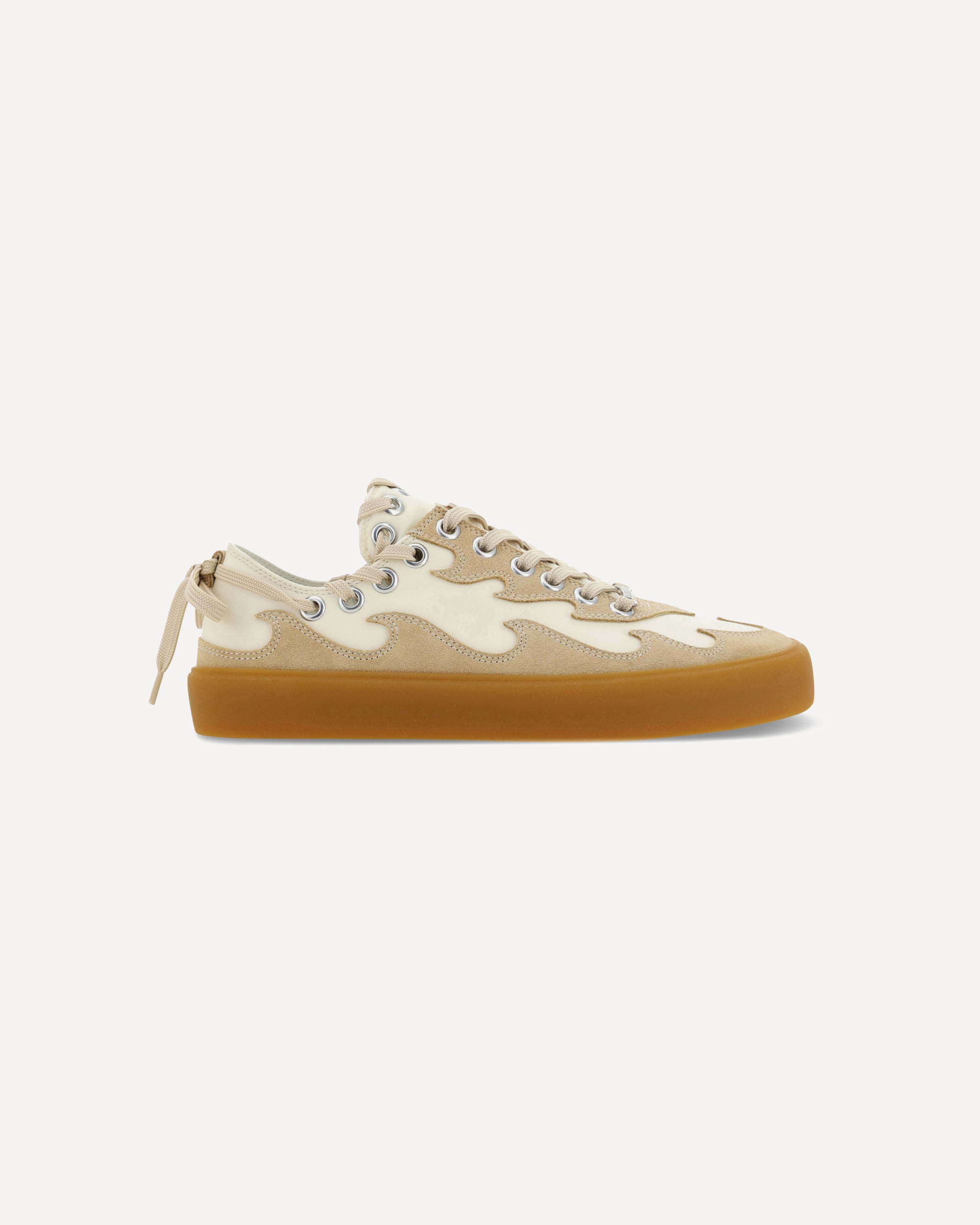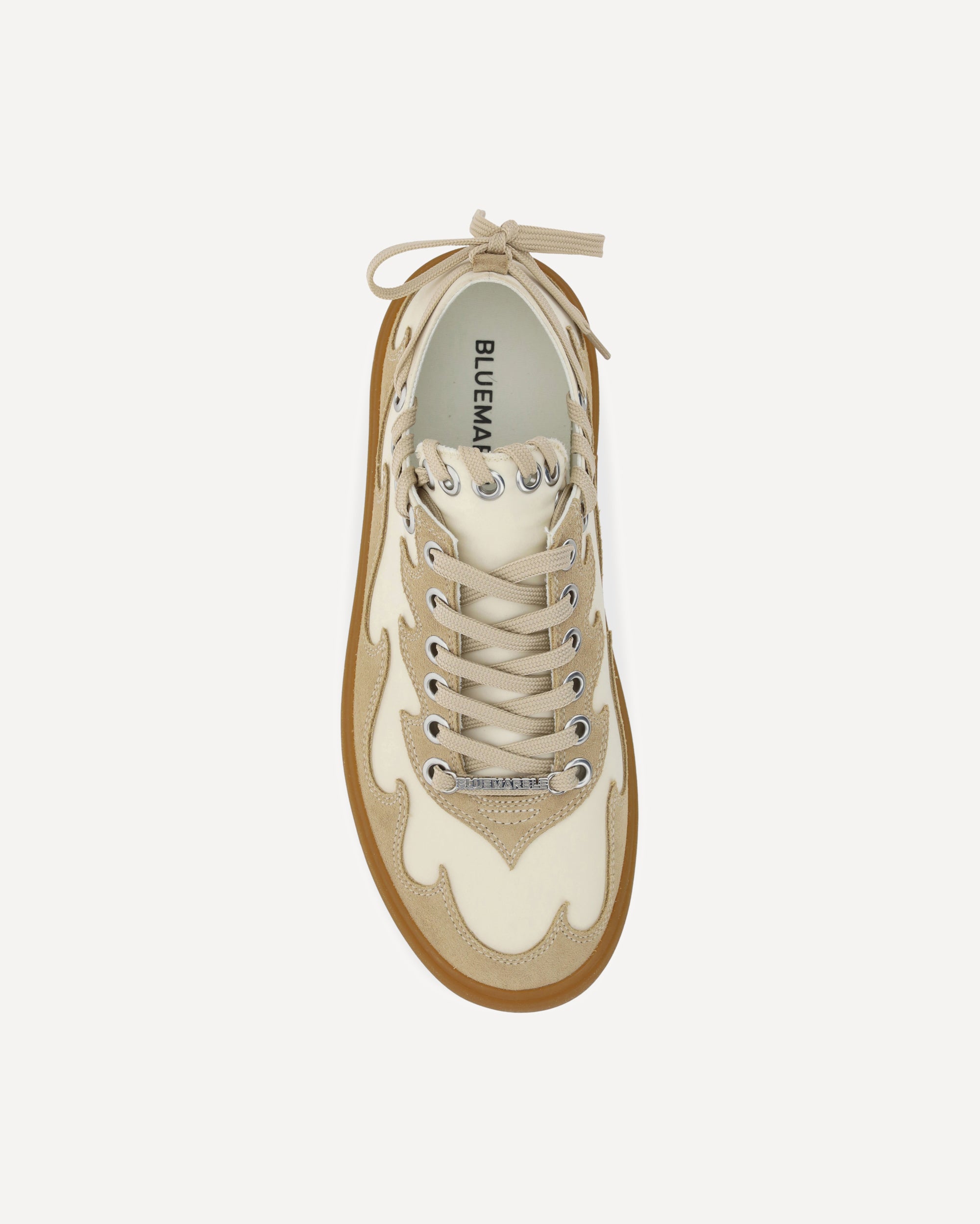 Bluemarble's Kellys leather Sneakers stand out for their bold and contemporary design. Featuring a round toe and a contrasting flat sole, they have a distinctive lace-up closure to tie at the heel for an original touch. The flame-shaped suede inserts add dynamism to the profile, while the contrasting logoed insole completes the look with a distinctive detail.