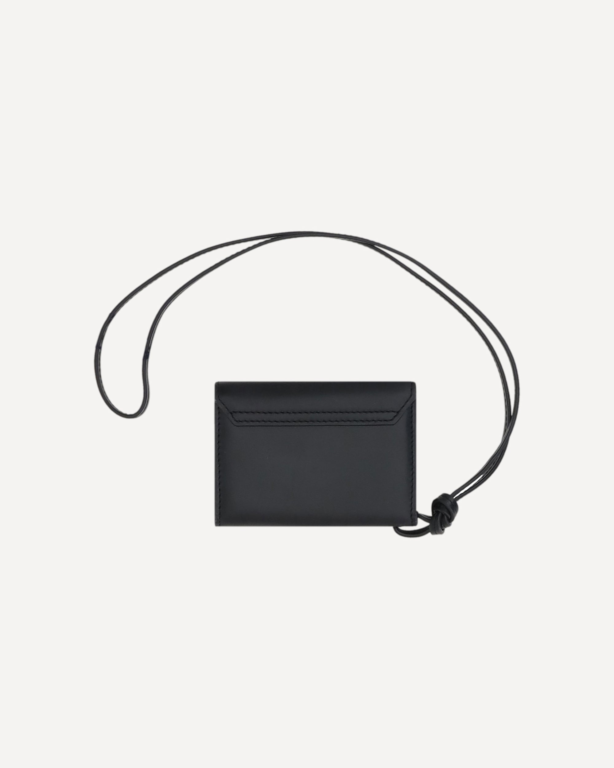The Le Porte Jacquemus leather Wallet is an elegant and practical accessory, ideal for those seeking functionality and style. The bifold model features a flap closure and snap button on the front, while the iconic three-dimensional monogram applied to the flap adds a distinctive and sophisticated touch. The removable shoulder strap offers the possibility to wear it comfortably around the neck as well. Inside, you'll find a card slot, a zippered coin slot pocket, and ample space to organize bills and documents.