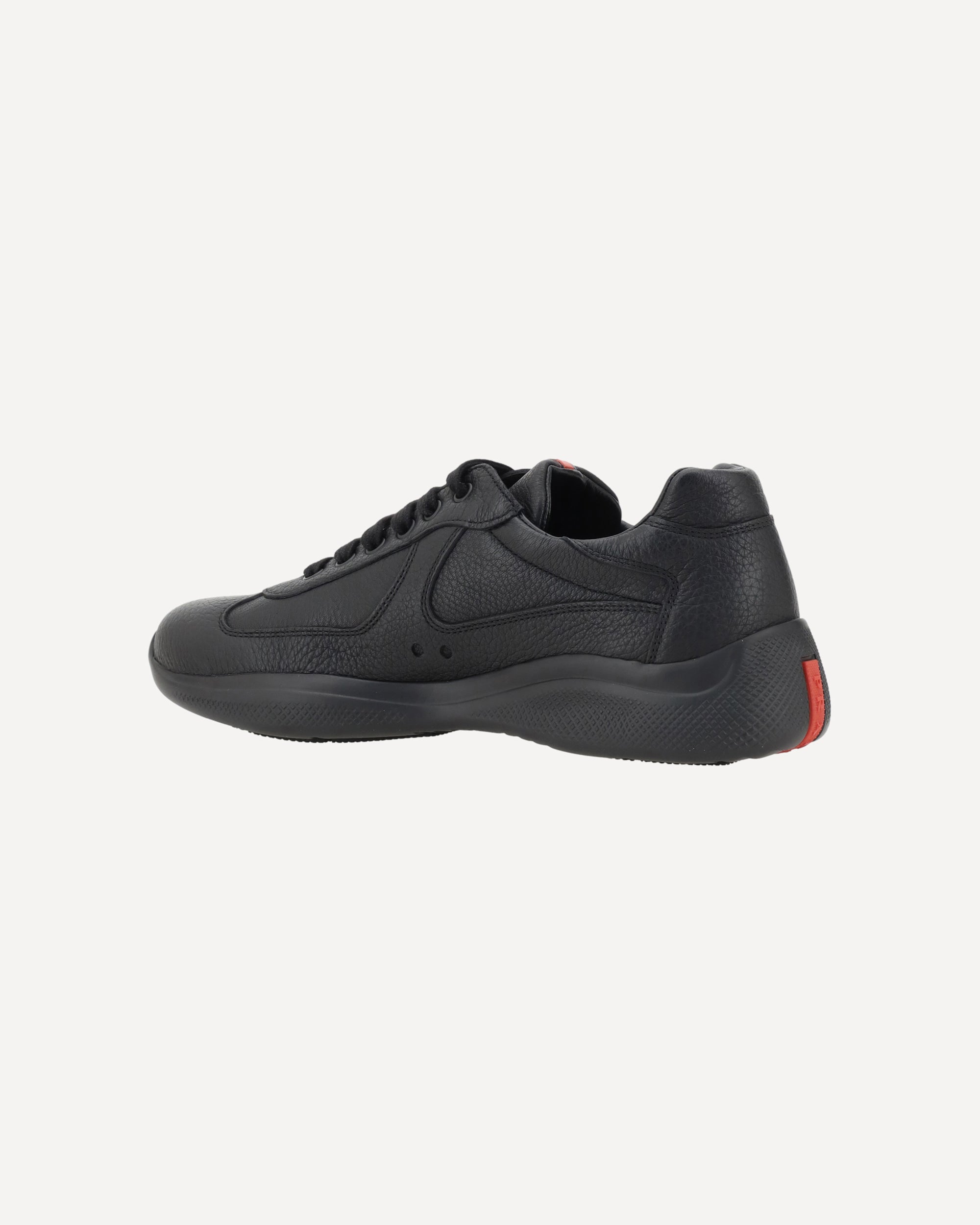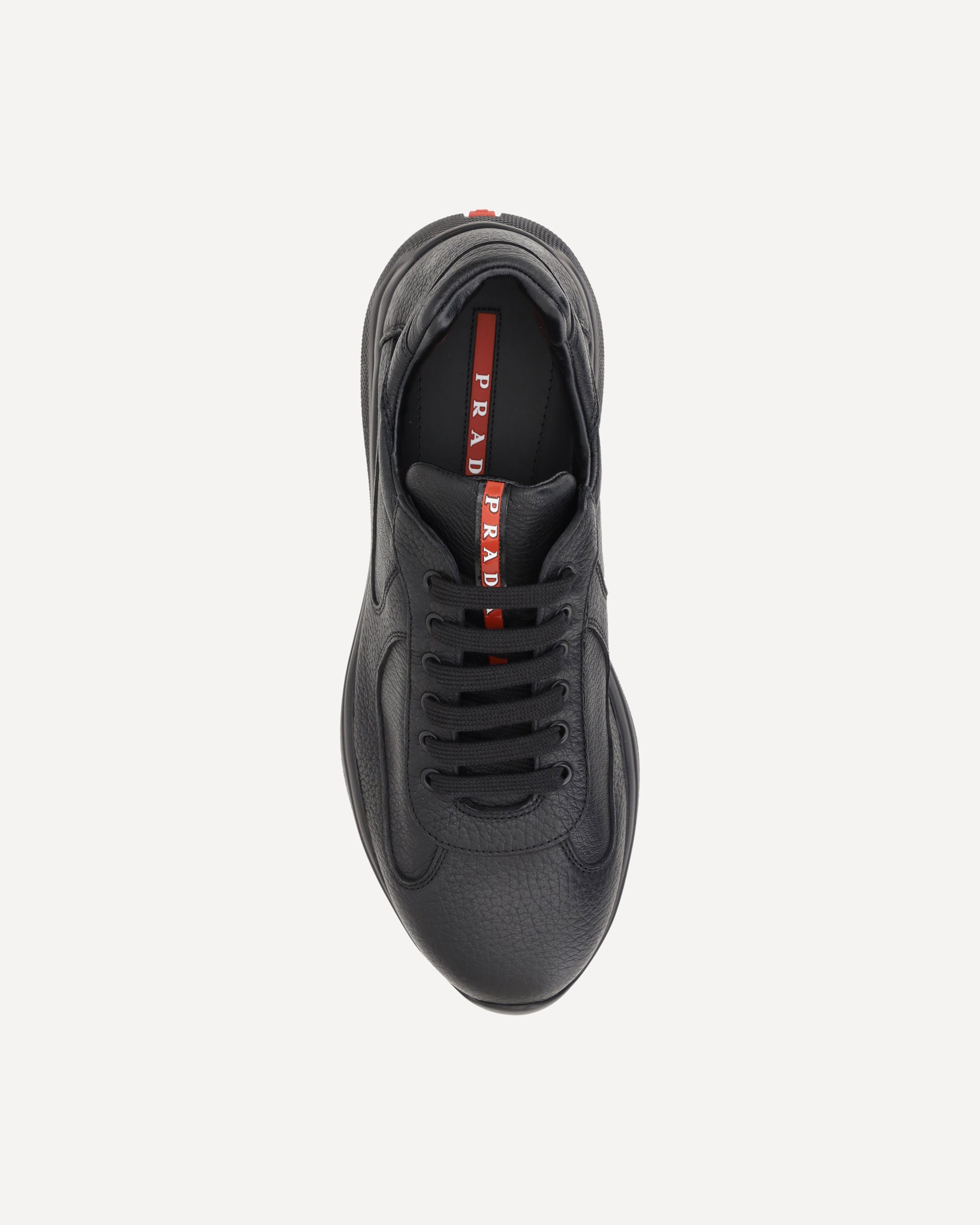 Prada's leather Sneakers feature a sleek and contemporary design, crafted from grained leather that adds a refined texture. The front lace-up closure ensures a secure fit, while the round toe ensures comfort and practicality. The textured sole offers stability and a modern look, while the iconic monogram patch applied on the tongue underscores the brand's authenticity. The branded insole adds another distinctive detail, making these sneakers a perfect balance of luxury and versatility.