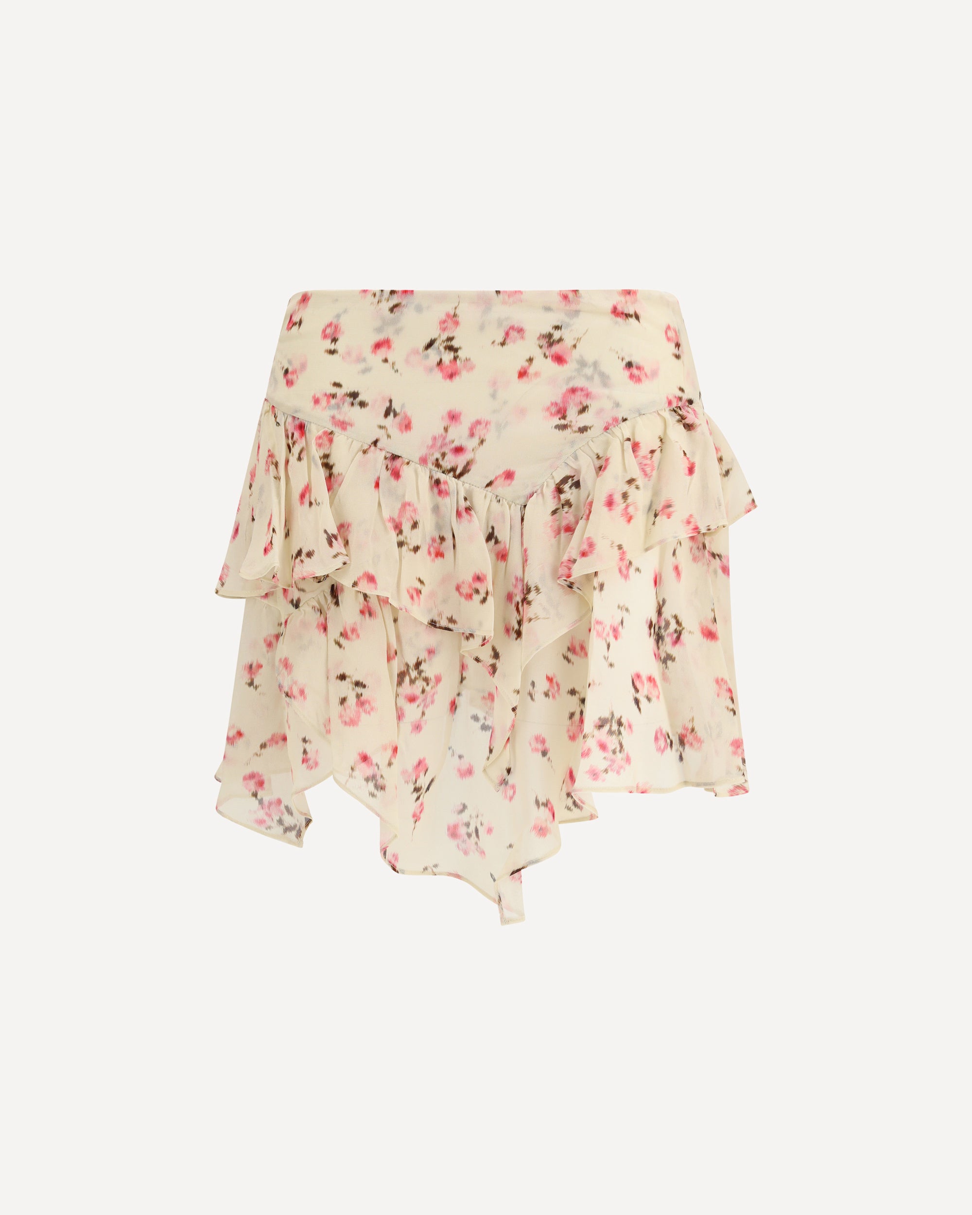 The Lolita flared floral Skirt by Marant Étoile features a feminine and romantic design. It is crafted with a floral print and defined by a flared silhouette that adds fluid movement. The ruffled hem enhances the piece with a soft, playful detail, reflecting the brand’s signature bohemian aesthetic.
