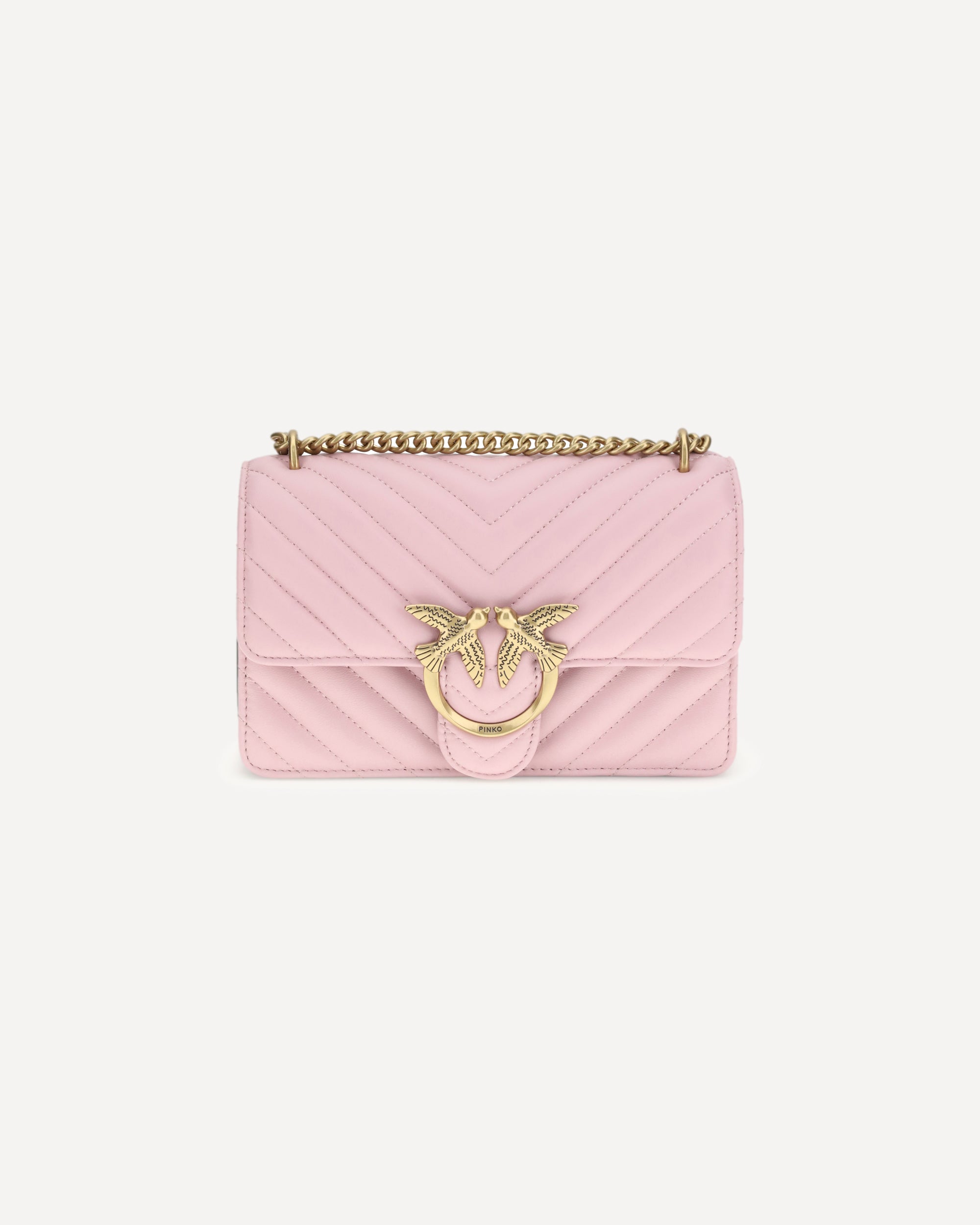 The Mini Love leather Shoulder Bag by Pinko is a perfect mix of elegance and functionality. The front closure with magnetic flap ensures safety and practicality, while the iconic gold-plated Love Birds logo embossed on the front adds a touch of distinctive luxury. The quilted and padded design is not only refined, but also gives a feeling of softness and comfort. The double internal compartment offers enough space to keep everything in order, while the sliding chain shoulder strap allows you to adjust it to your preferred height, making it perfect for any occasion. The internal slip pocket and the tone-on-tone embroidered brand monogram on the back add exclusive details that make this bag a must-have.