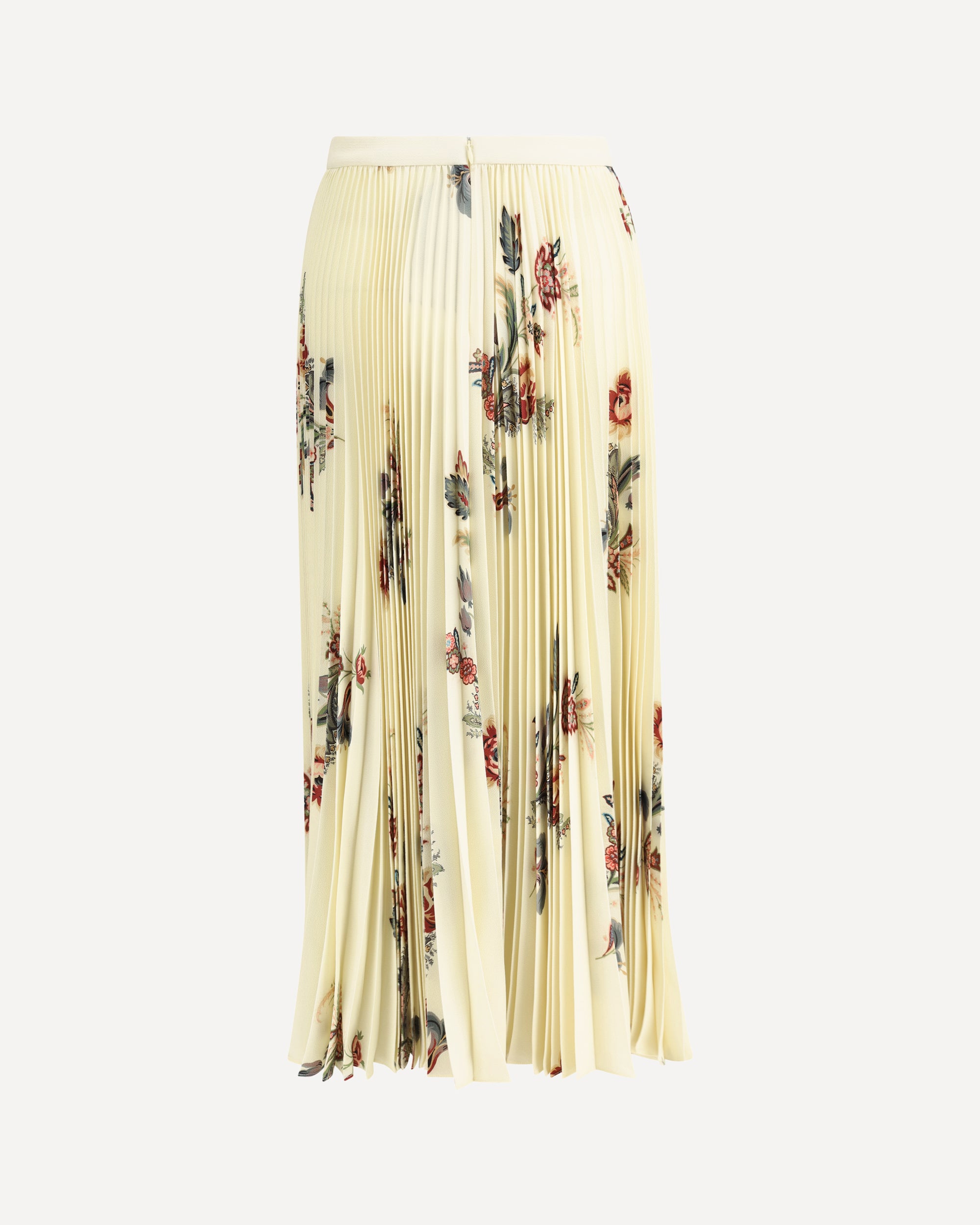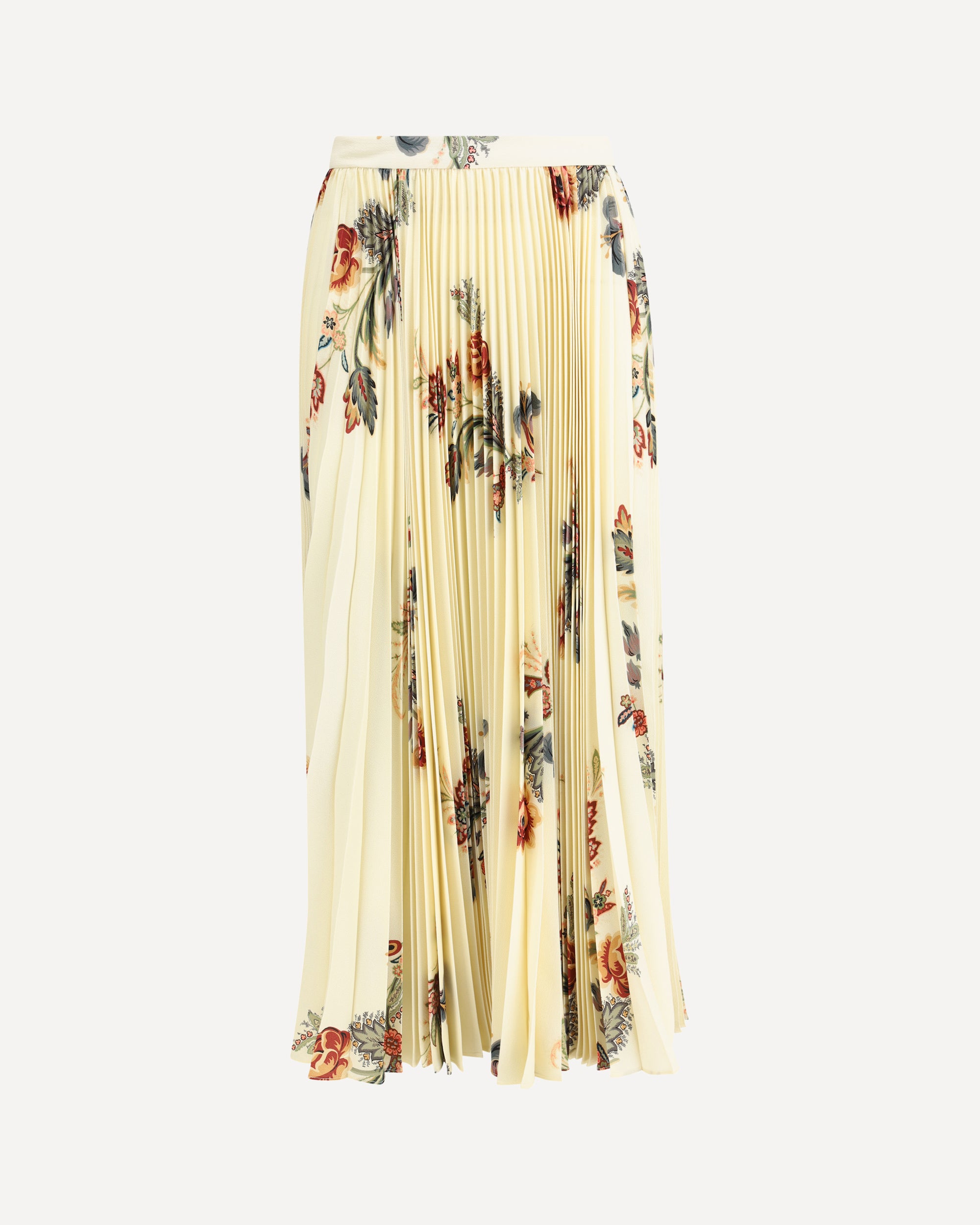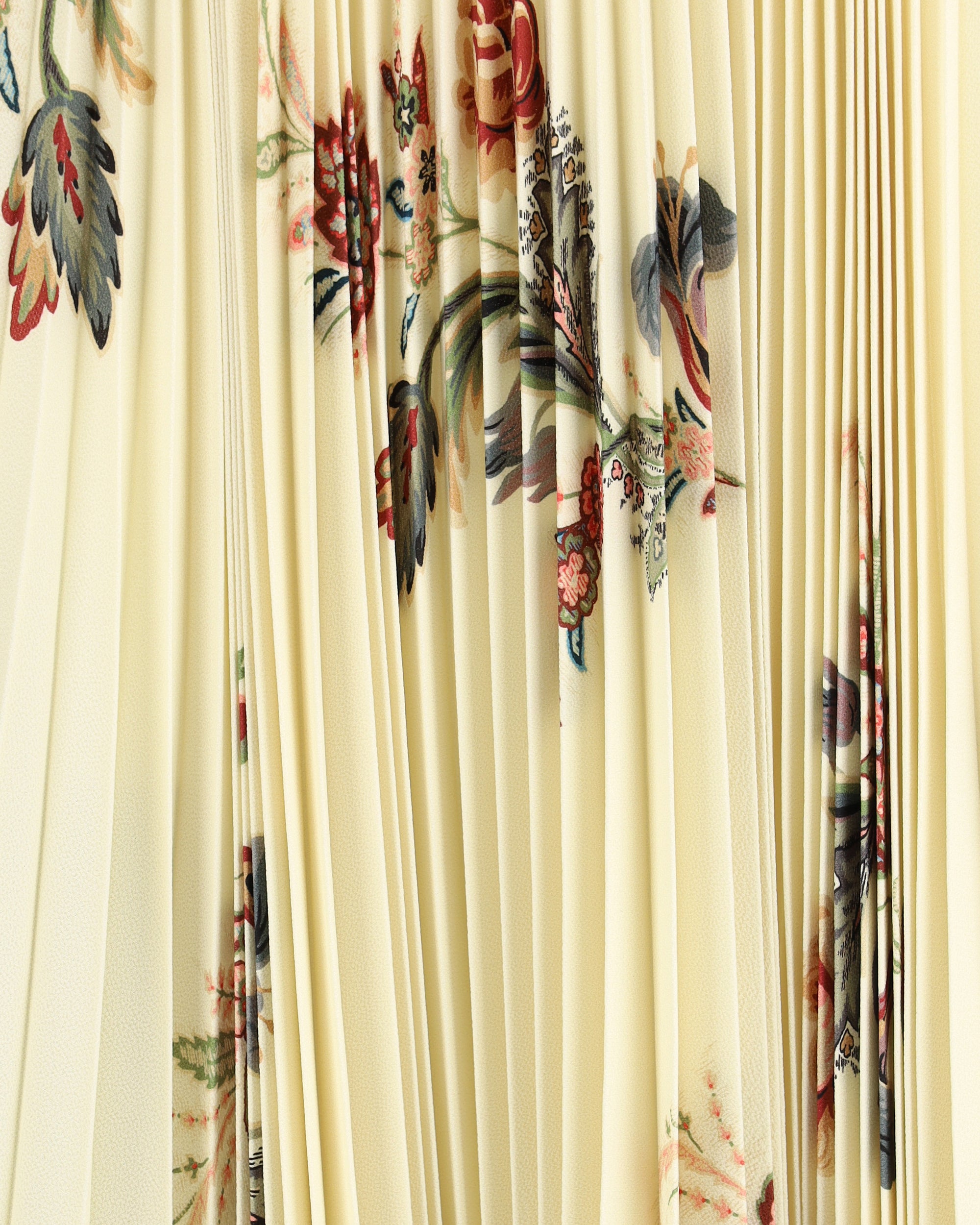 The Etro midi Skirt is made of lightweight sablé fabric and stands out for its pleated design that gives movement and femininity. The surface is embellished with a refined all-over floral print, typical of the brand's romantic aesthetic. High-waisted and with a regular fit, it features a zip closure on the back for a clean and impeccable line.