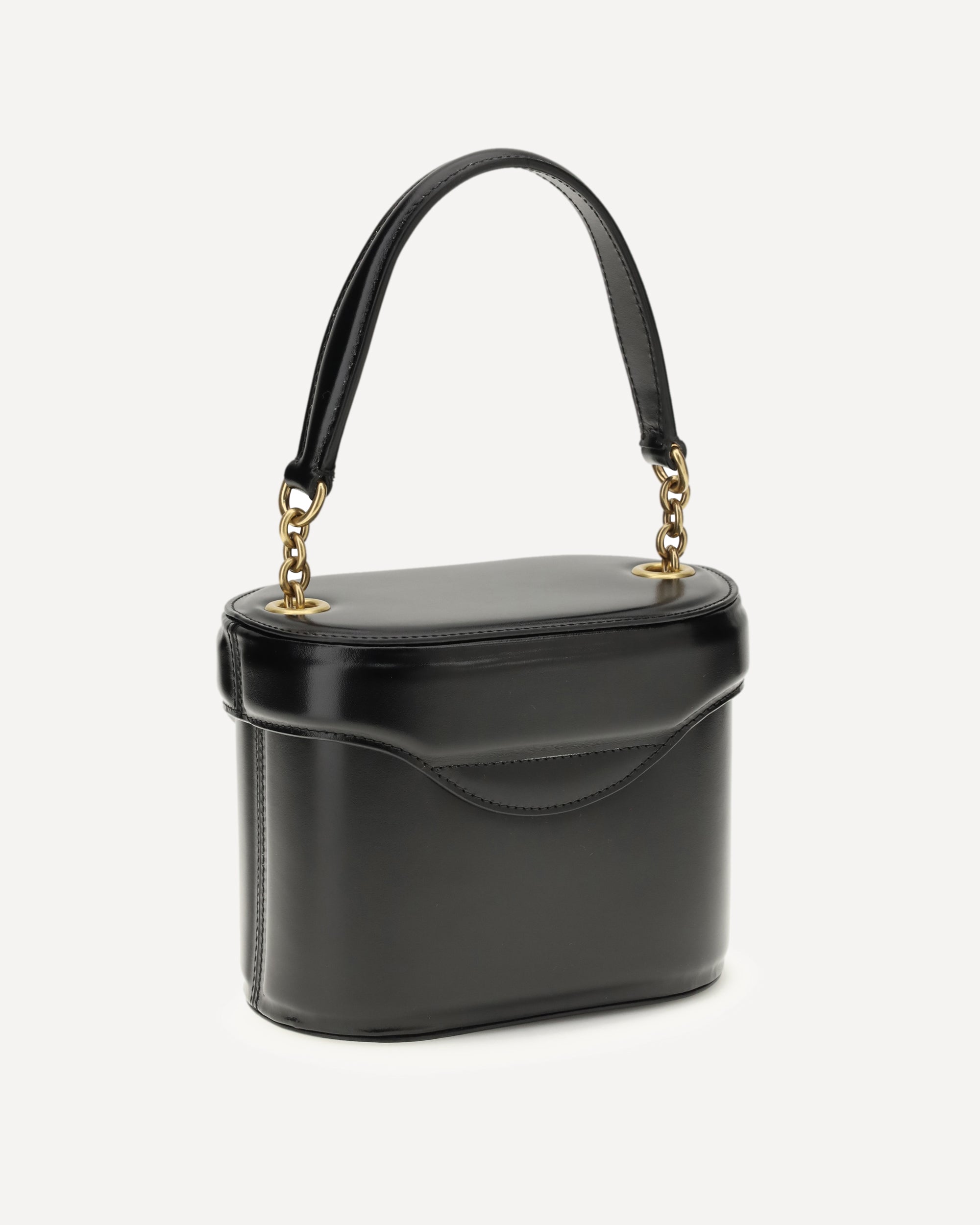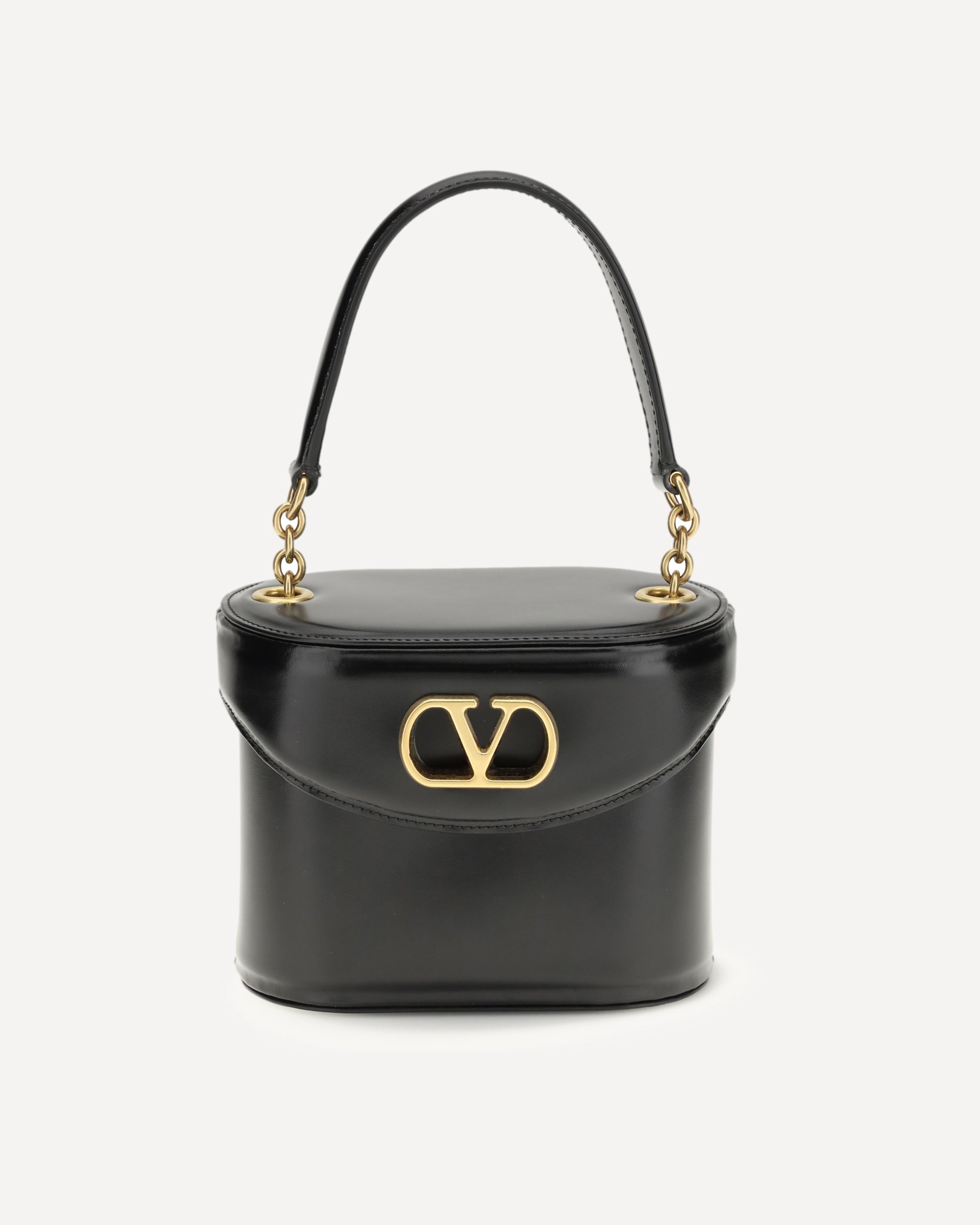 The Vanity Bucket Bag by Valentino Garavani is made of shiny calfskin and embellished with the iconic metallic Signature VLogo. Versatile and sophisticated, it can be carried by hand thanks to the handle or worn crossbody thanks to the removable chain, giving you the option to choose the look you prefer. A stylish and functional accessory perfect for any occasion.