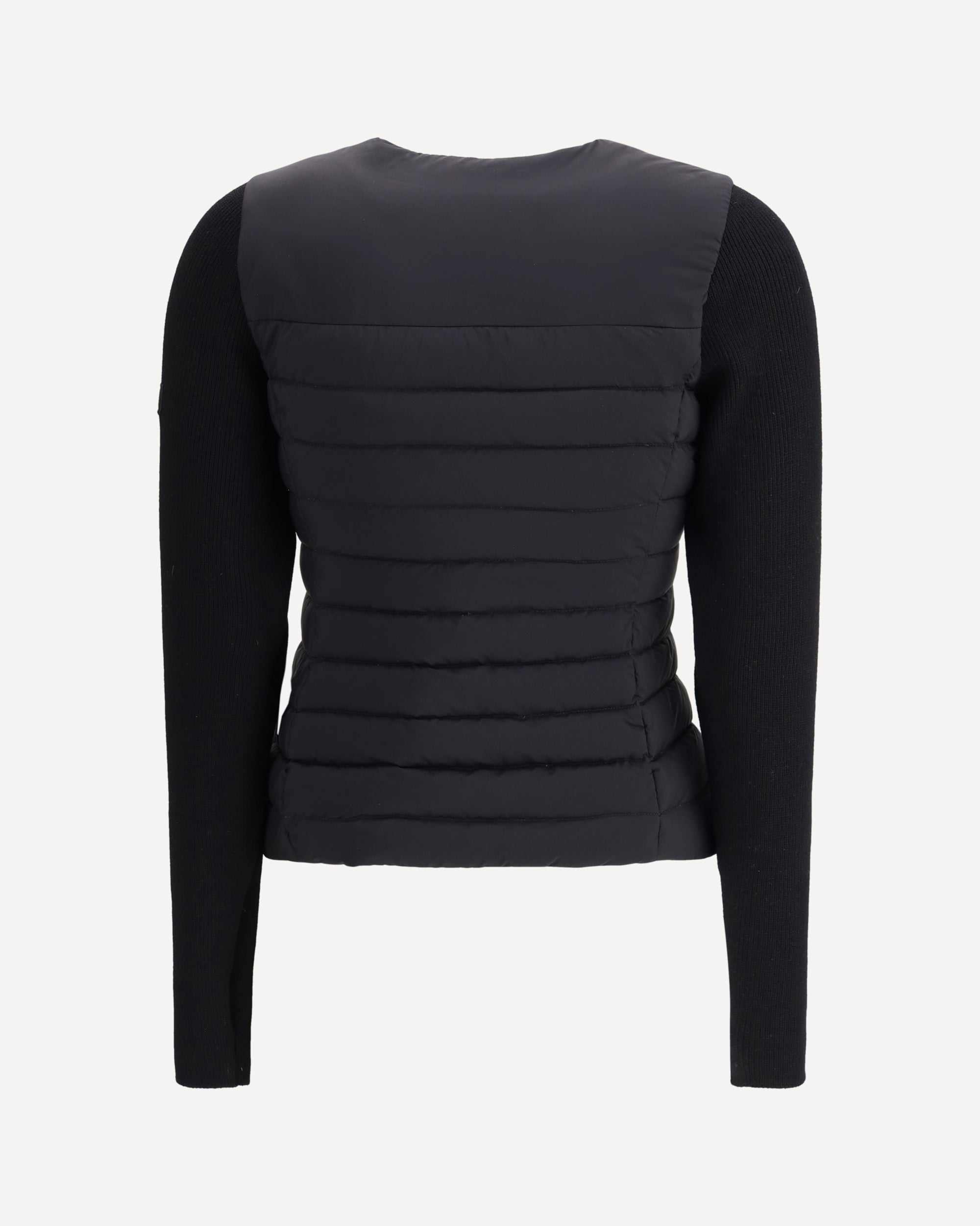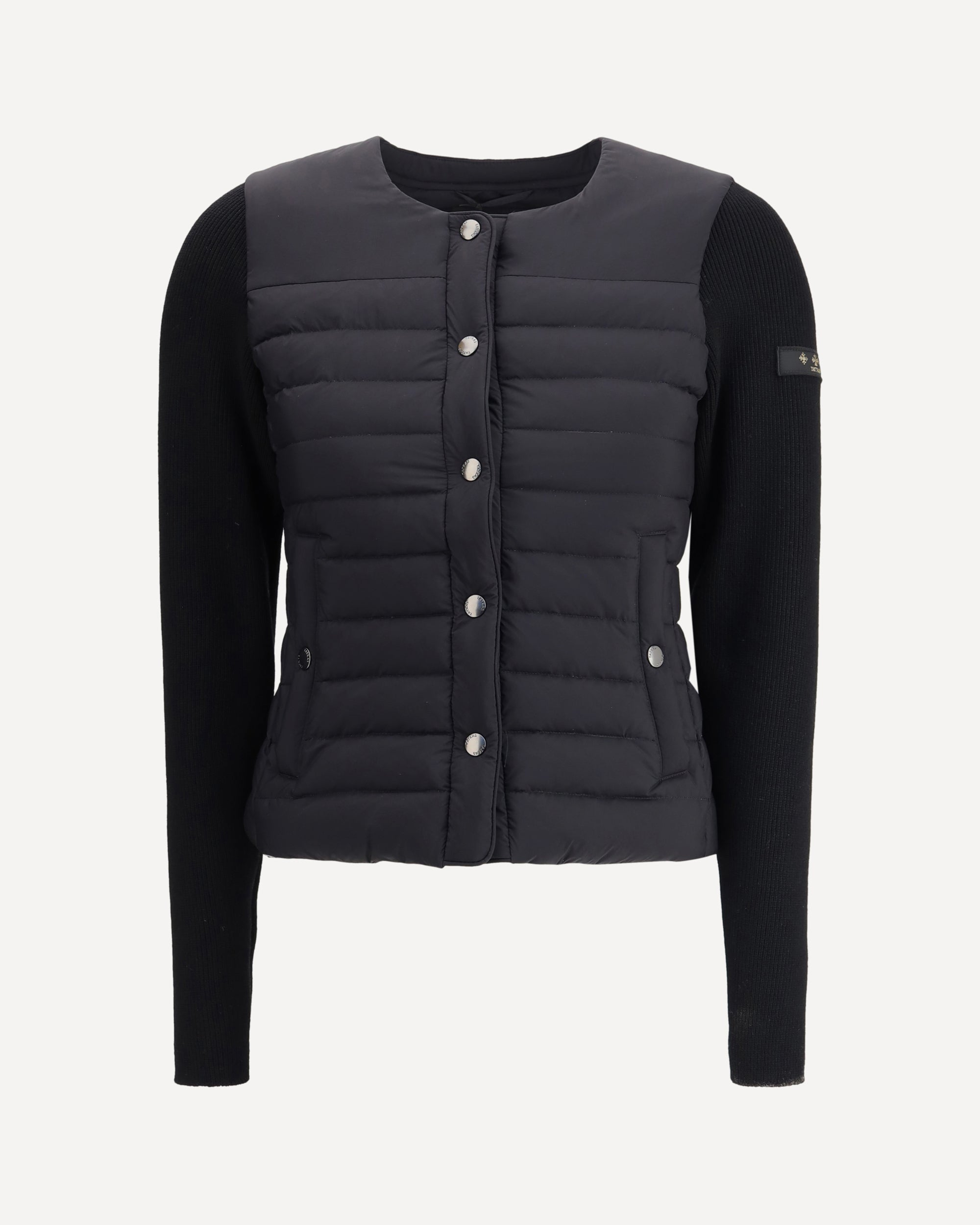 The Nils Down Jacket by Tatras combines urban style and comfort thanks to its quilted and padded design with wool sleeves. It features an essential crew neck, front snap button closure and two side welt pockets for a modern and refined look.