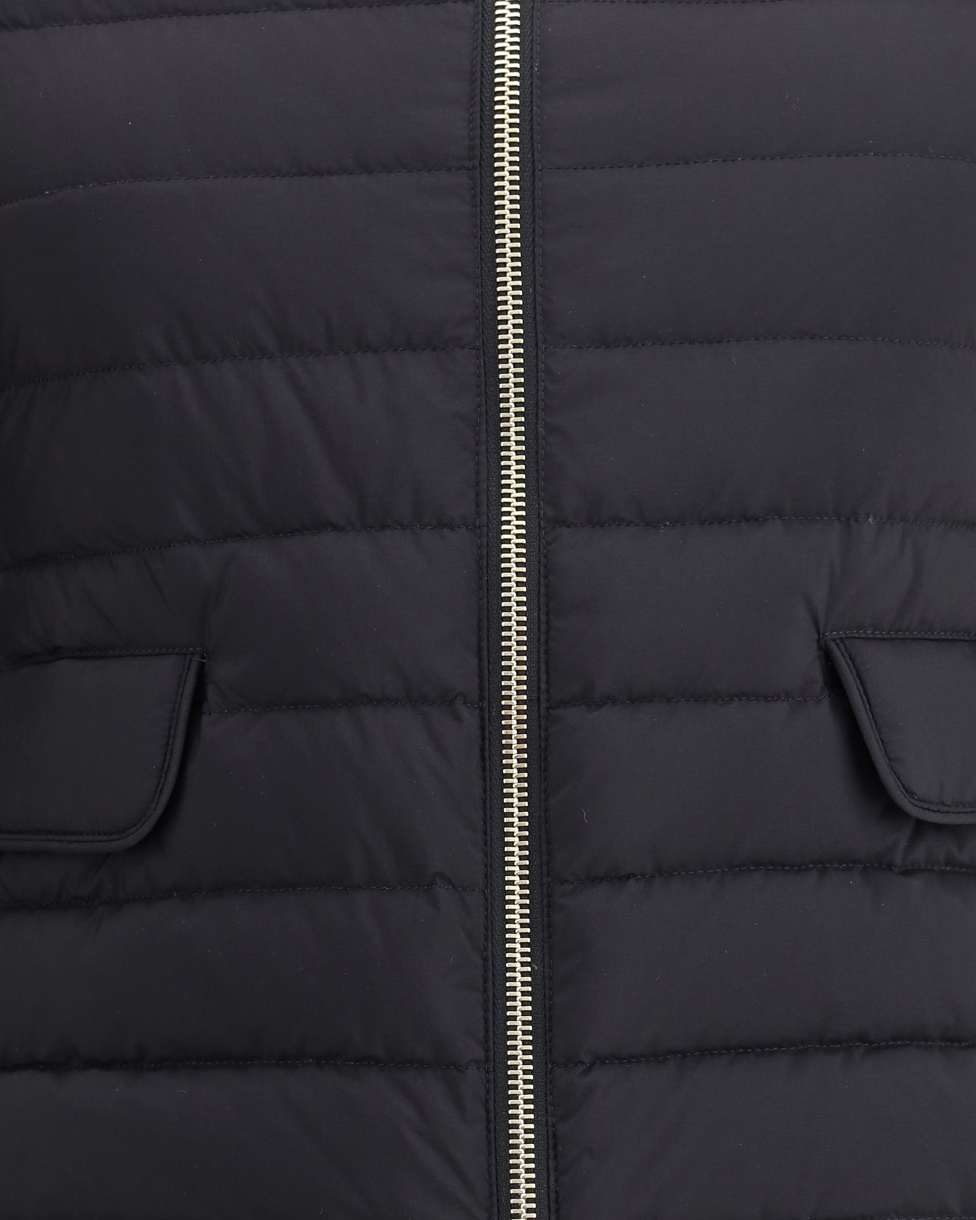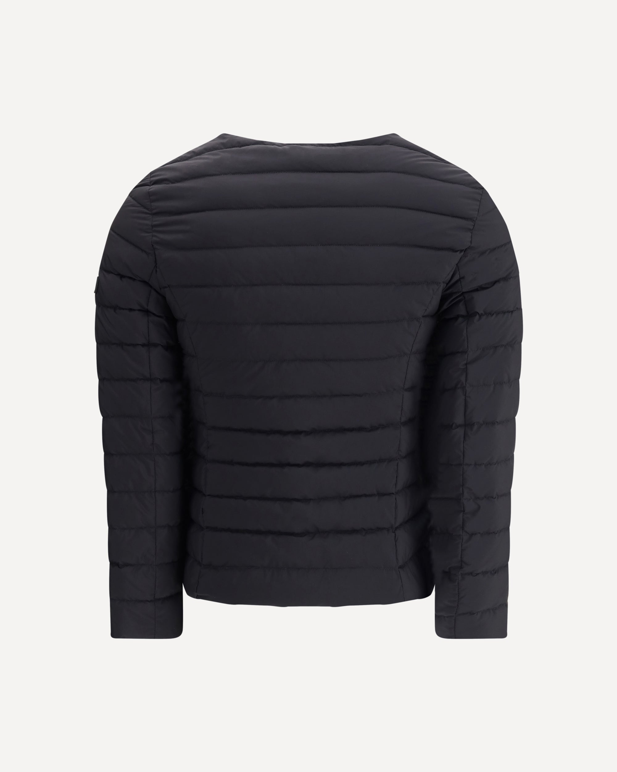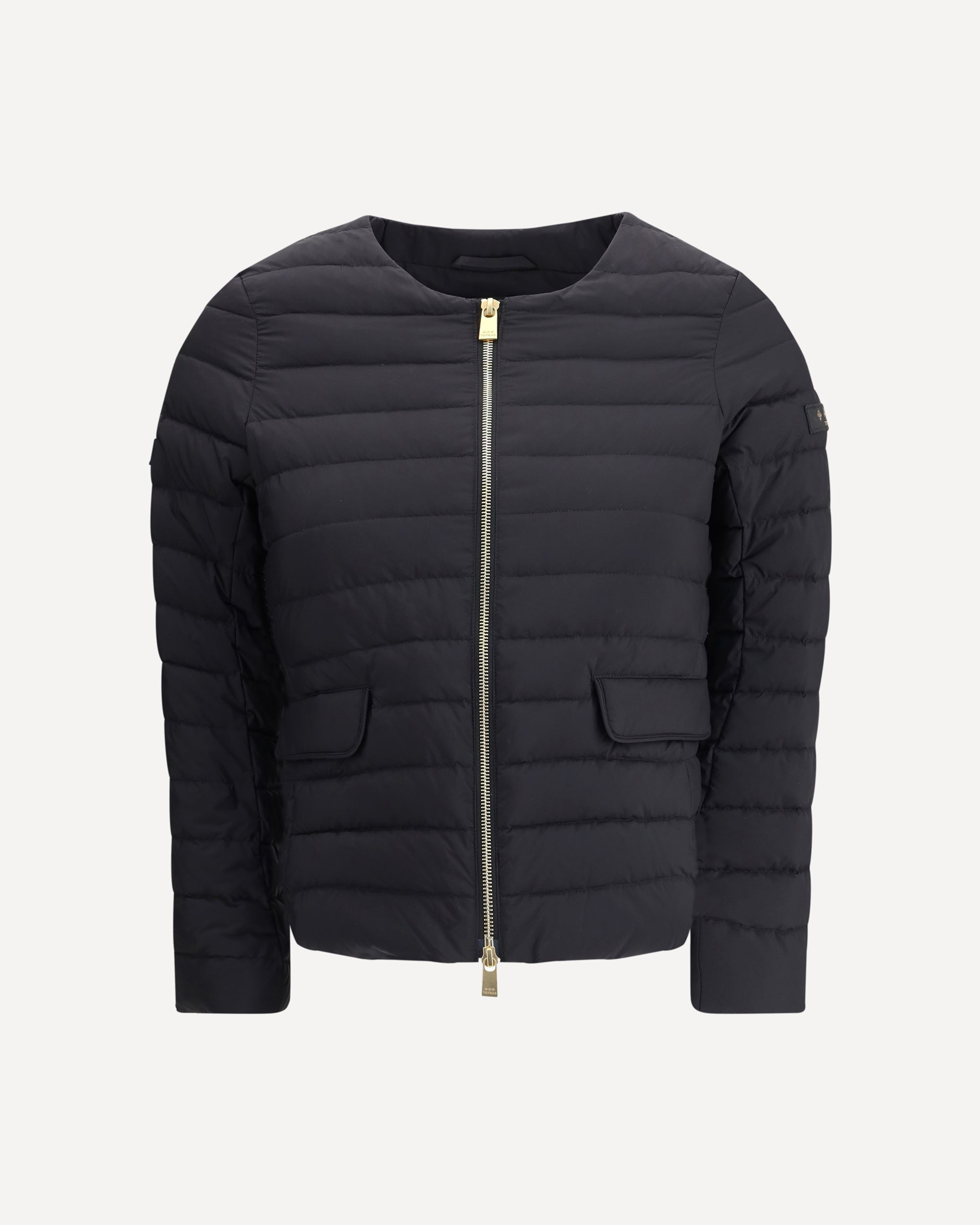 The Noko lightweight Down Jacket by Tatras features a quilted, padded design with a front zipper closure and two welt flap pockets. The slouchy pattern enhances the silhouette, offering a feminine and functional style.
