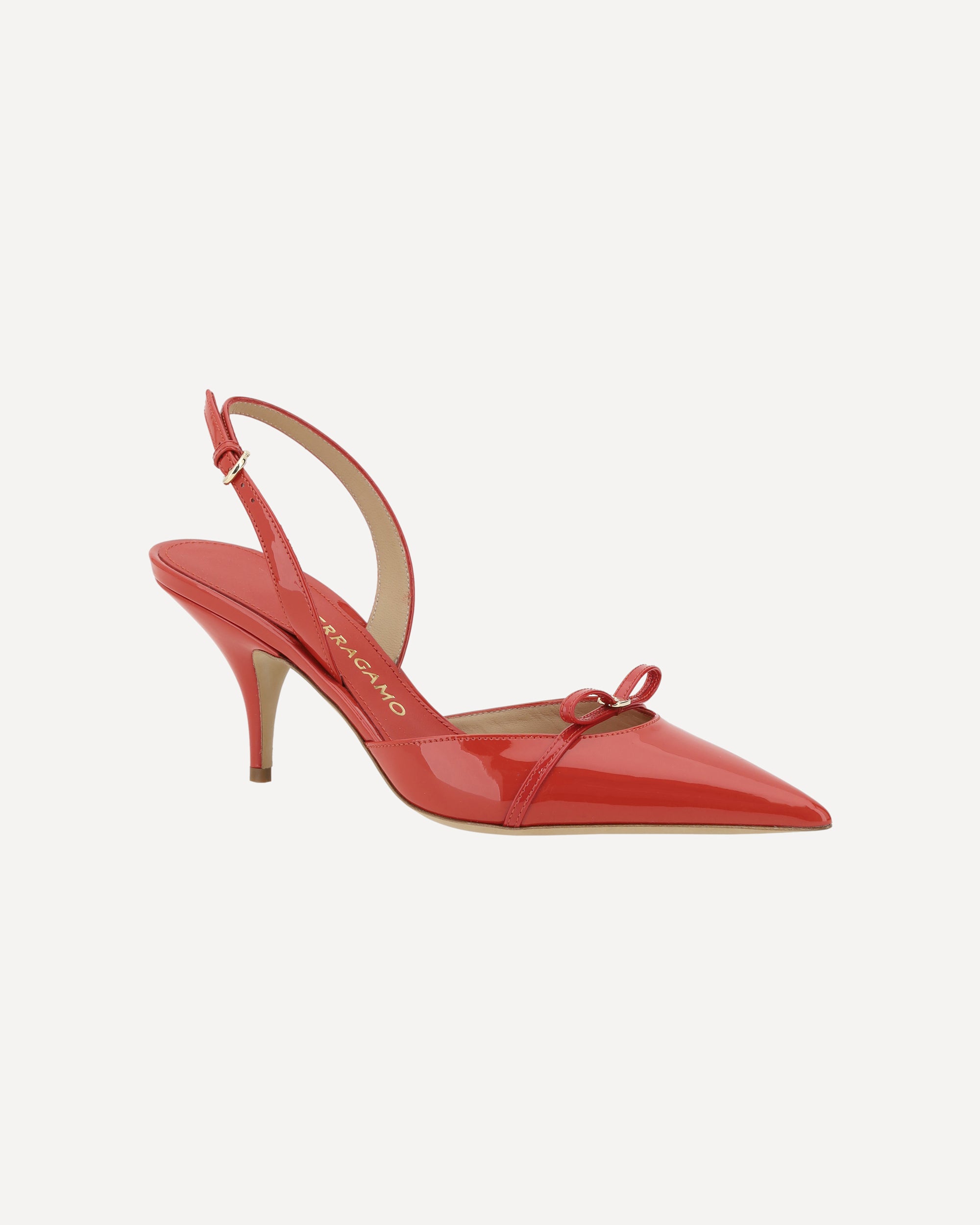 Ferragamo's leather Ornament pumps feature an elongated toe and kitten heel, combining elegance and comfort. The adjustable strap on the slingback offers a secure and customizable fit. Applied bow detail on the front adds a touch of femininity and sophistication. The branded insole completes the design, lending a distinctive accent of luxury. A pair of shoes that combine style and practicality for any elegant occasion.