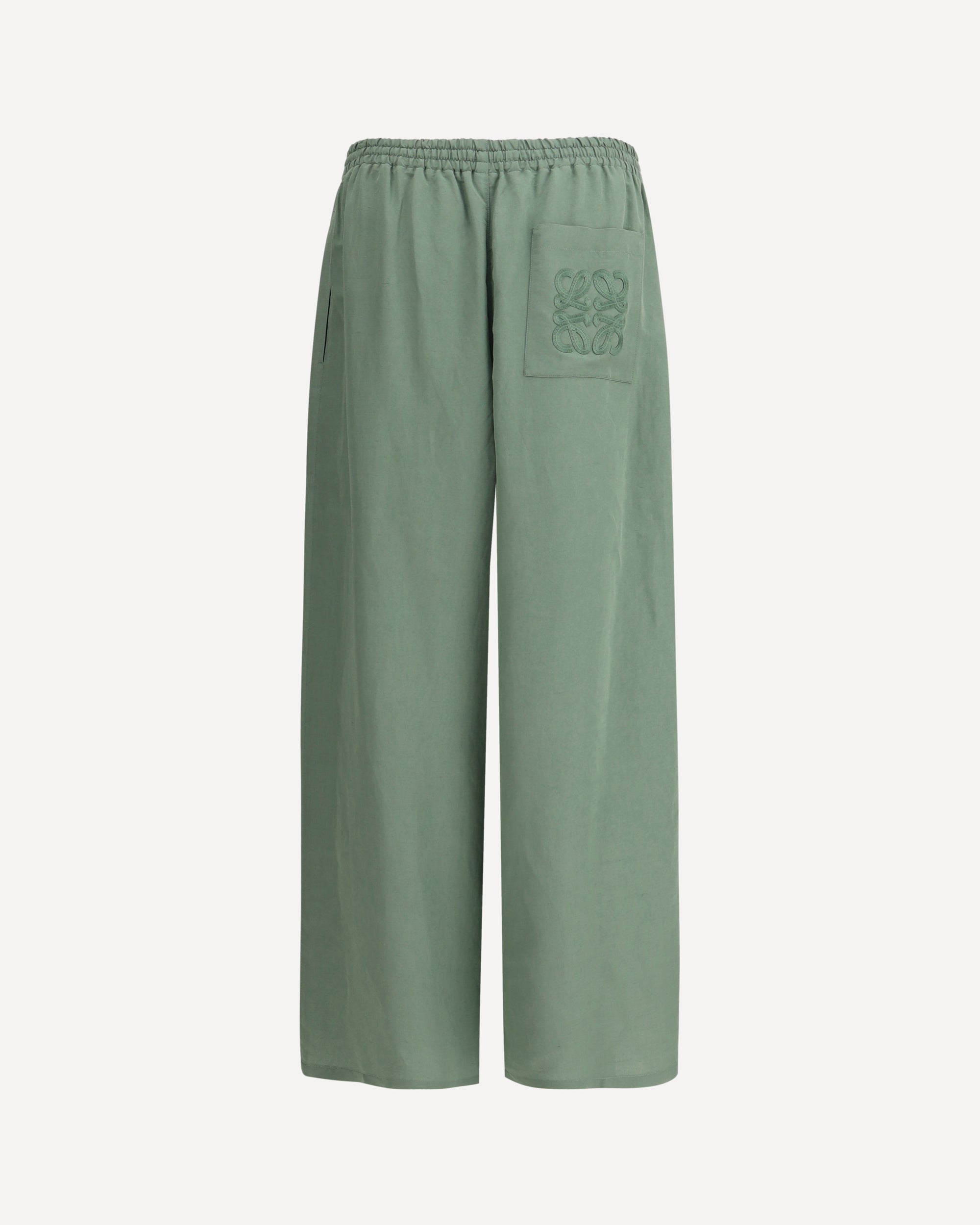 Paula's Ibiza wide-leg Paula's Ibiza Pants by Loewe embody the relaxed and sophisticated spirit of the summer capsule. Made of lightweight, flowing fabric, they feature a wide-leg silhouette with a straight leg, perfect for comfort and movement. The elasticated waistband is adjustable with a drawstring, while the two side slit pockets and the back slit pocket add practicality. Embroidered detail with the iconic Loewe Anagram on the back completes the garment with a distinctive touch.