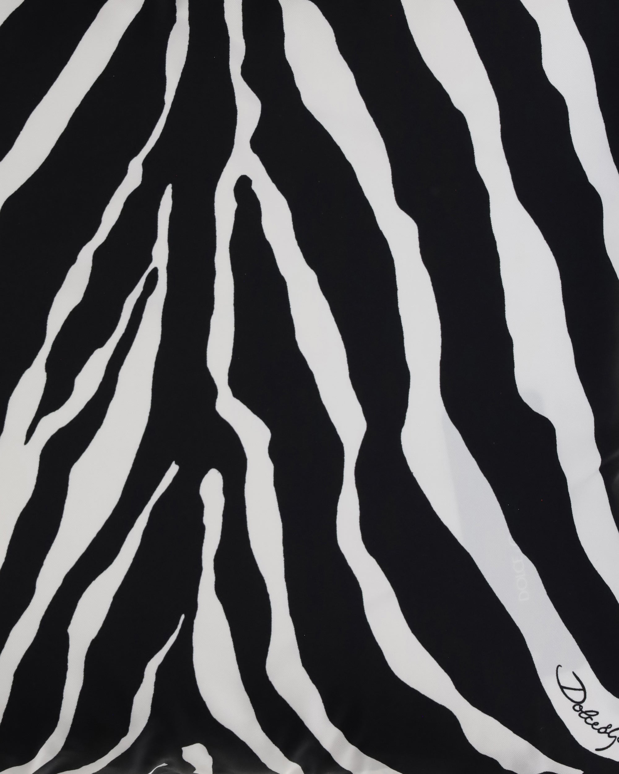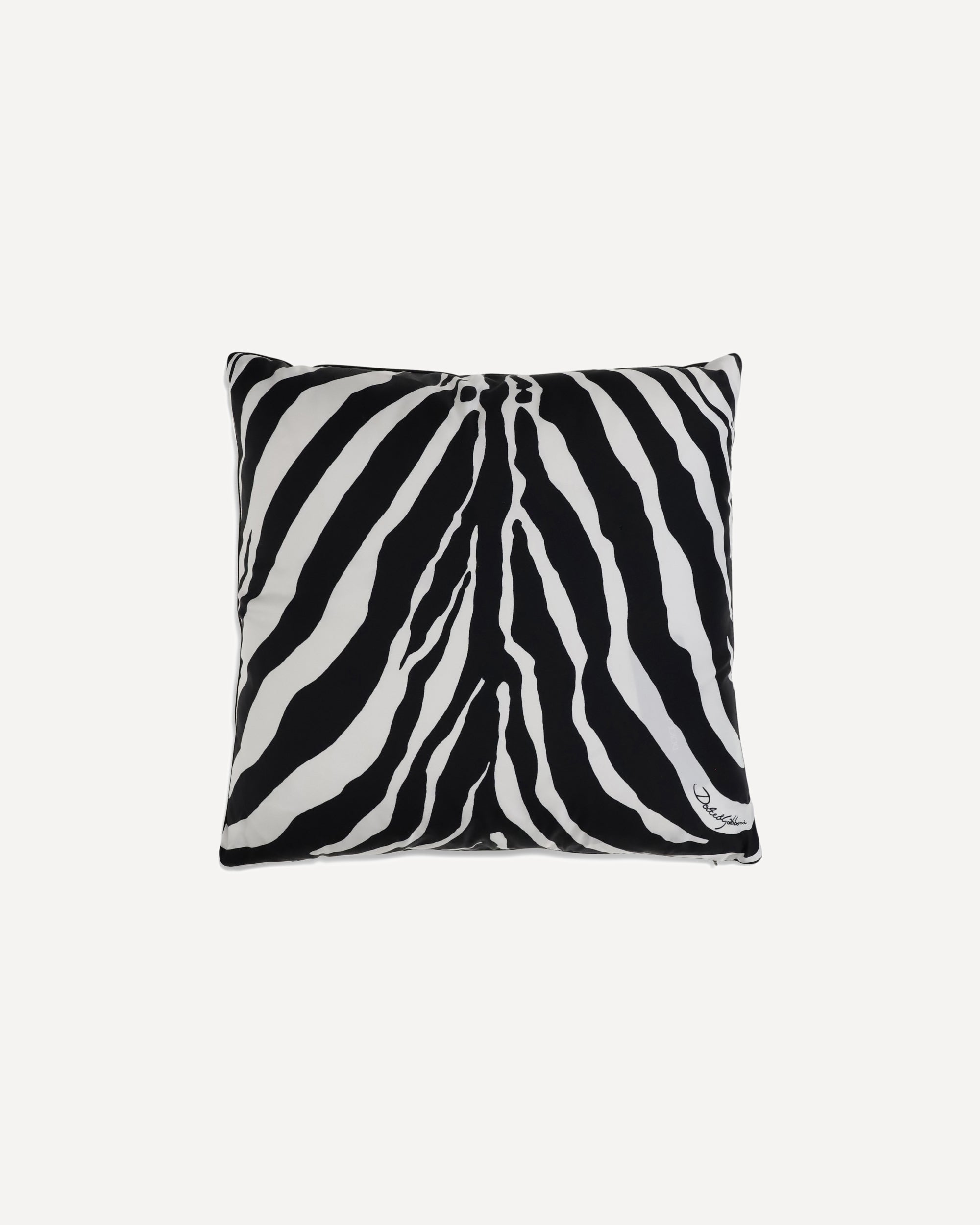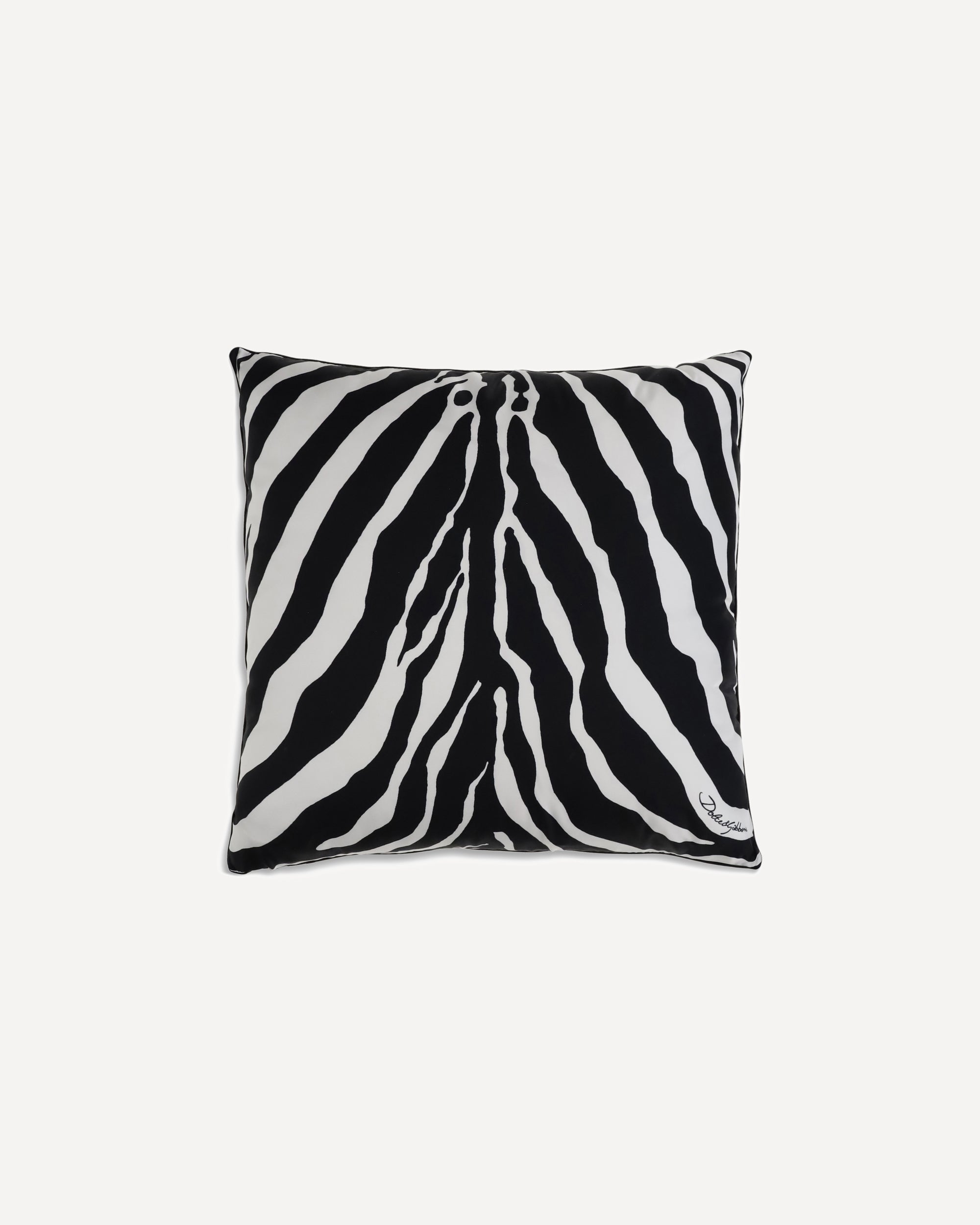 The zebra silk Pillow by Dolce&Gabbana expresses the bold elegance typical of the fashion house. Featuring generous padding, it is finished with a matching trim that recalls the brand's loungewear style. The iconic and playful zebra print adds a touch of boldness and personality to your living room. Removable cover and zipper closure. Dimensions: 45 x 45 cm.