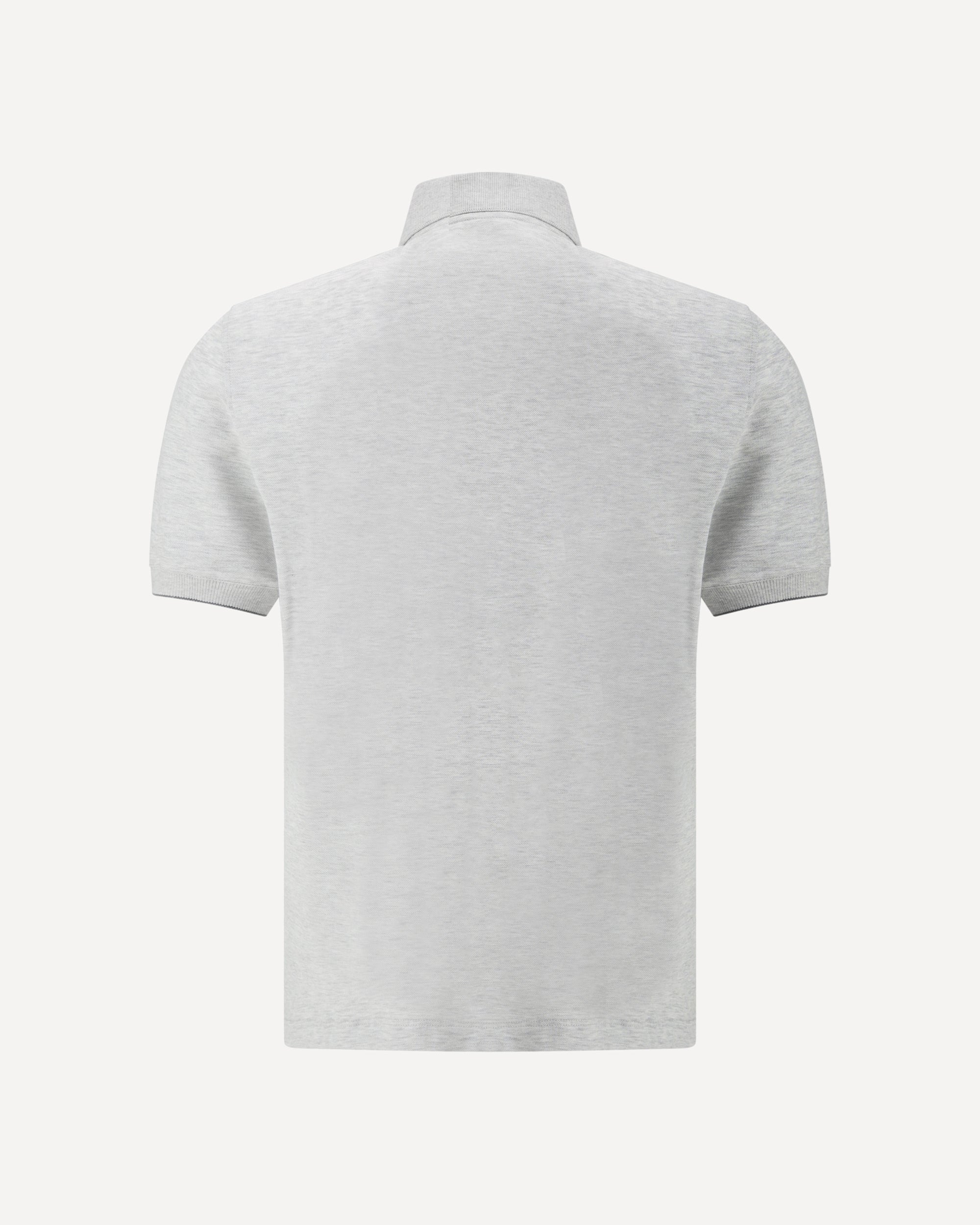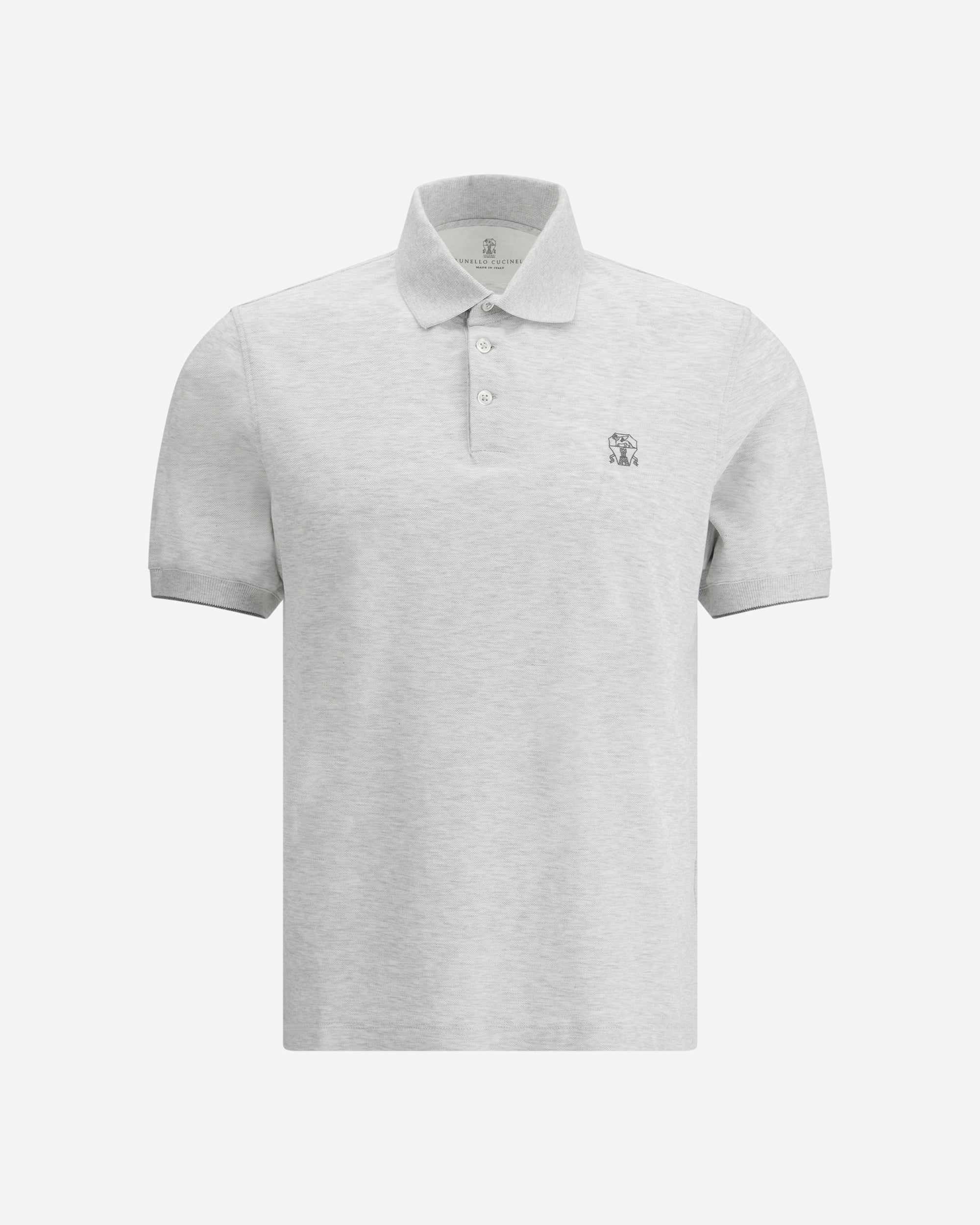 The cotton polo Shirt by Brunello Cucinelli embodies refined simplicity, featuring a ribbed classic collar and front buttons. The contrasting signature logo adds a distinctive touch, while the ribbed sleeves with contrasting trim enhance the clean, monochrome design. The regular fit completes a versatile and polished piece.