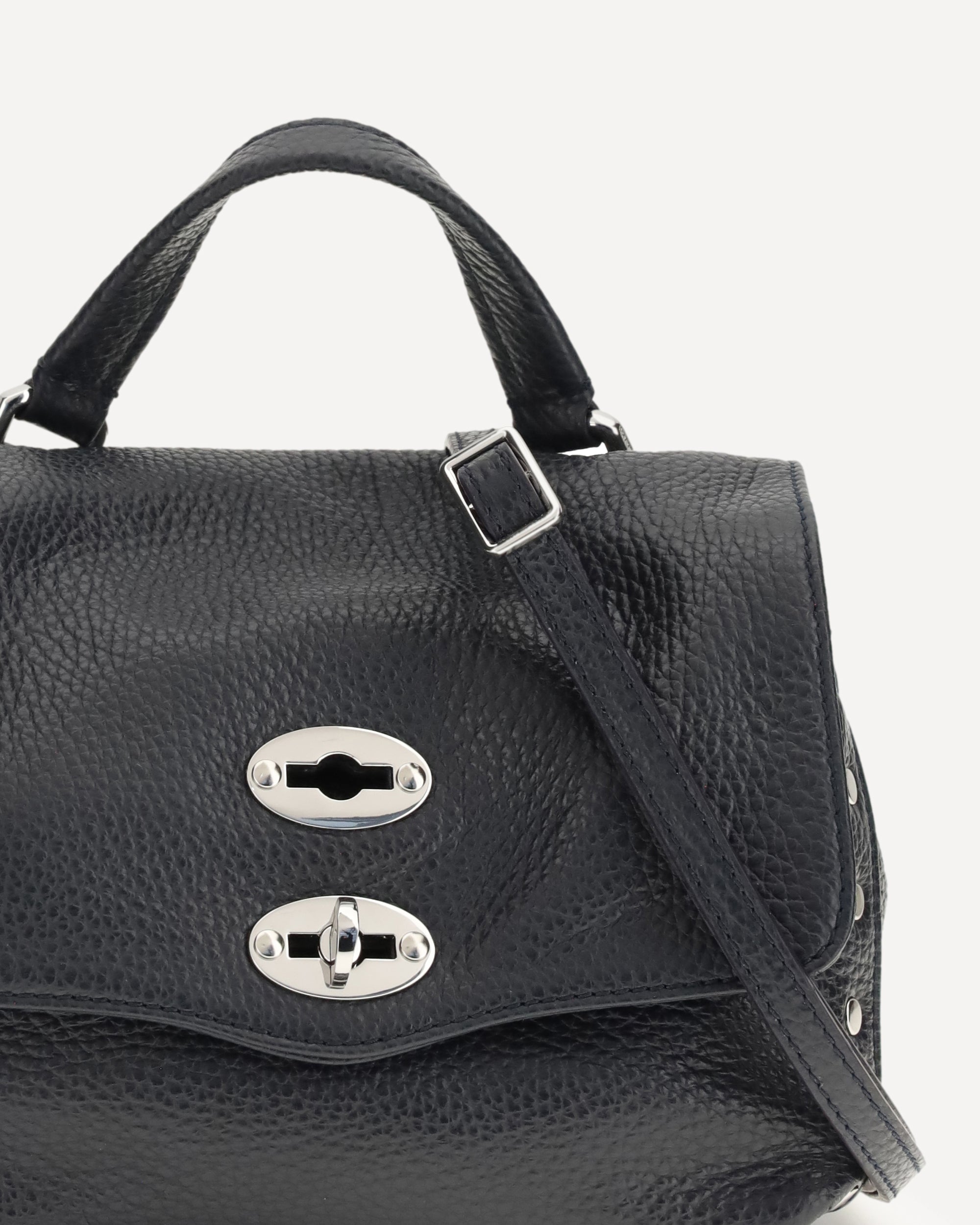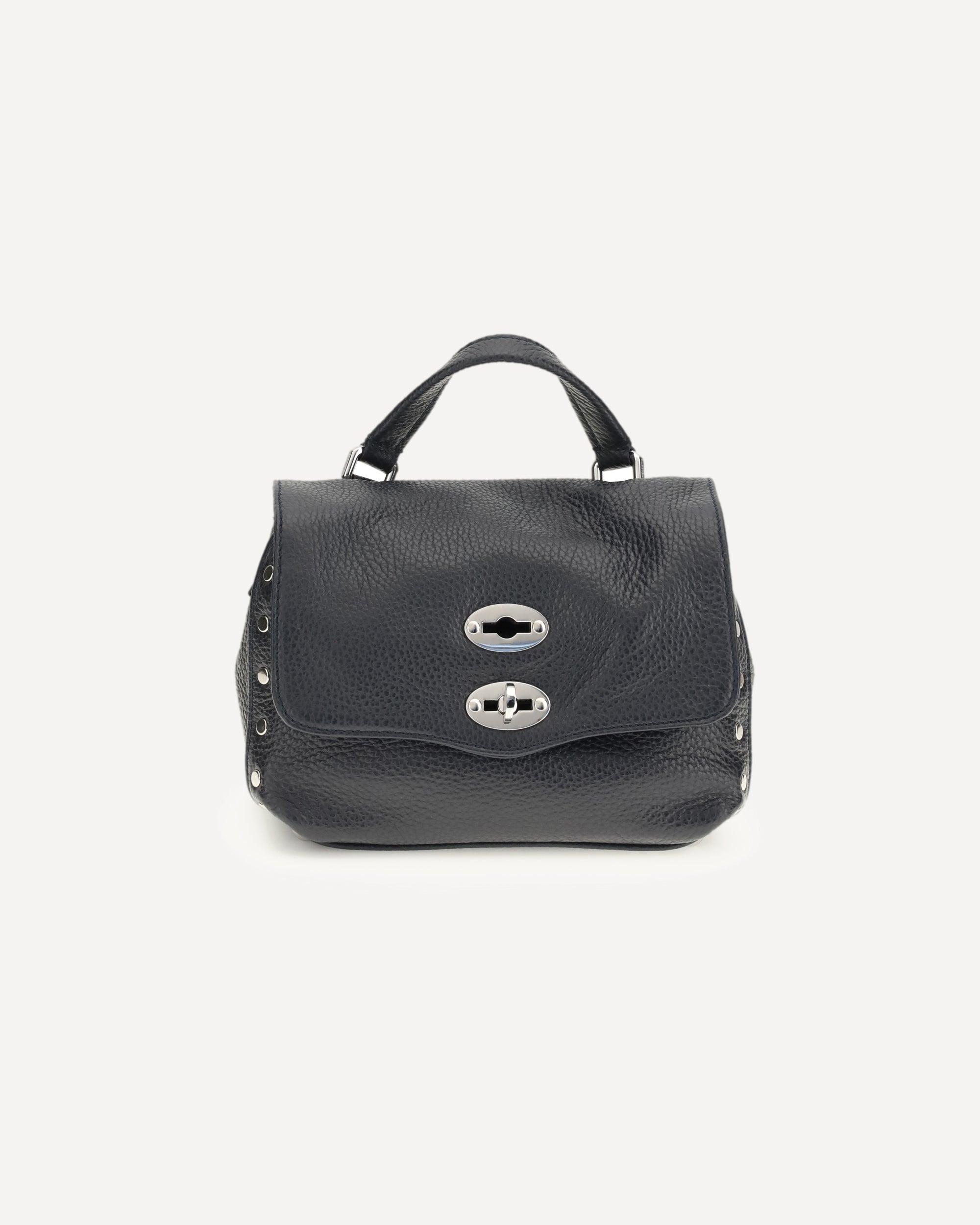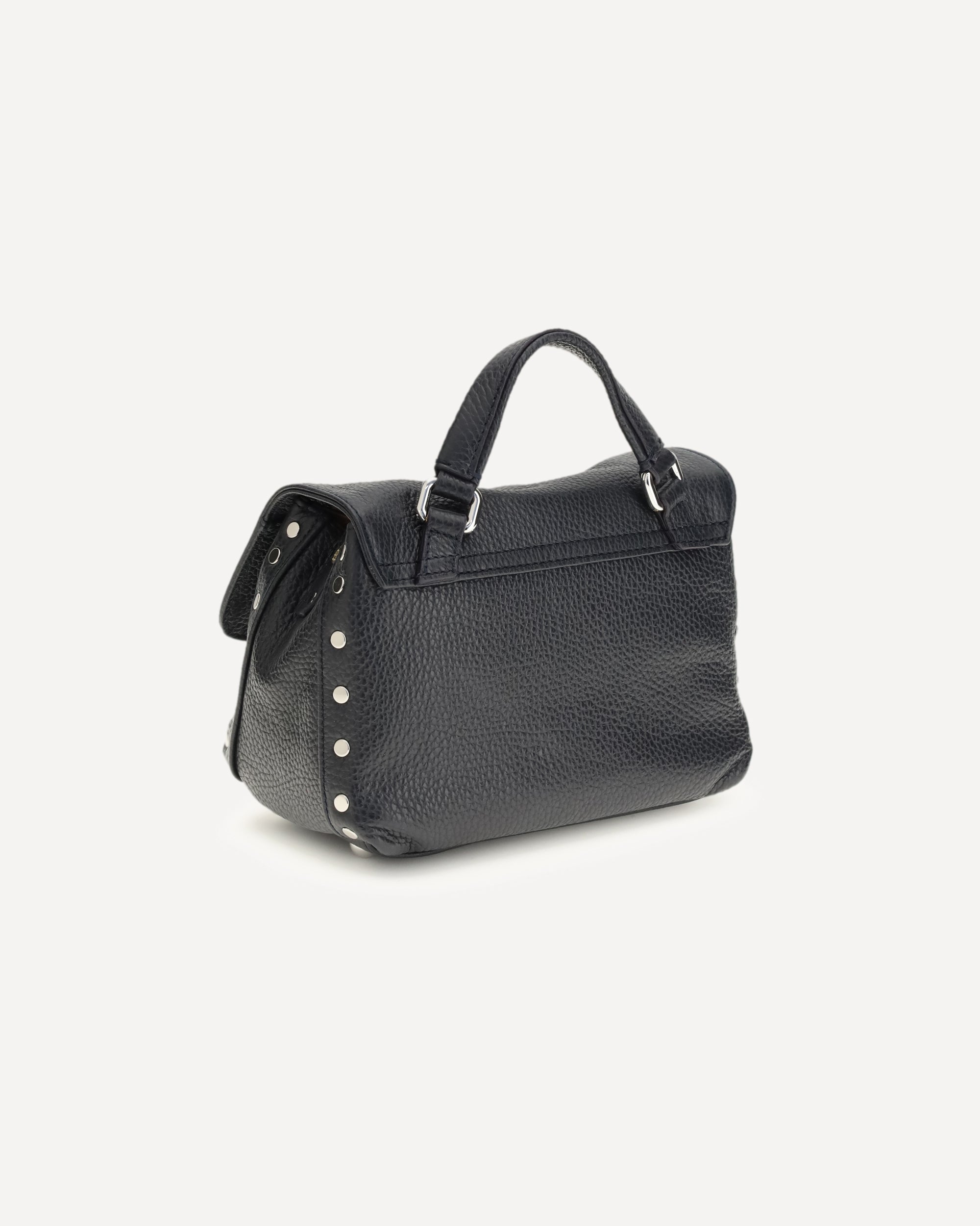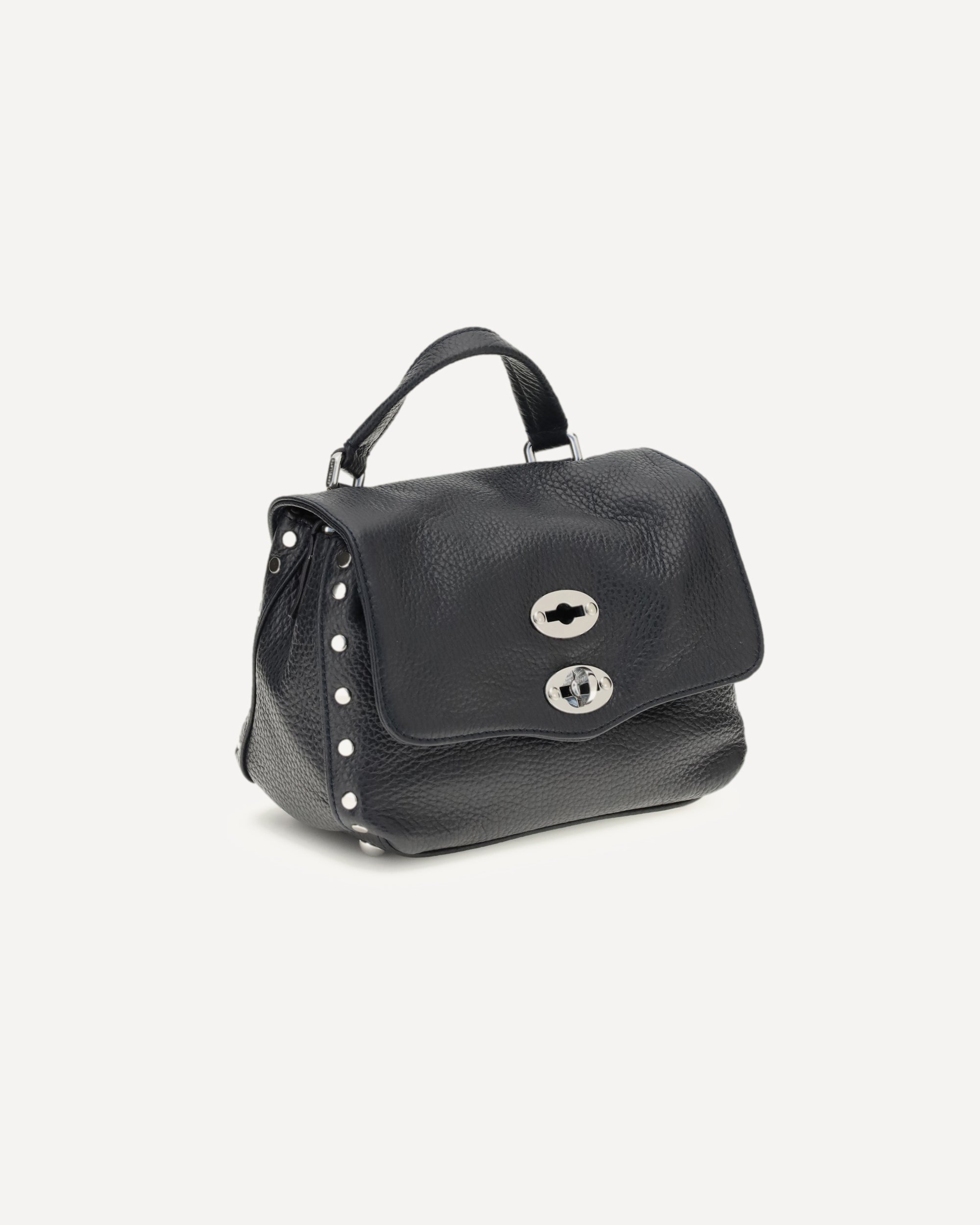 The leather Postina Daily Shoulder Bag by Zanellato is an icon of functional elegance and Italian craftsmanship. Made of grained leather, it is distinguished by its soft, structured design enhanced by refined contrasting metallic studs. Featuring a short leather handle and an adjustable, removable shoulder strap, it offers versatility of use. The front hook-and-eye closure adds a classic touch, while the interior, with a single compartment and flat zippered pocket, provides practicality and order.