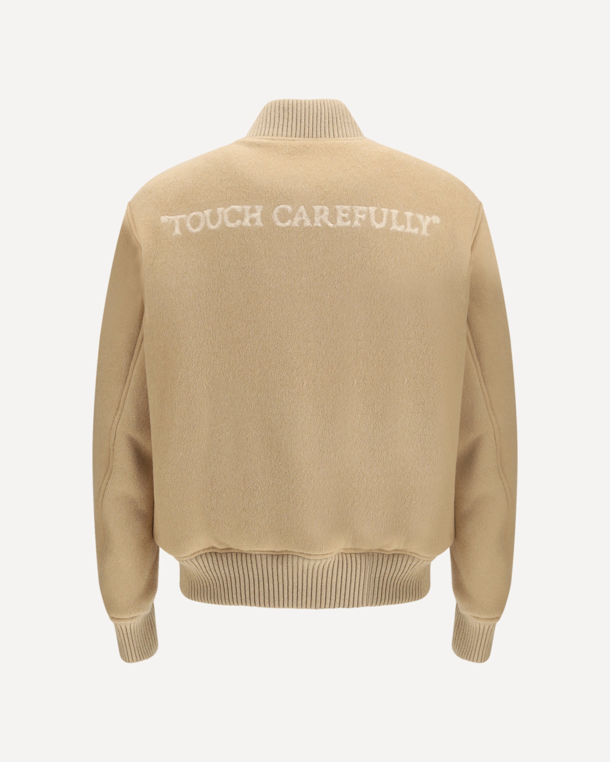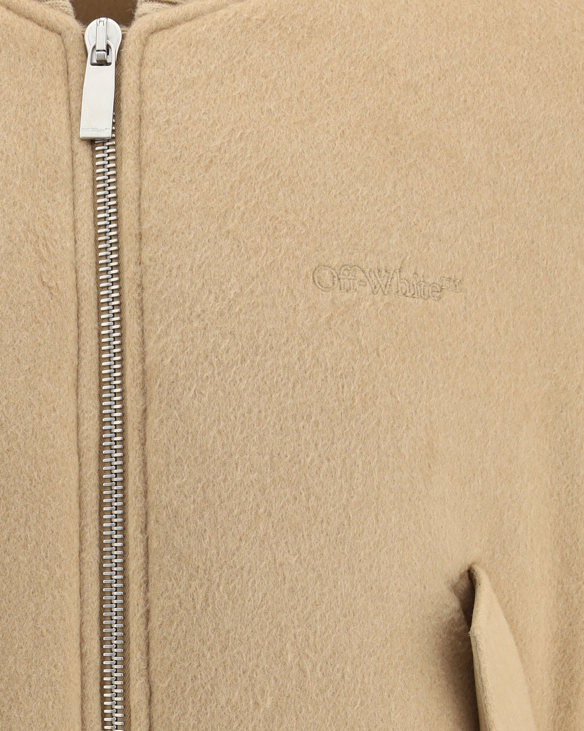 The cashmere Bomber Jacket reimagines a timeless urban icon with refined simplicity. Featuring ribbed trims at the collar, hem, and pockets, it is defined by a sleek zip closure. The embroidered brand name on the chest adds a subtle signature touch, while the zipped sleeve pocket with contrasting tag completes a design that balances functionality with modern attitude.