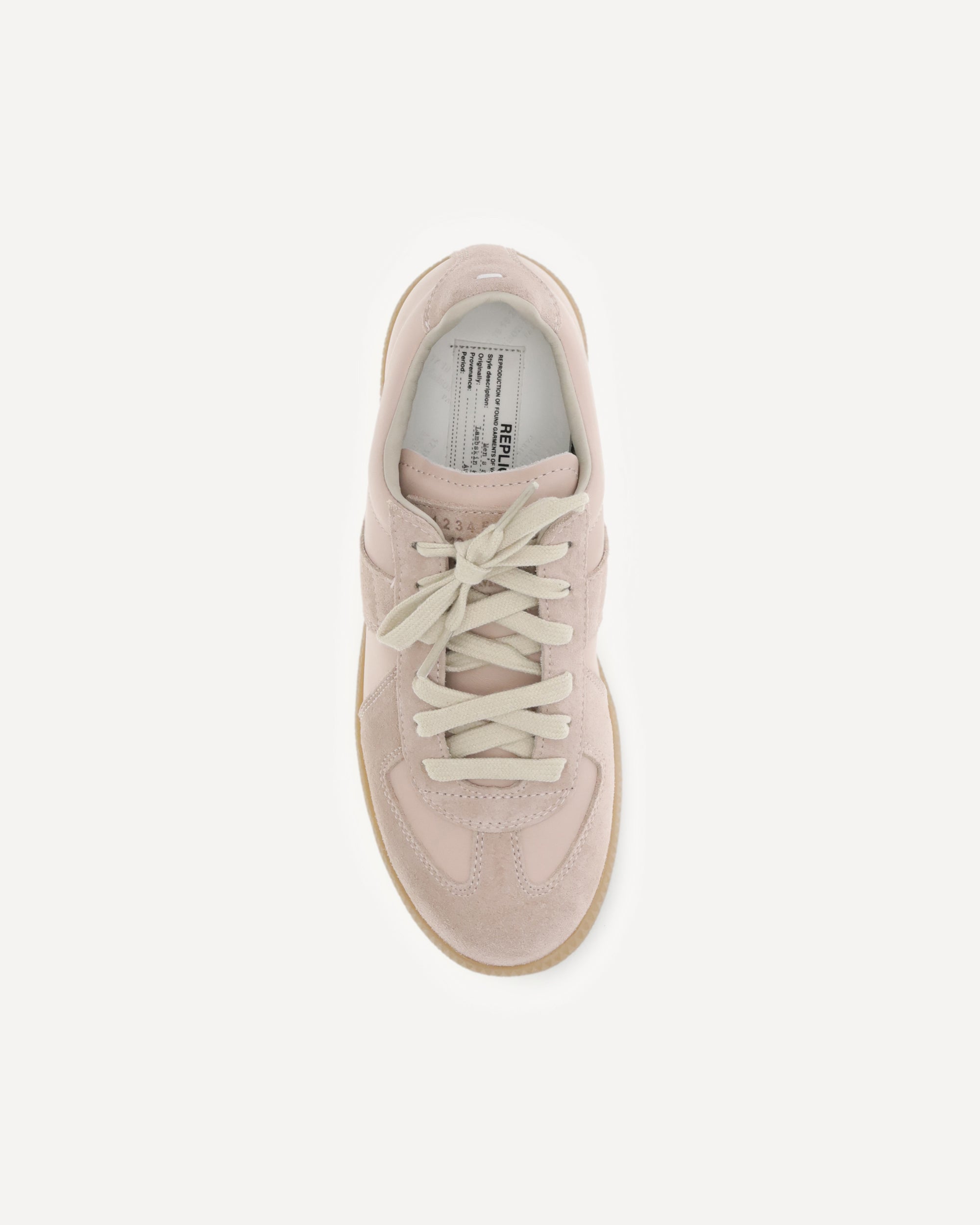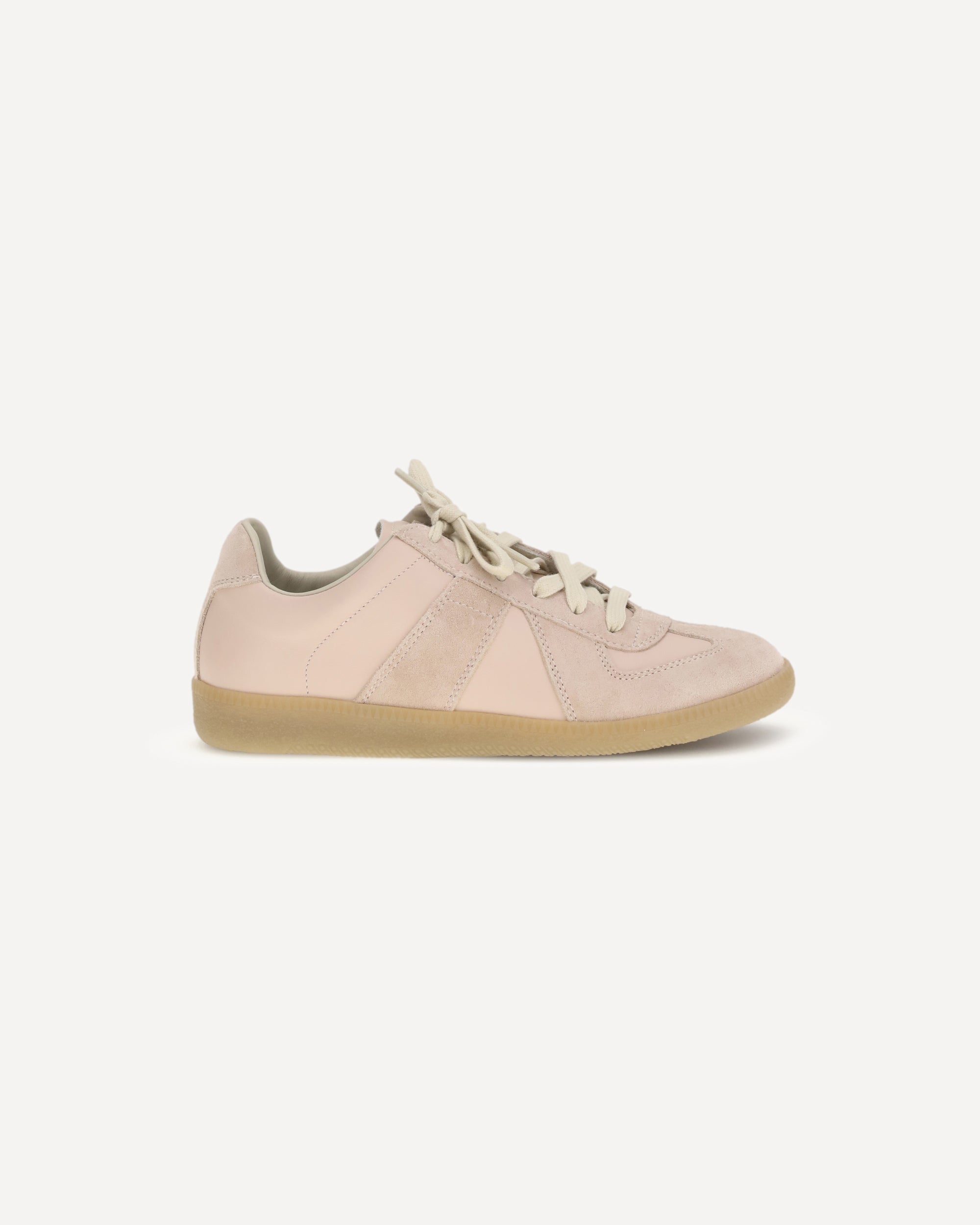 The leather Sneakers by Maison Margiela feature a round toe and a lace-up front closure. They are embellished with suede detailing and a suede plaque appliqué on the tongue with a tone-on-tone press-stamped logo for a refined and distinctive look.