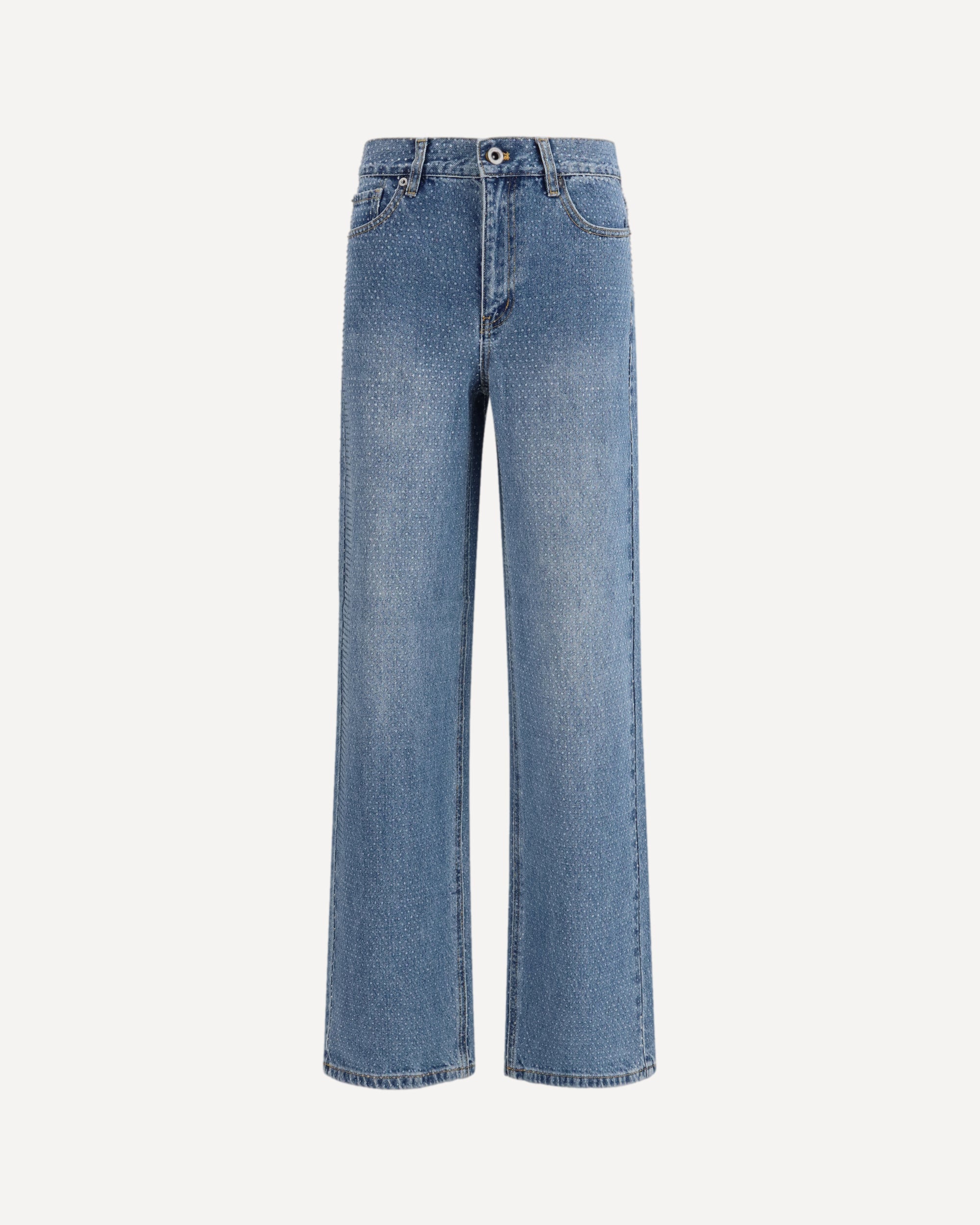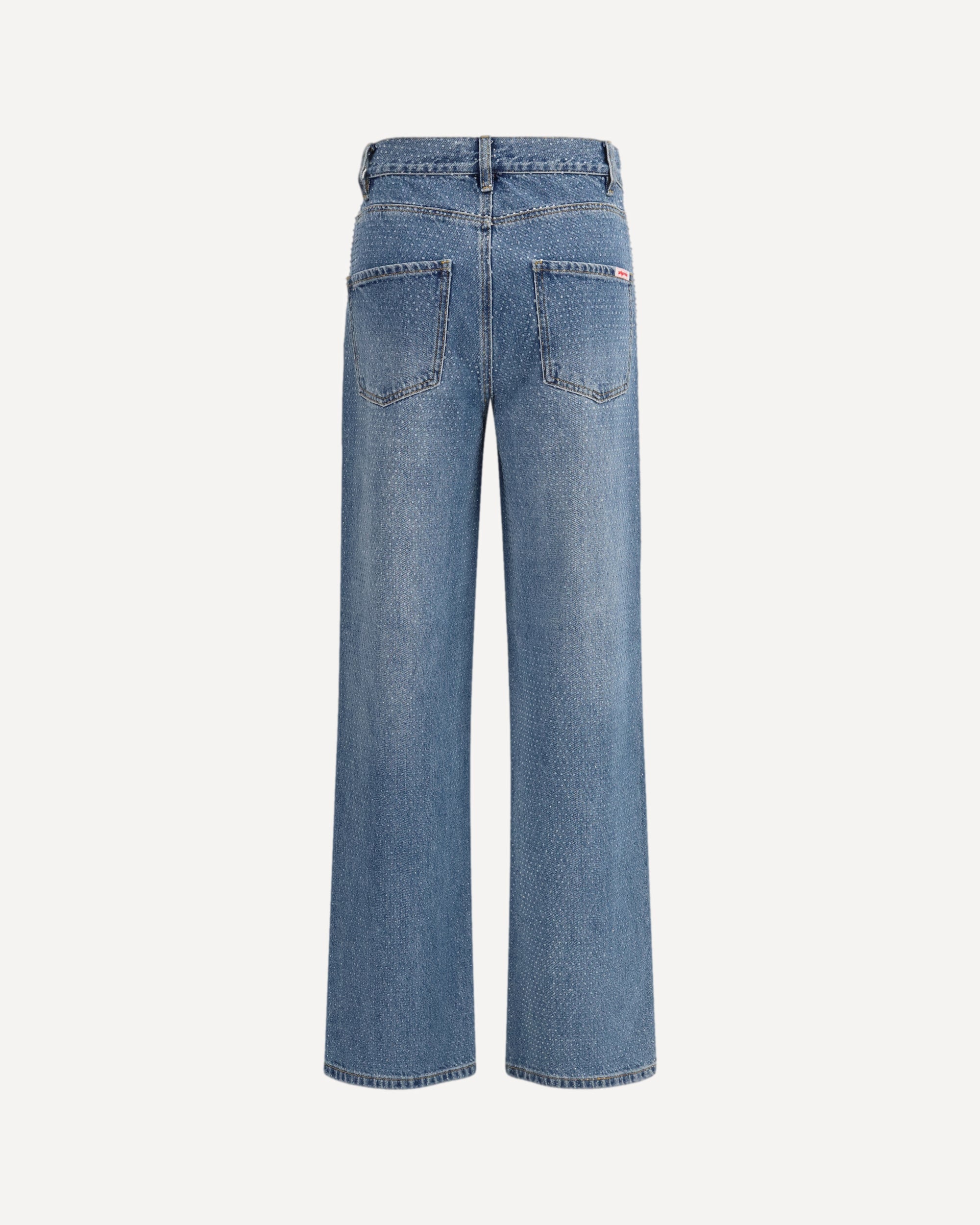 The straight-leg Jeans by Self Portrait are crafted from blue cotton denim and embellished with all-over rhinestones, adding a luminous touch to a clean, essential design. The straight silhouette ensures a versatile look, finished with belt loops, five classic pockets, and a front fastening with a metal button and zip. A piece that blends glamorous appeal with everyday functionality.