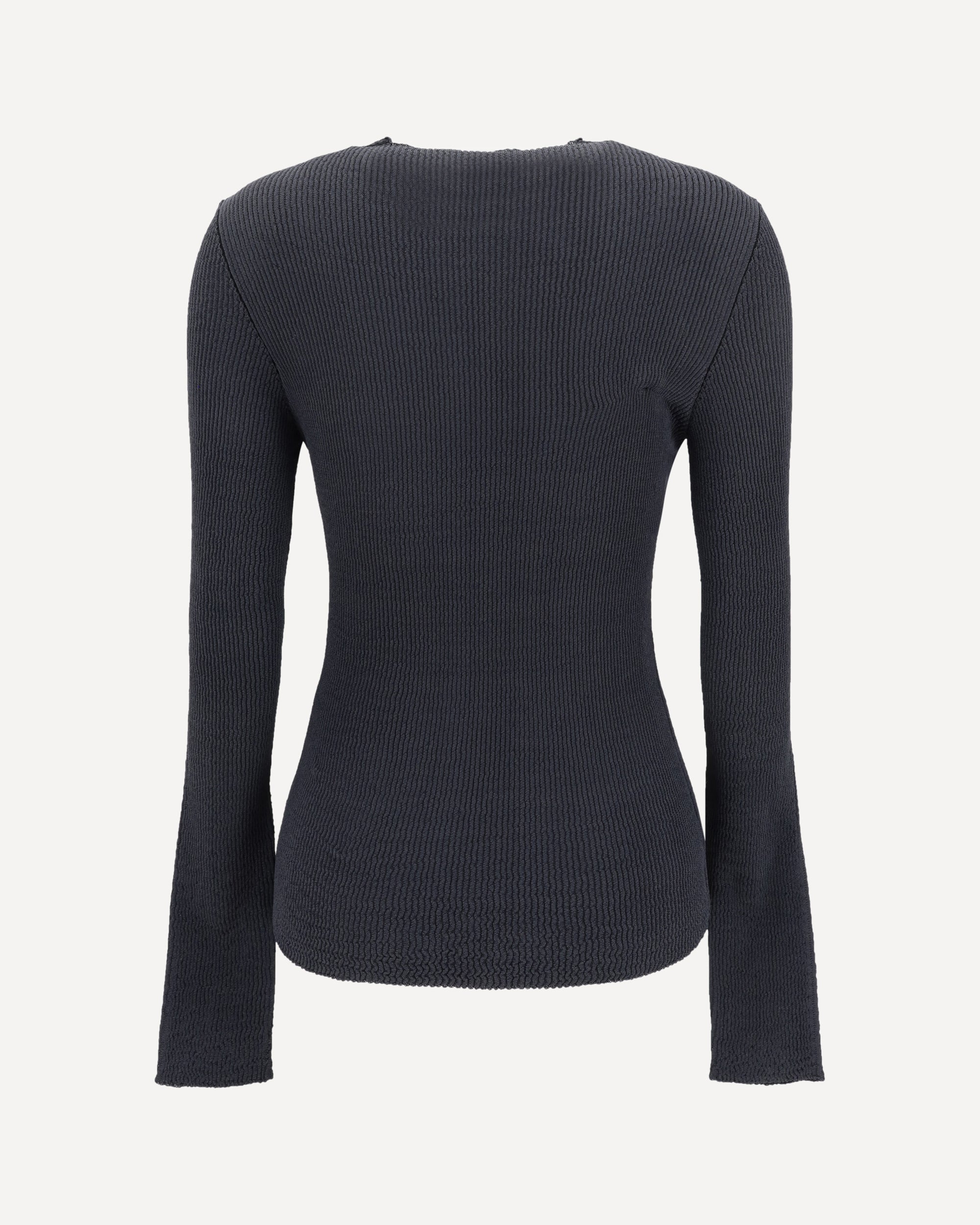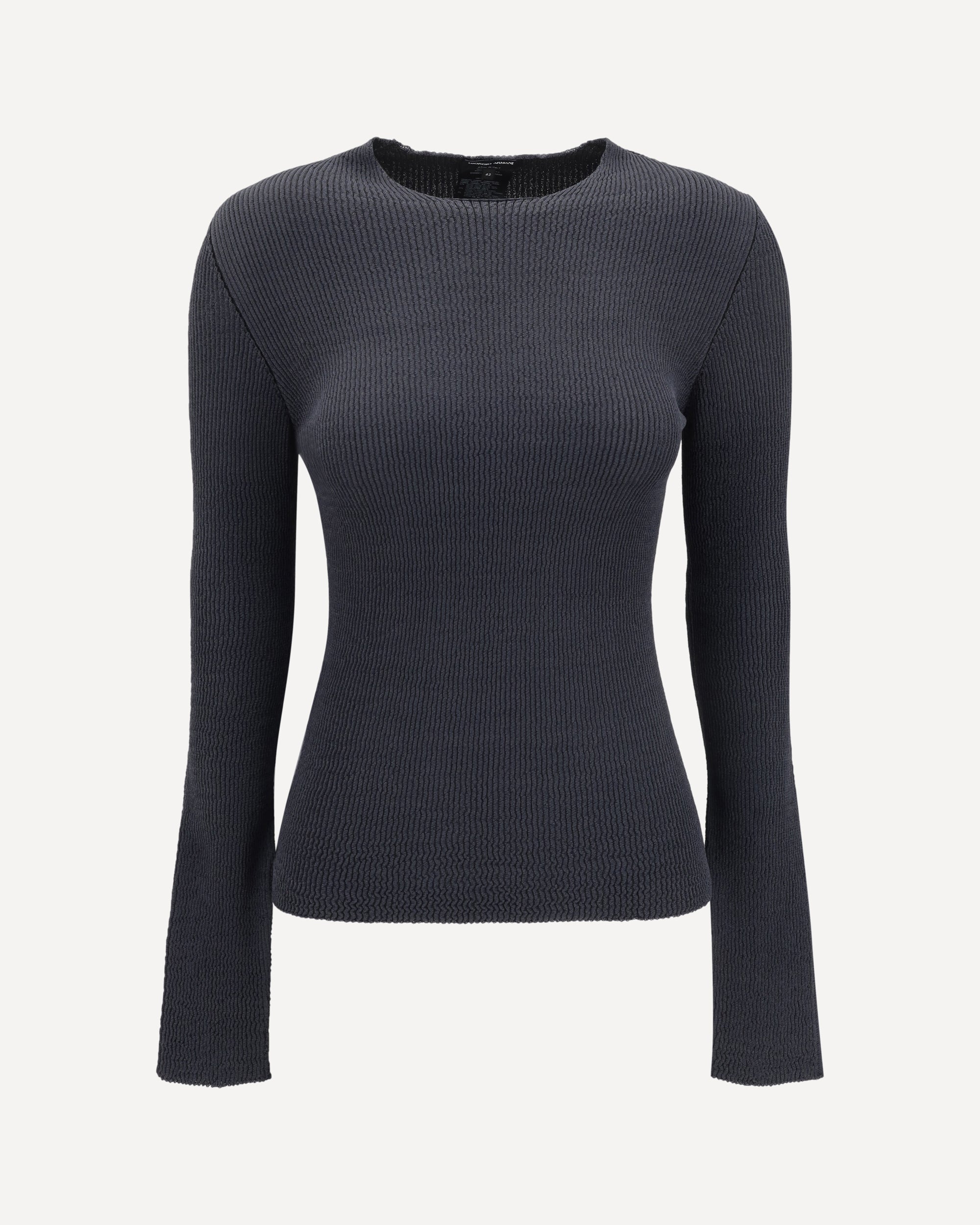 The Giorgio Armani Sweater is an elegant and sophisticated piece, characterized by an all-over ribbed design that adds texture and movement to the garment. The tight fit enhances the silhouette, creating a flexible and modern look. Perfect for a minimalist but refined look, this sweater lends itself to different occasions, from casual to more formal, offering comfort without sacrificing the distinctive style of Giorgio Armani.