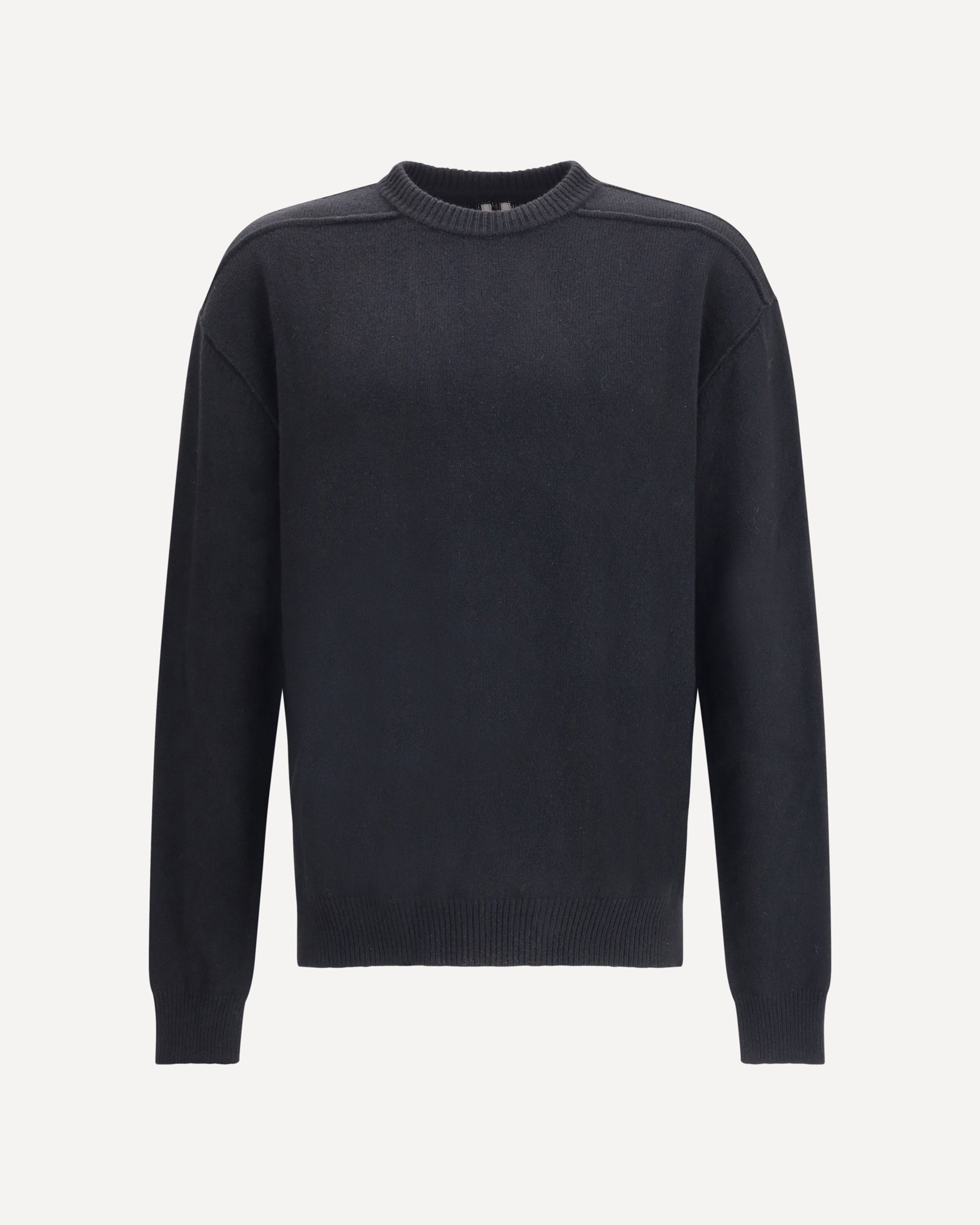 The Rick Owens wool Sweater features exposed stitching that enhances its structure. It features a ribbed crew neck and ribbed hem and cuffs, combining technical details with an essential and contemporary style.