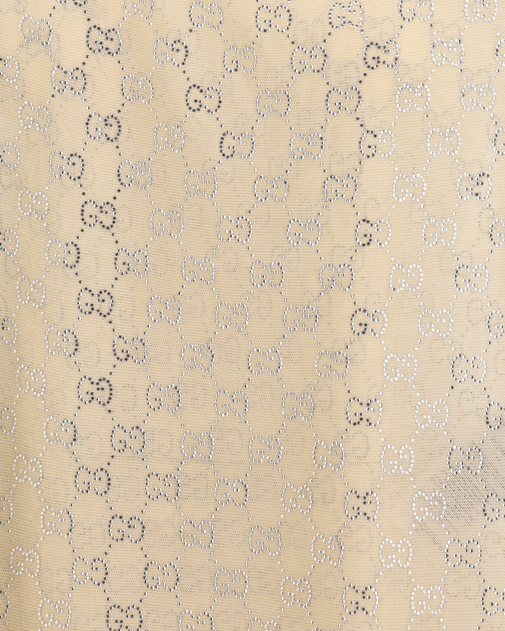 The sleeveless Top with all-over glittering GG logo by Gucci expresses a bold and sophisticated aesthetic. Crafted from lightweight, sheer silk, it enhances the silhouette with a fluid and sensual effect. The all-over sparkling GG motif adds an iconic and luminous touch, while contrasting trims define the edges with graphic character. This Gucci Tank Top combines lightness, shine and contemporary identity in a striking piece.