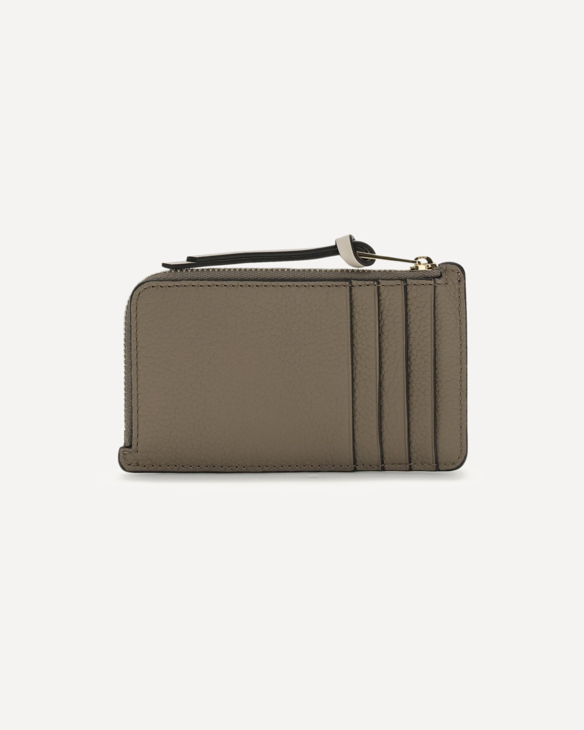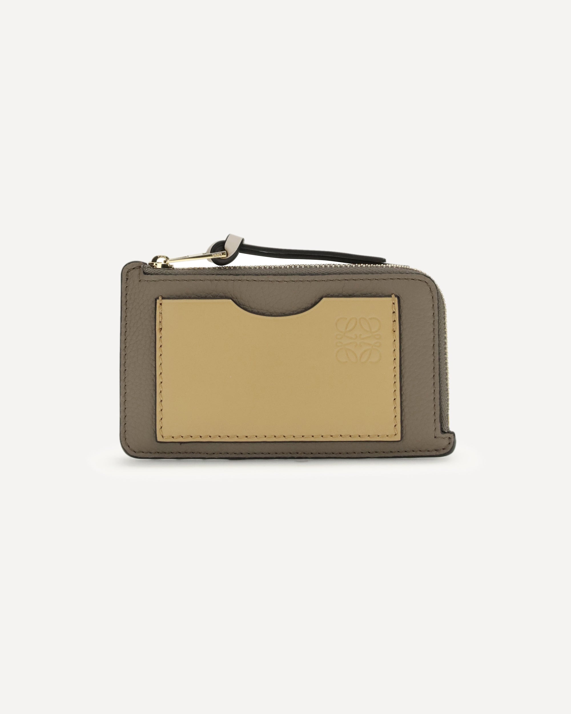 The Cardholder with coin pocket by Loewe is crafted from soft grained calfskin leather in contrasting colors, enhanced by the embossed Anagram motif. It features four card slots, a zip coin compartment with calfskin pull tab, and an additional front pocket. Compact and elegant, it combines functionality and style in a refined design perfect for everyday use.