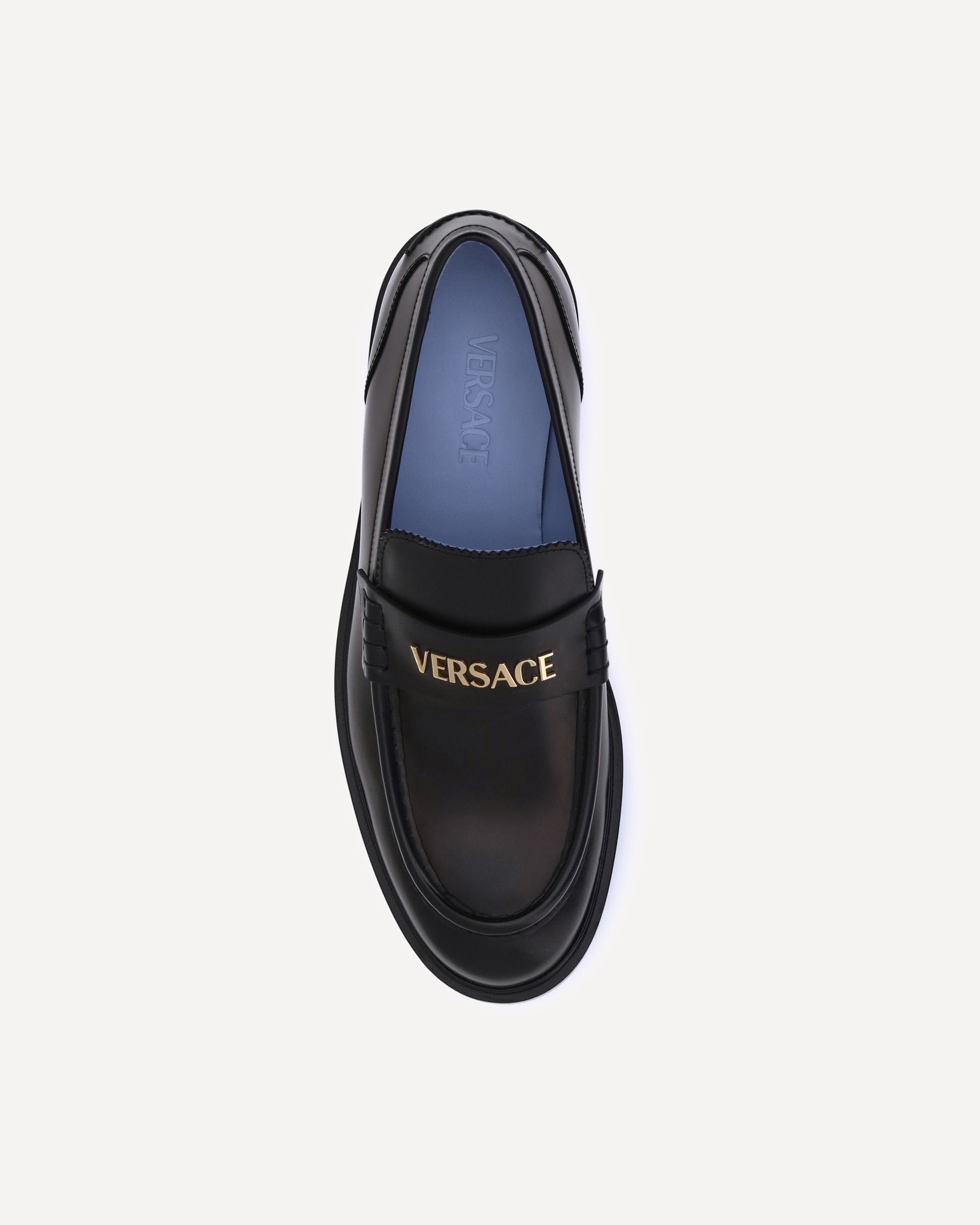 Versace's Leather Loafers combine elegance and practicality in a slip-on design. Featuring a rounded toe, they feature the gold logo applied to the front tray, giving a distinctive and refined touch to this classic model.