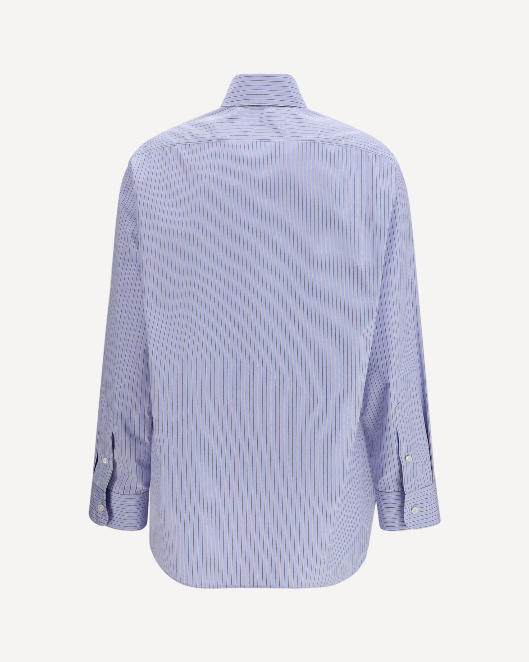 The Sisilia Shirt by The Row is an elegant, minimalist piece made from organic cotton poplin with a subtle stripe pattern. The classic design offers a comfortable fit, with a subtle back yoke and visible front placket finished with mother-of-pearl buttons, adding a refined detail. Perfect for sophisticated and timeless looks, it combines quality materials, comfort, and the brand's signature understated elegance.