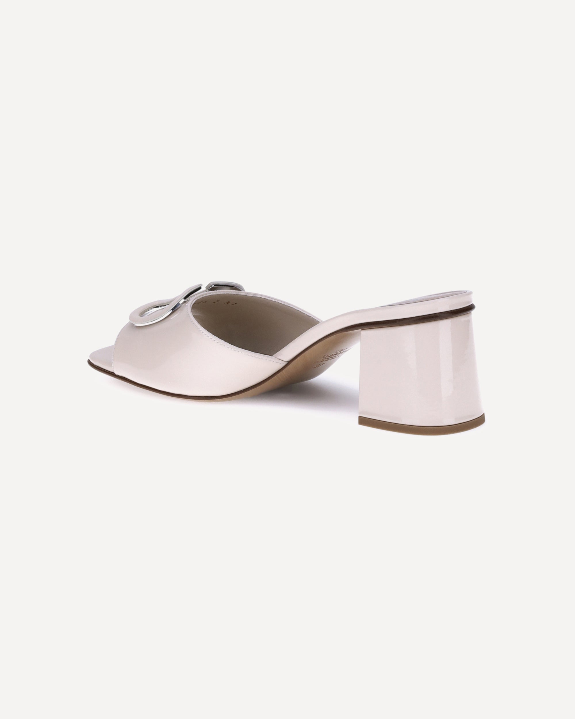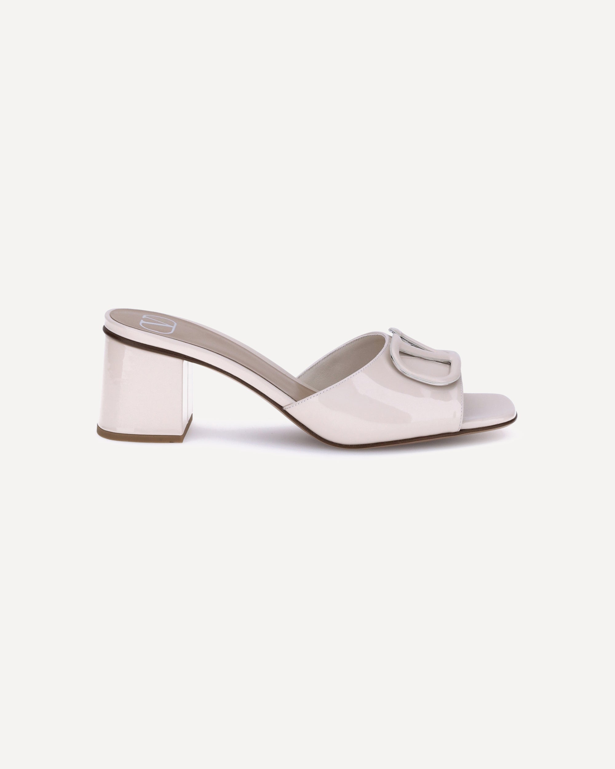 Valentino Garavani's slide Sandals are an elegant fusion of minimalism and brand identity. Made of glossy patent leather, they are decorated with the iconic Signature VLogo accessory, also covered in patent leather thanks to a refined high-frequency processing. The design is completed by a wide leather-bound heel and an essential yet distinctive silhouette.