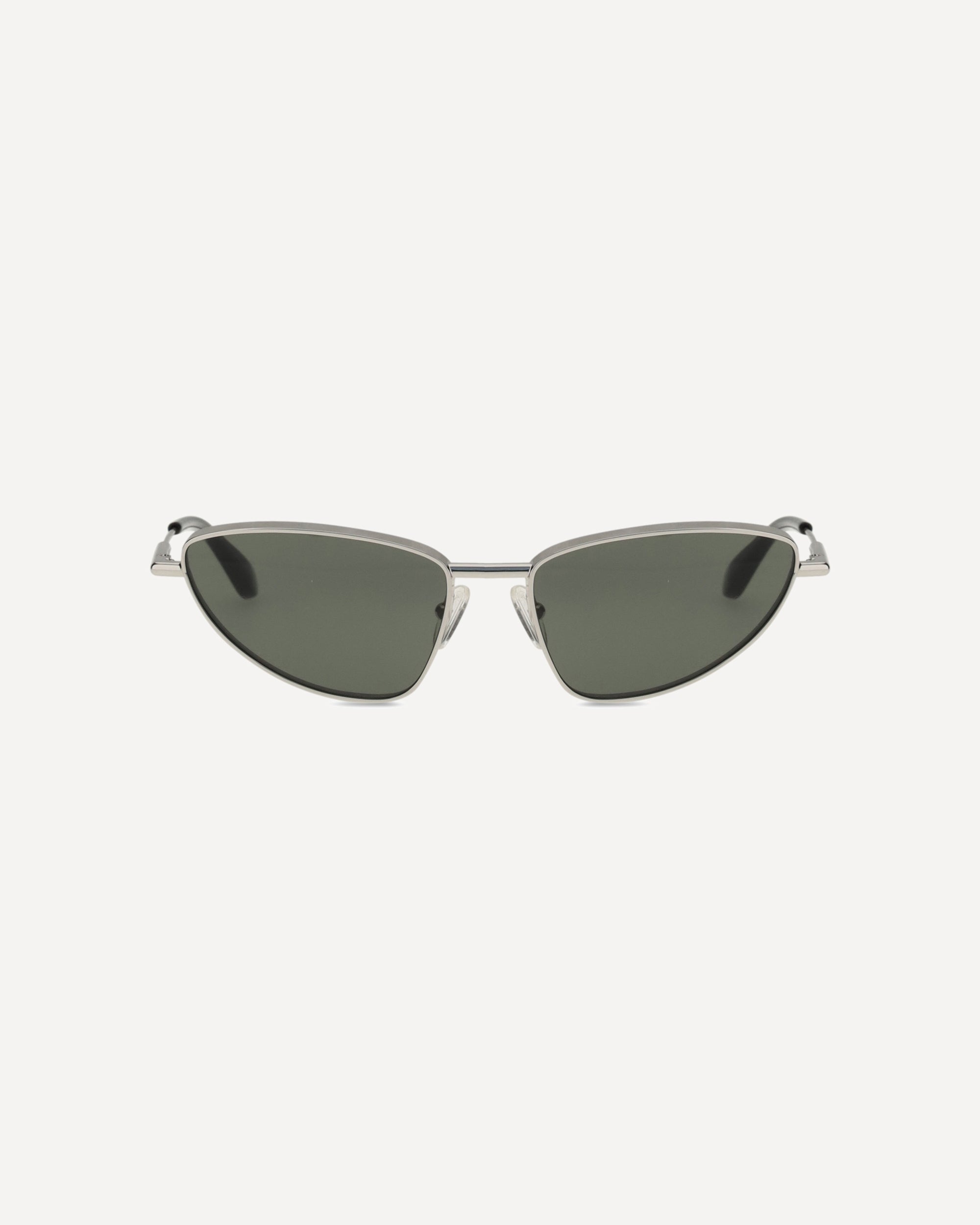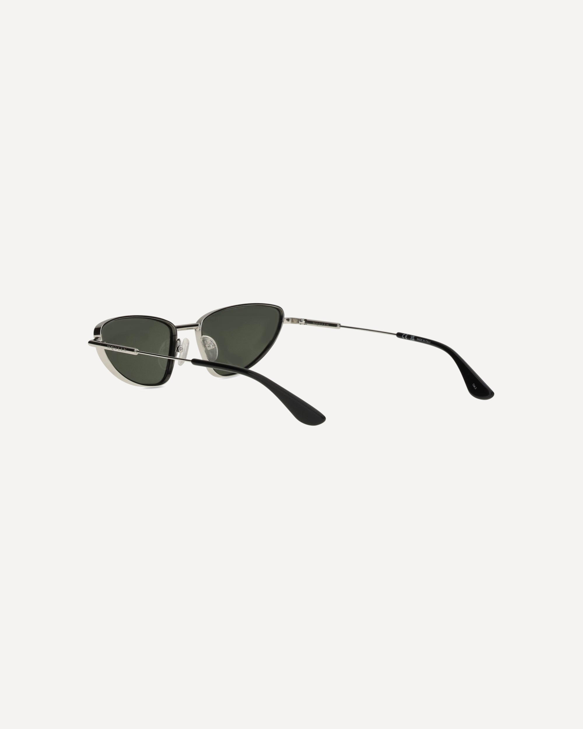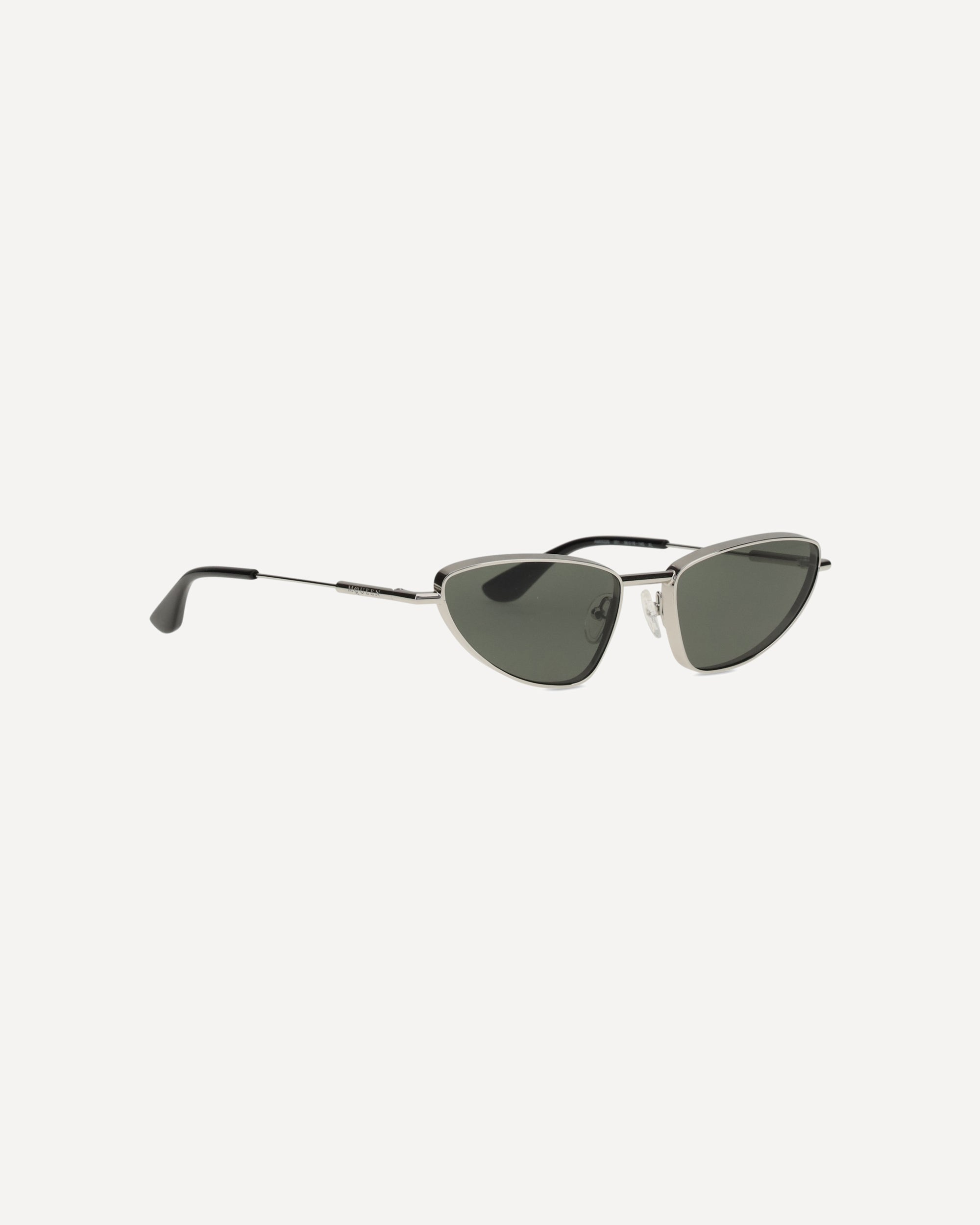 Alexander McQueen's Cat-eye Sunglasses feature a bold and refined design. Made of silver-colored metal with tone-on-tone mirrored lenses, they feature a beveled cat-eye shape and adjustable nose pads for maximum comfort. The distinctive T-shaped element is integrated on the temples, which are finished with a laser-engraved McQueen logo and acetate temple tips for a touch of contemporary elegance.